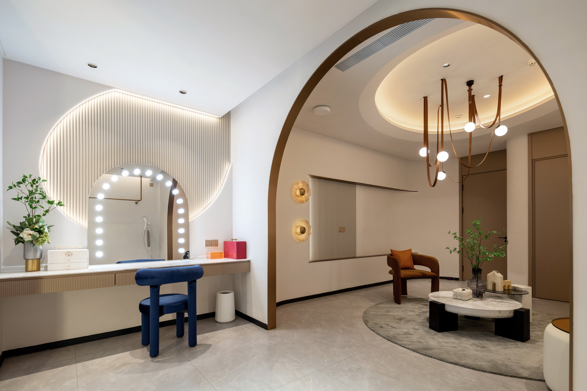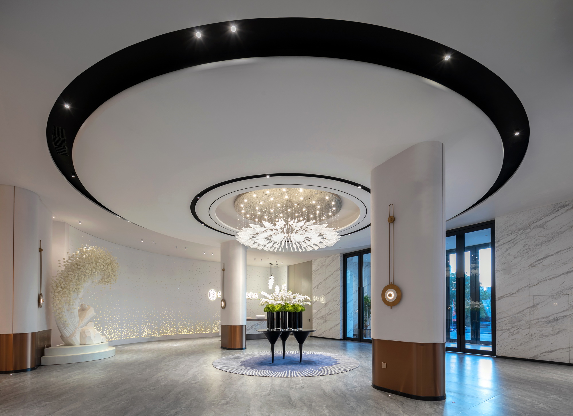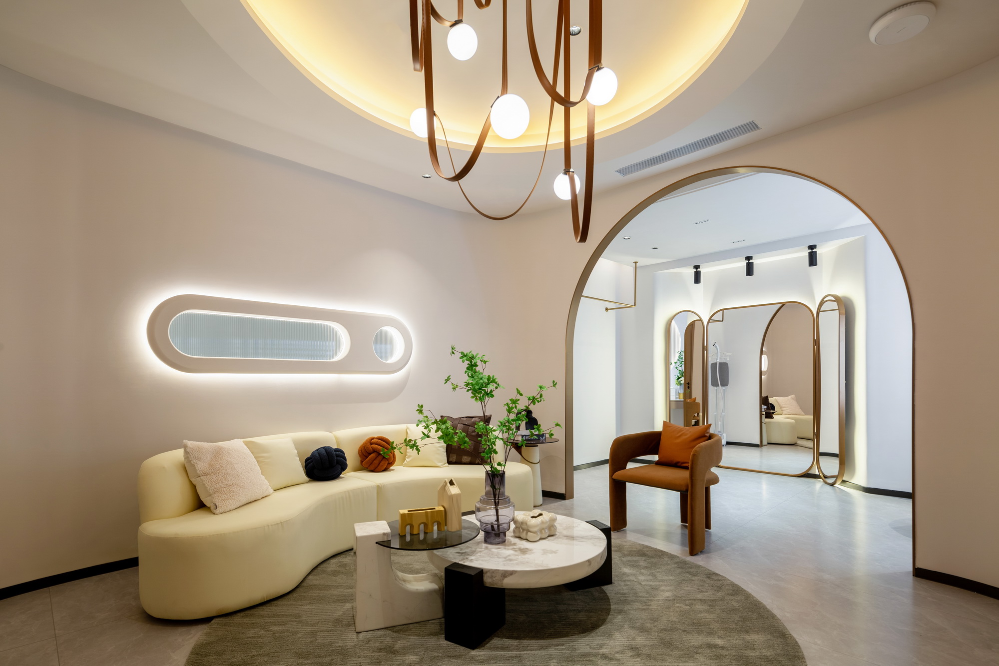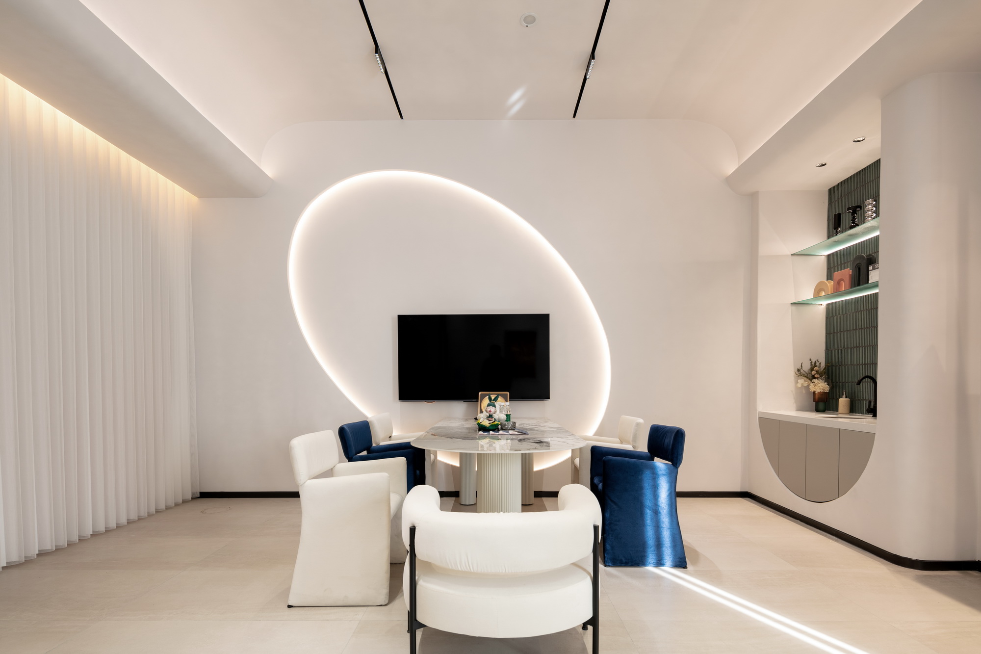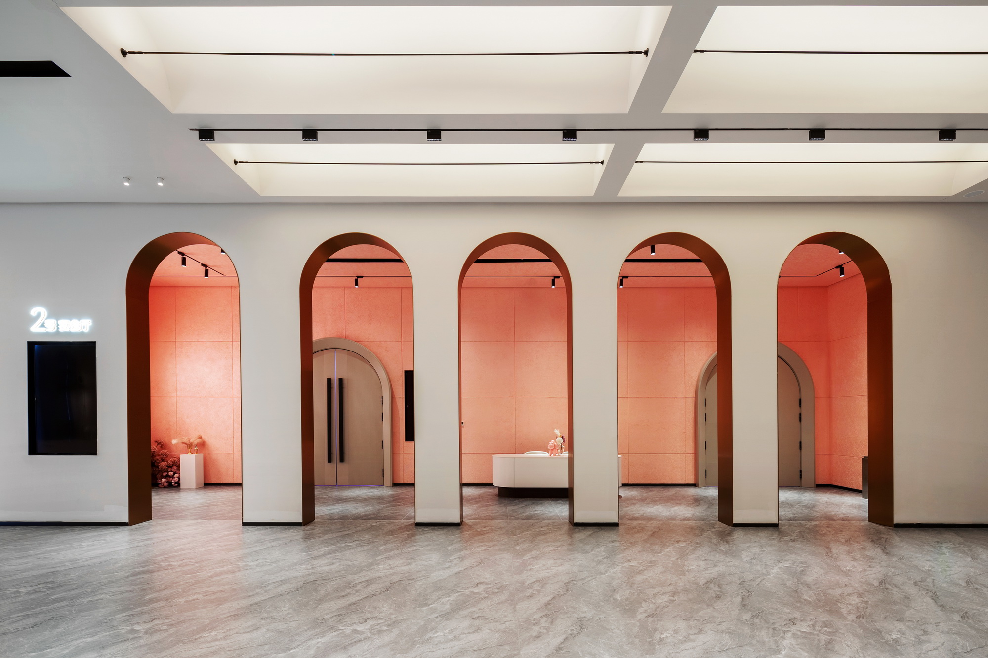摒弃了大量使用昂贵的材料和工艺,运用建筑的手法,大面积选用漆类作为天花及墙面的面材,营空间氛围。