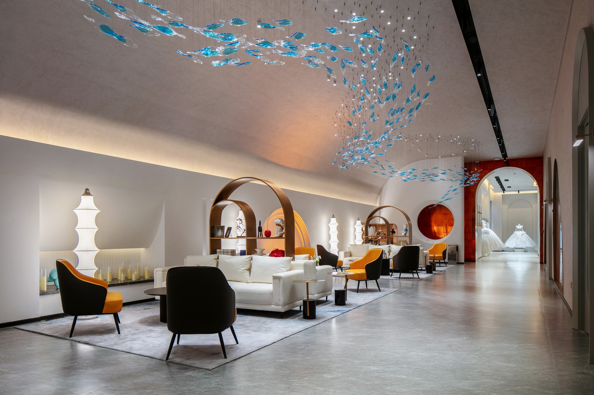 诺尔森婚礼艺术中心以精致的场景,为新人提供沉浸式的婚礼体验。项目总面积10000㎡,由三个独立建筑组成,通过合理规划,有效的将功能分区有效的串联起来,6个各具特色的主题婚礼殿堂,配套6个专业的化妆间,独立的婚纱礼服中心,真正的做到“一站式”婚礼服务机构