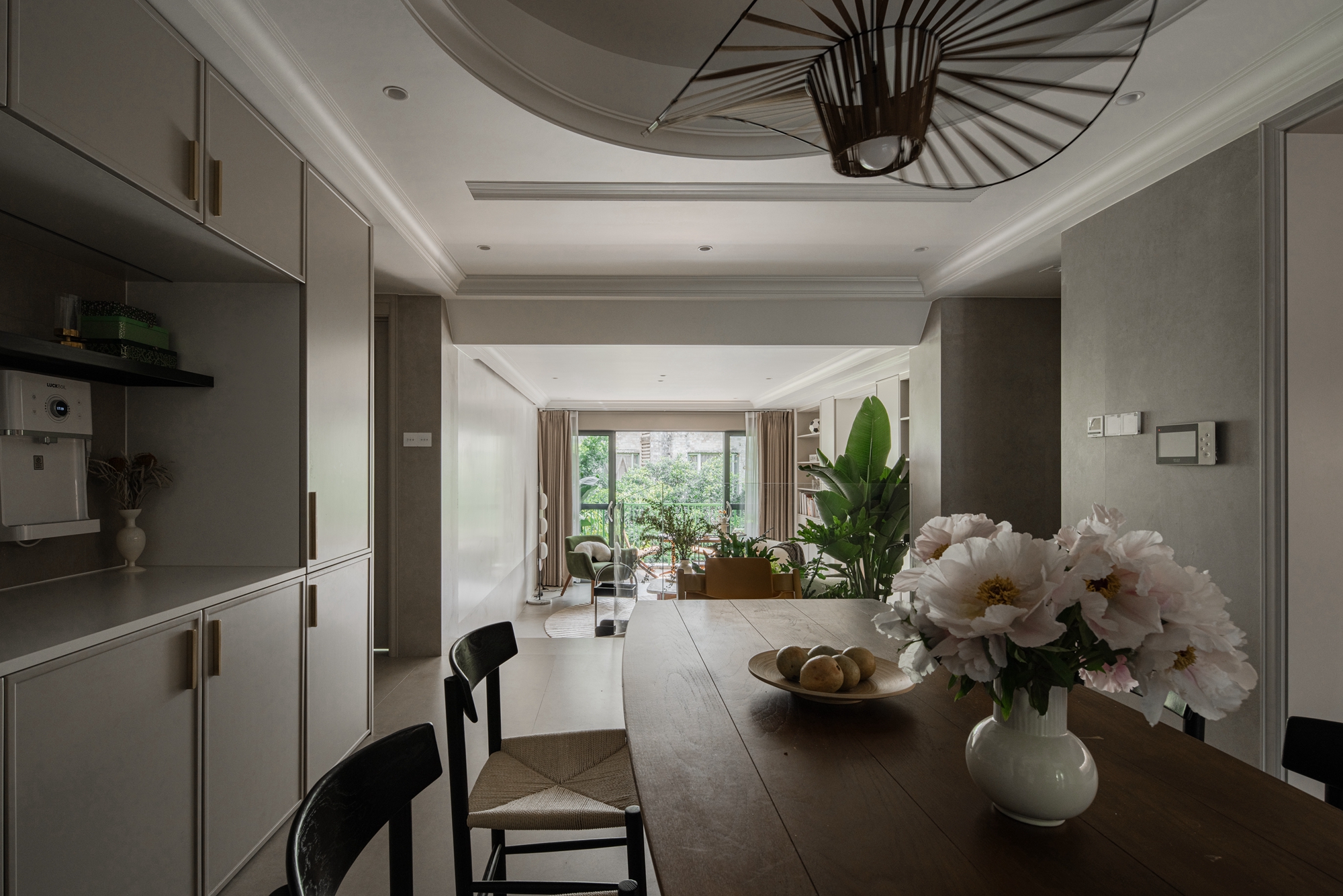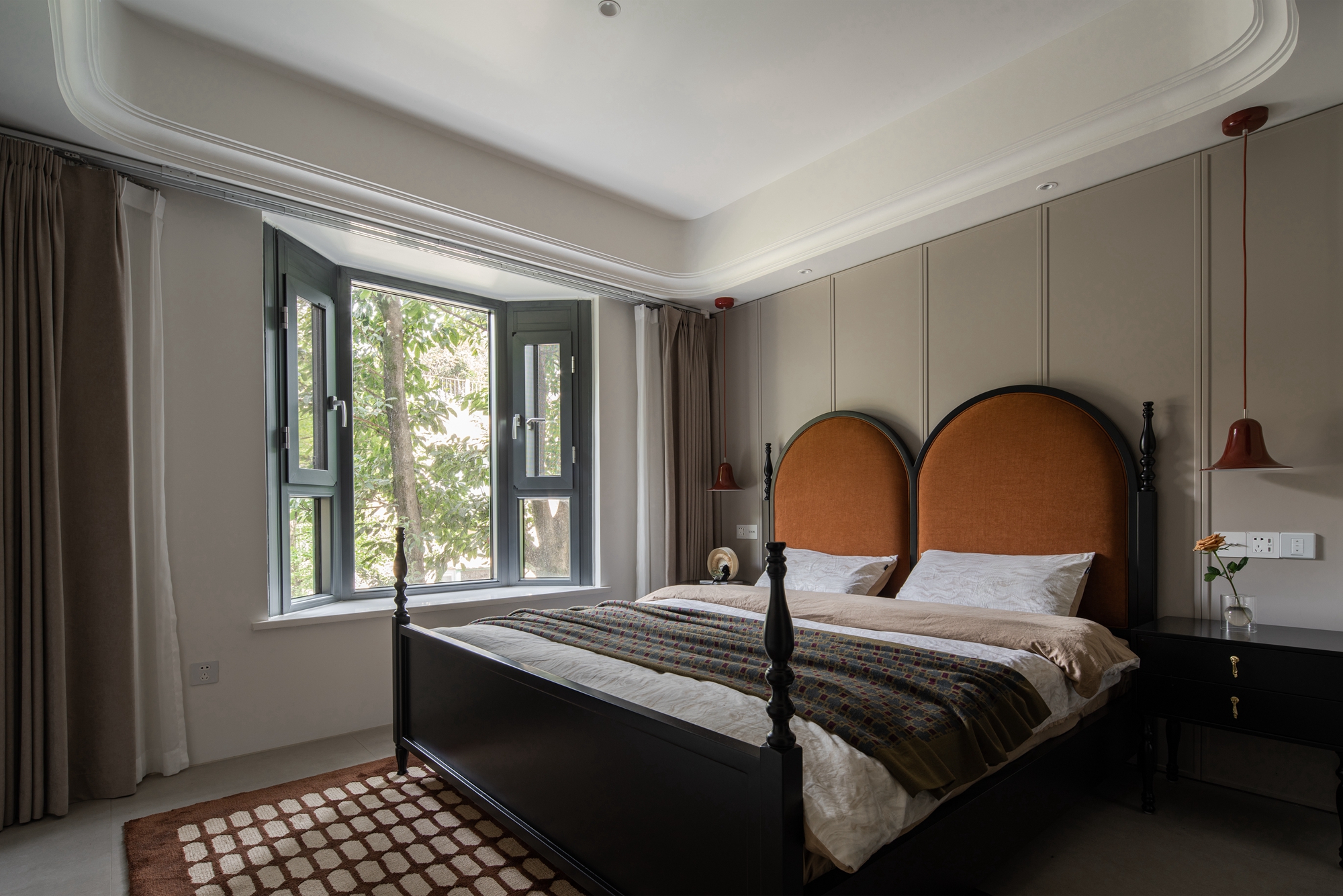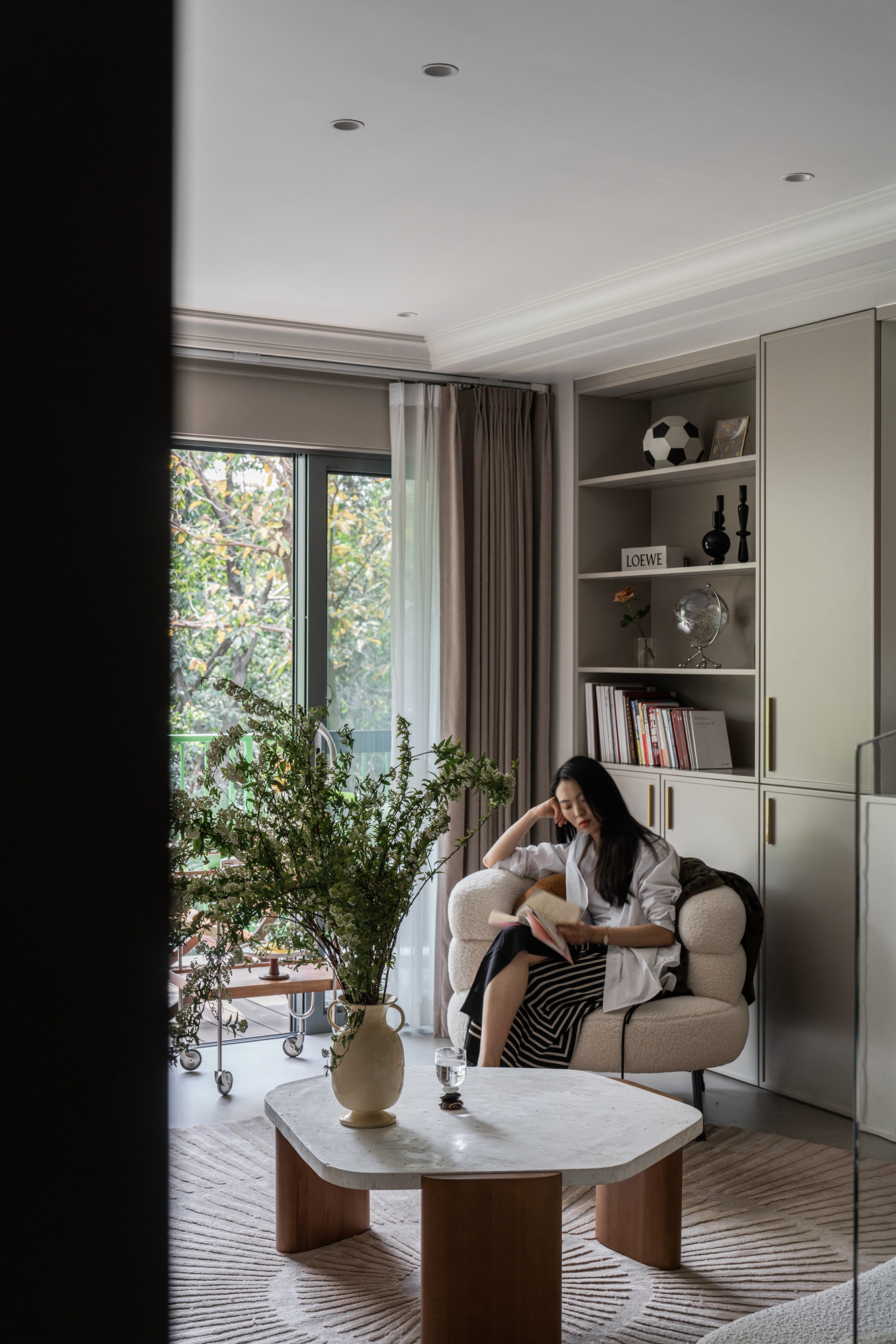 于是,七间设计团队以屋主一家的生活习惯和审美偏好为索引,珍惜并放大原有的窗景,以自然融合的设计手法,借景入室、引光入室。在这里,复古情调与现代生活达成奇妙的化学反应,自然材质与科技产品碰撞出质感生活。 -