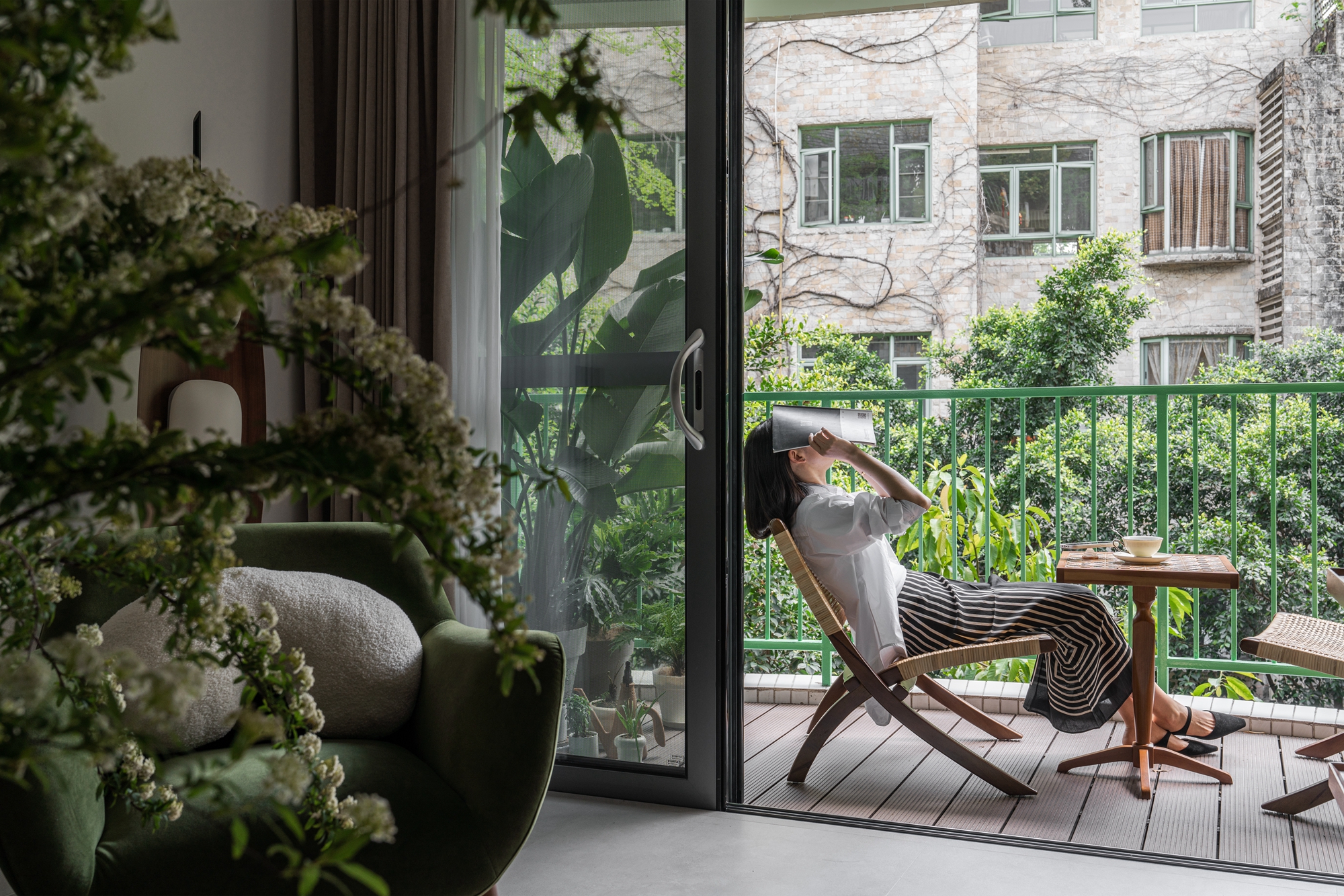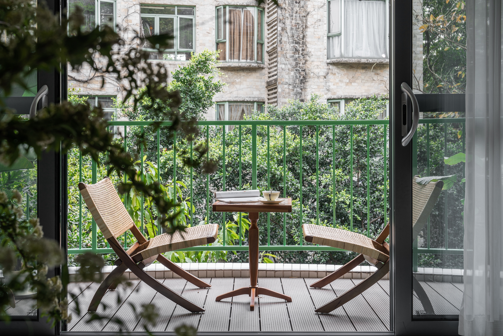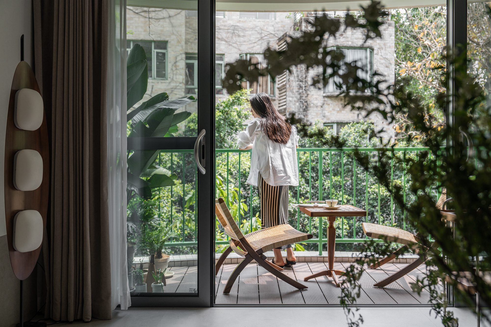 阳台外的绿植成为了家的背景,一年四季风景变换。