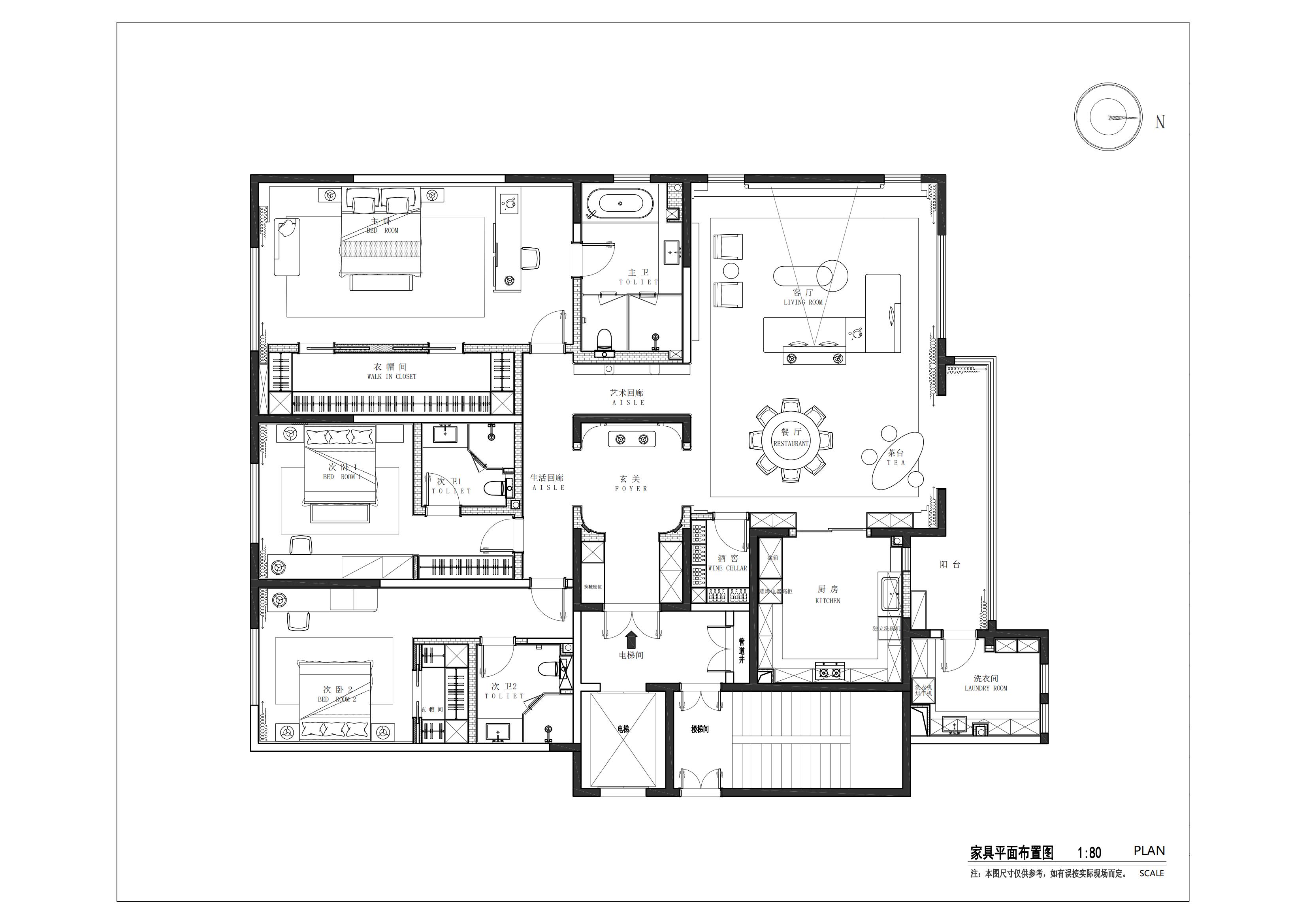 空间布局:在空间布局上我们采用环绕动线的设计手法来增加空间的艺术性和通透性