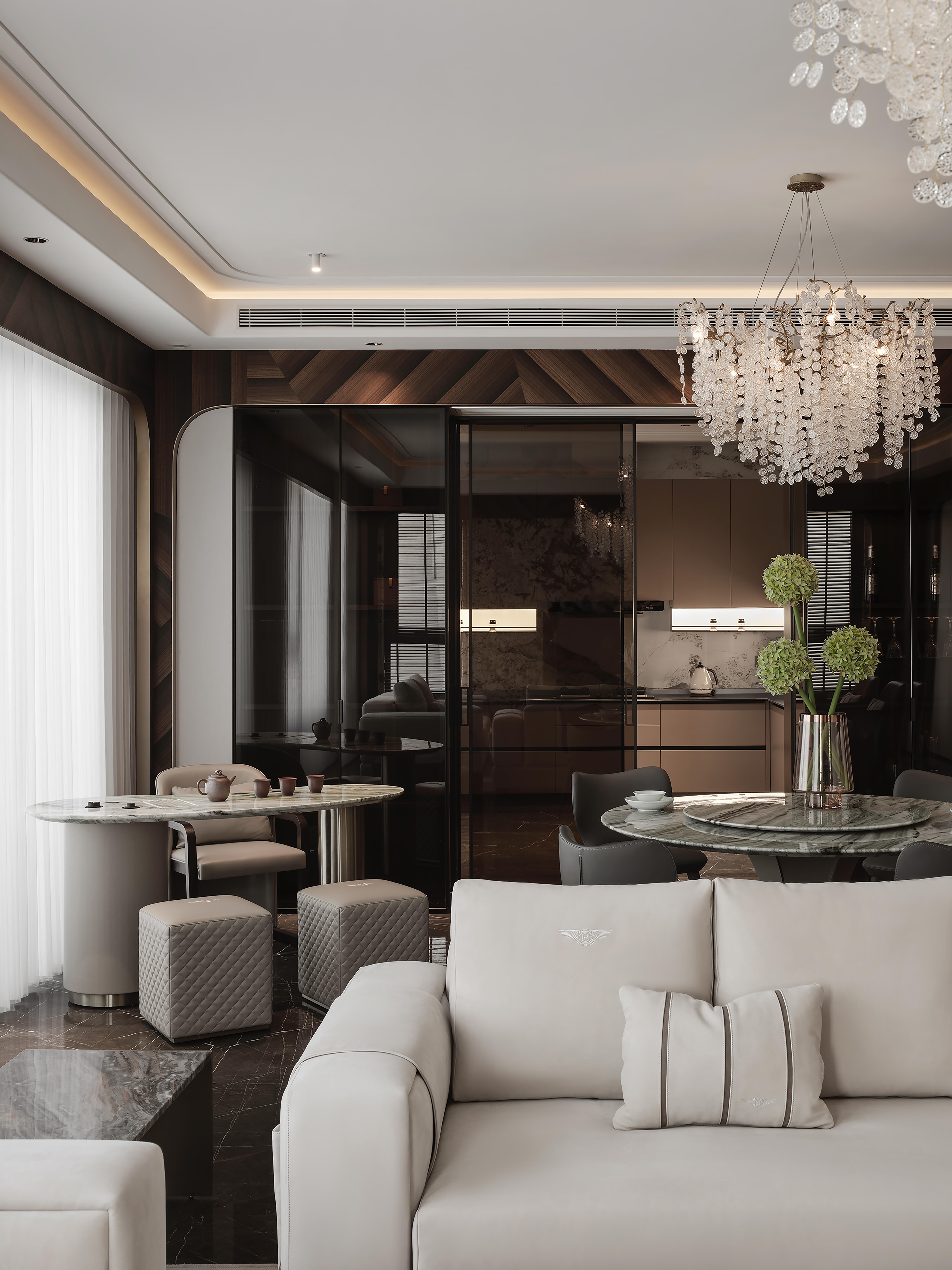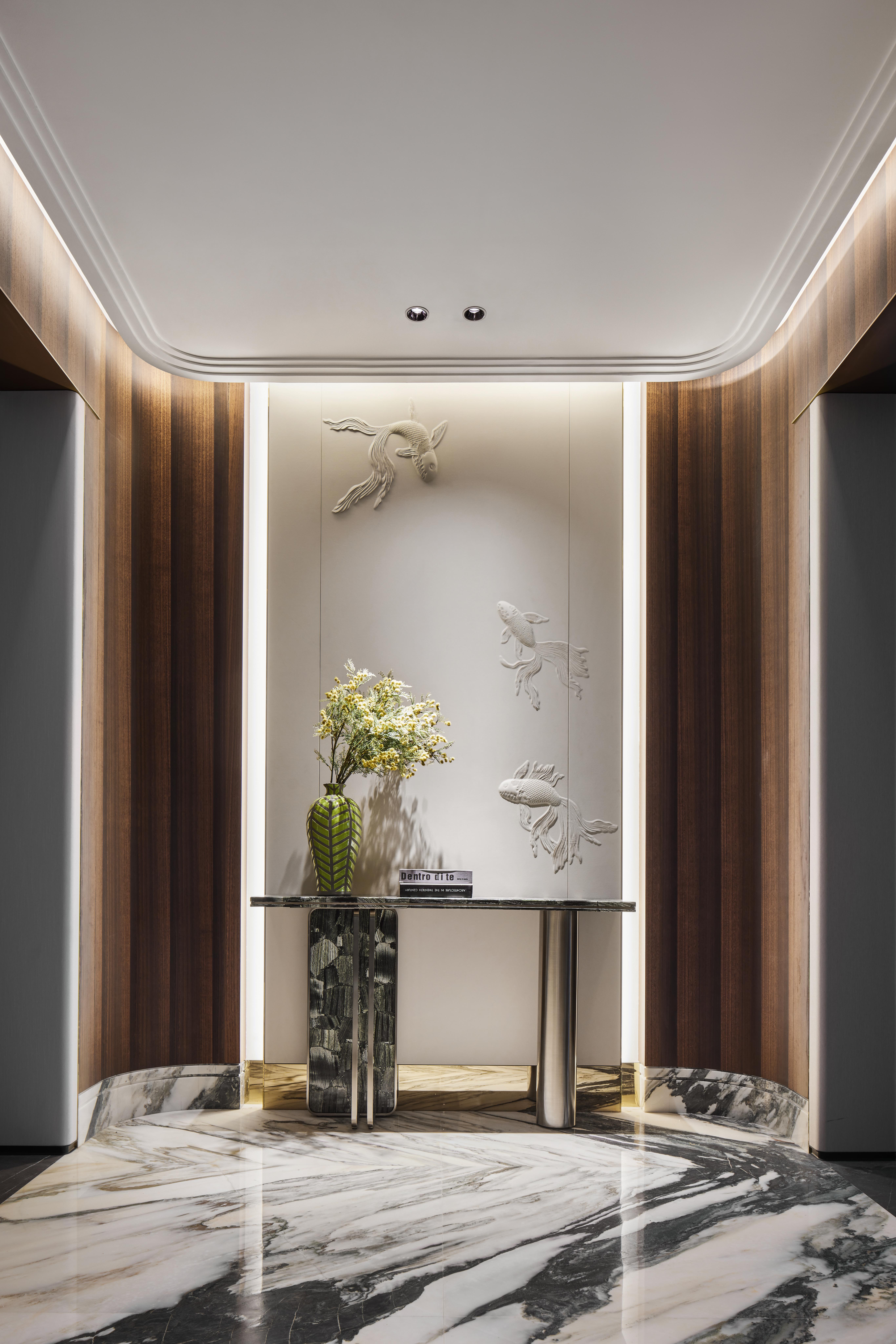 项目定位:项目地处南湖边 可以全览湖景风光 依据以上条件 我们以横厅观湖的方式重新规划了室内的空间布局 以东方人居为主题设计策划了空间