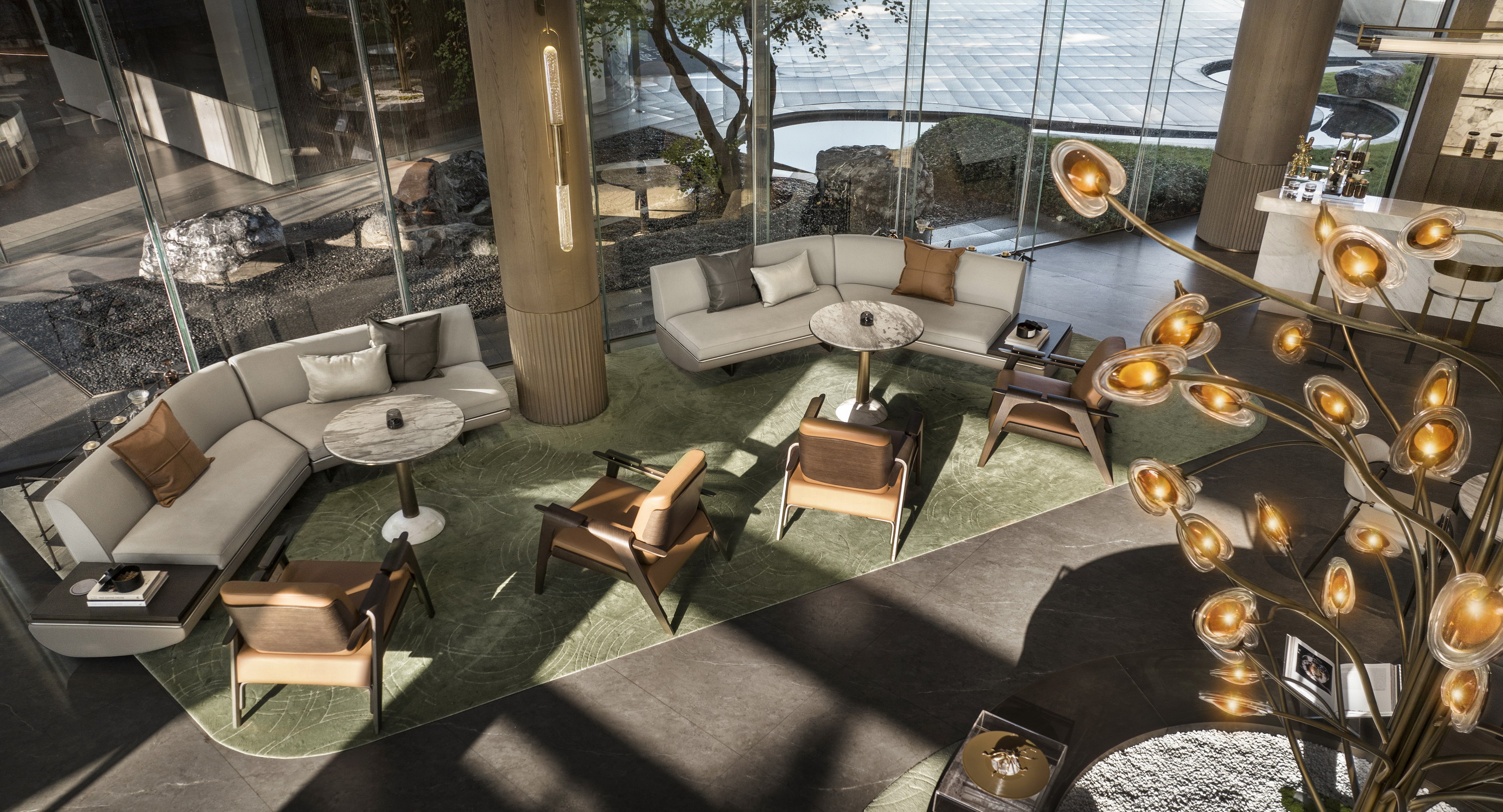 空间意境:以时间为线索,城市环境作为纽带,续写现代酒店式会所的尊贵精致体验。中间打造聚焦点,吸引客户往里走深度探索空间,让观者感受到蓬勃朝气、尊享的品质。