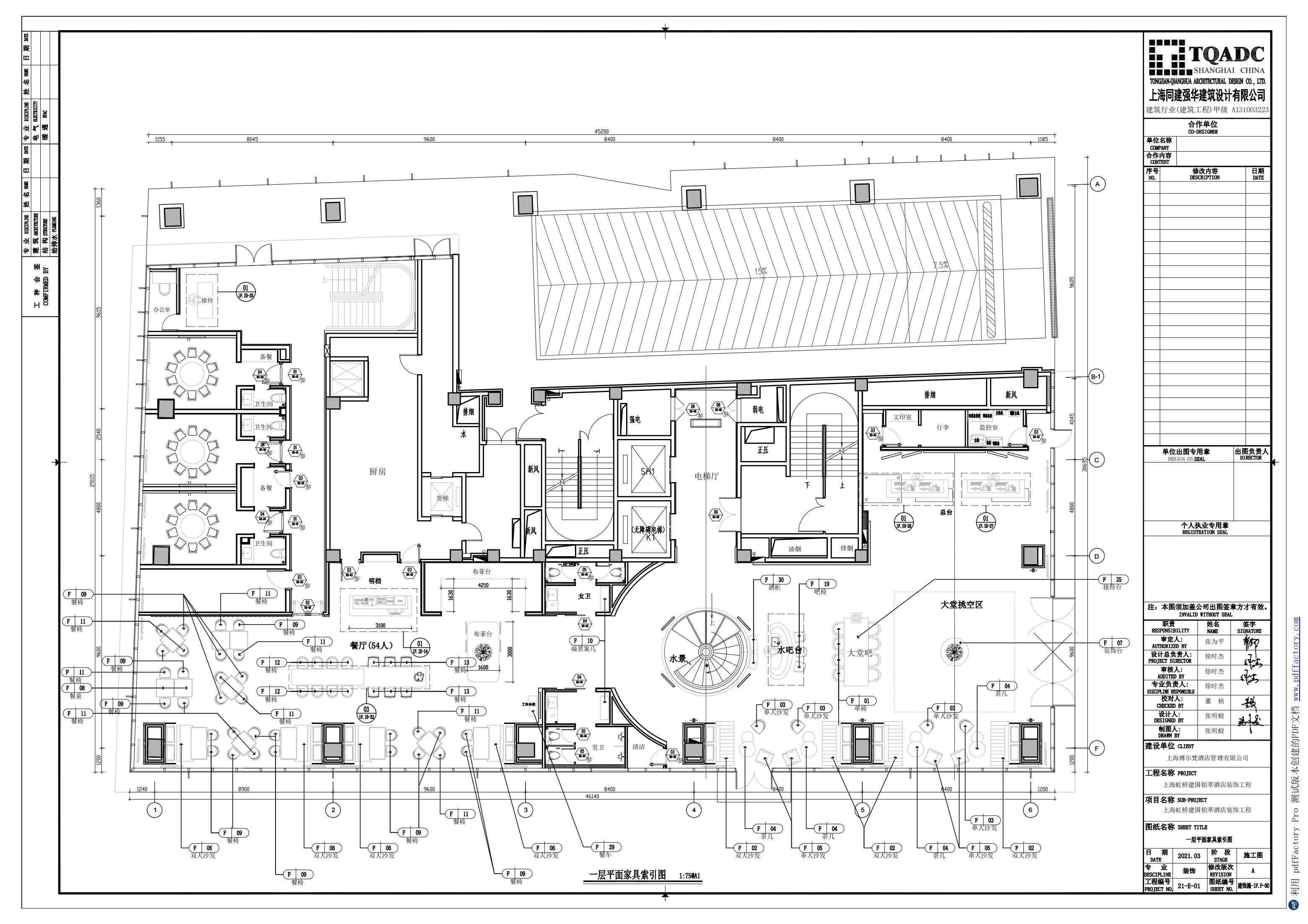 在设计手法的运用上,我们始终统一“东申闲逸 西并雅容 品类兼美 纵流大同 ”的主题,餐厅入口我们设置了岛台,让客人能直观的看到我们餐厅的用餐氛围,并结合金属、玻璃不同材质的组合,让餐厅前厅更加璀璨夺目。