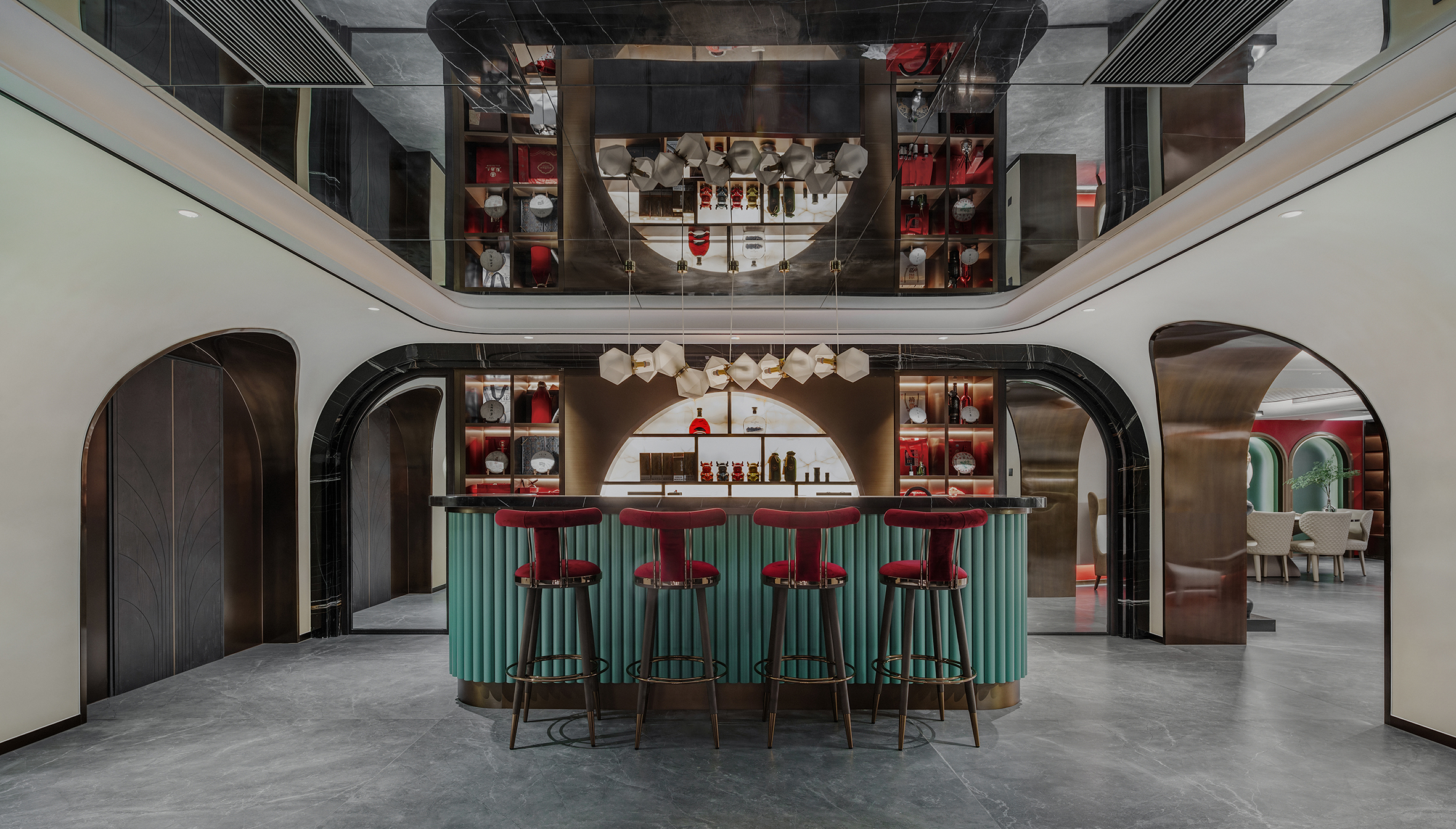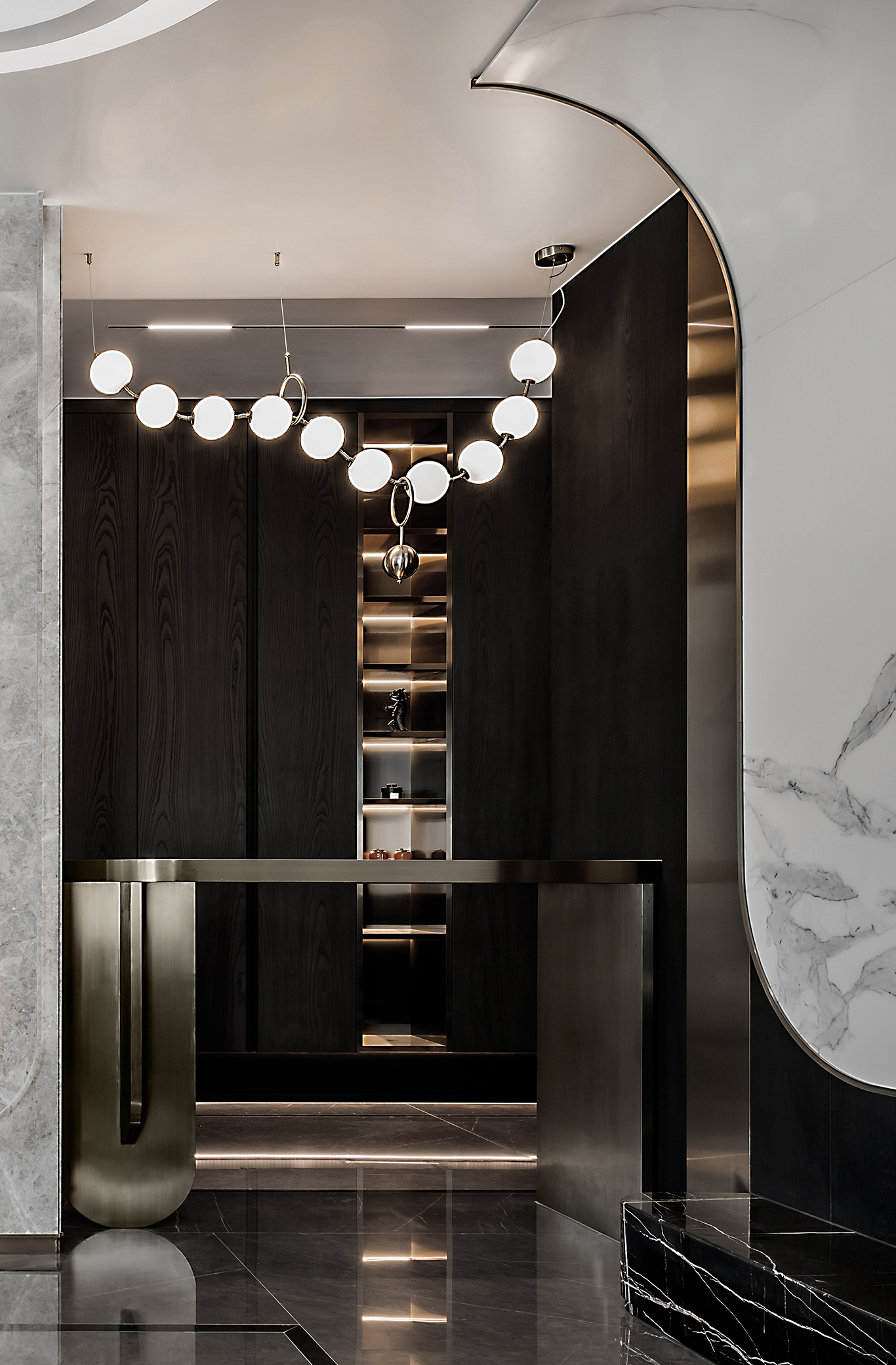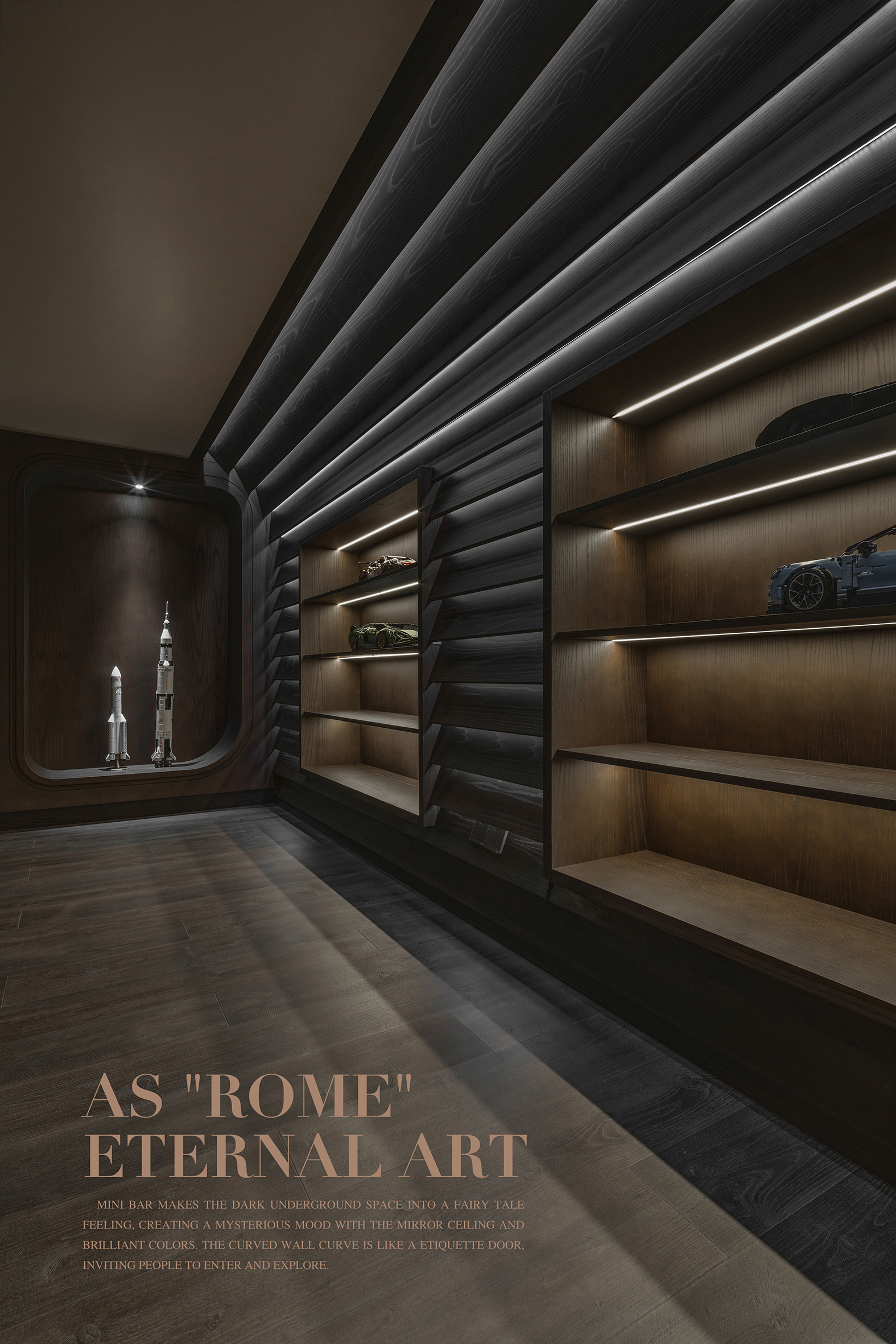 负一层设计以古罗马建筑为蓝本,在空间中运用对称、轴线、比例等方式排列组合,古典风格的秩序感营造出独特的空间符号,实现建筑语言室内化!