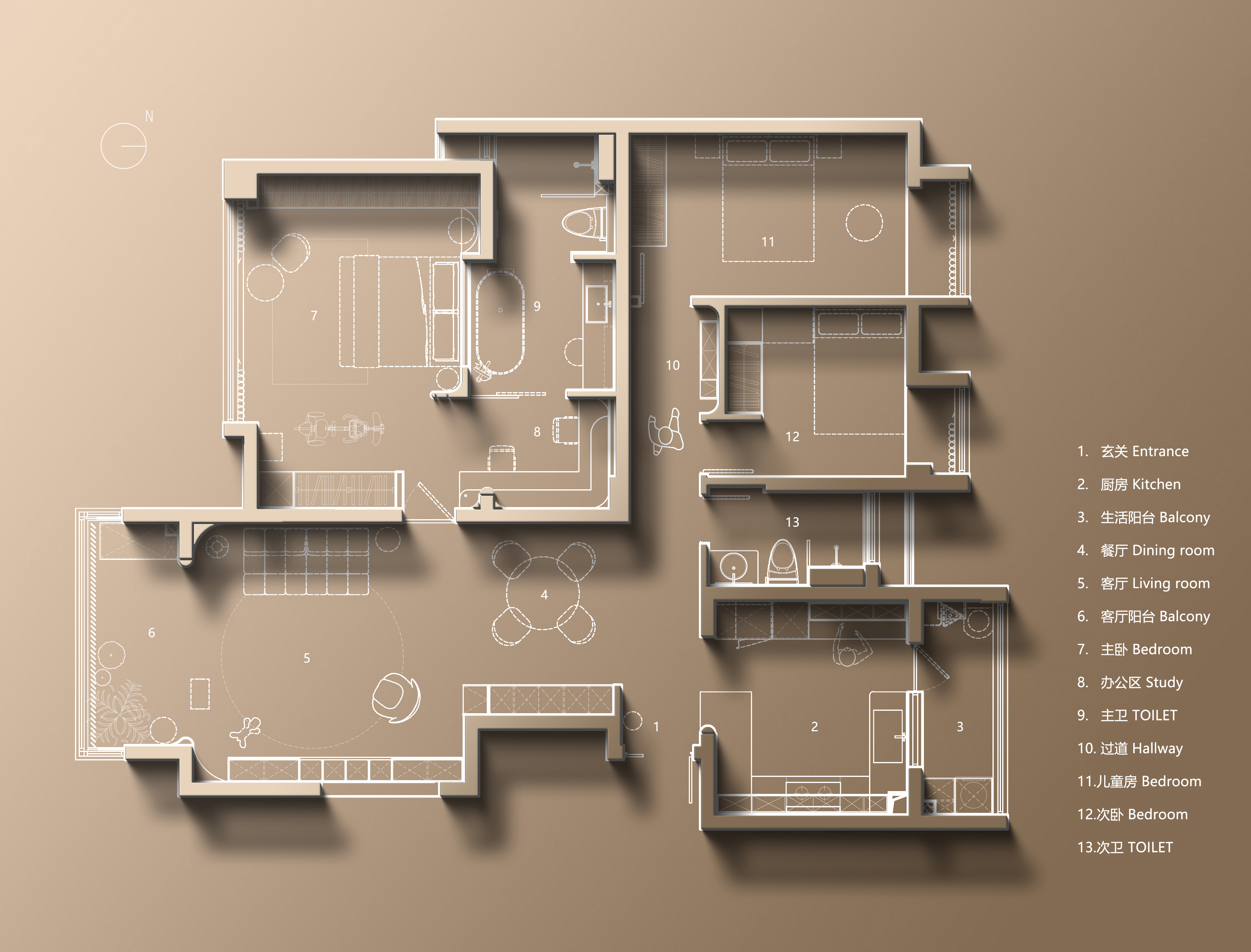 项目定位:在快节奏的现代生活中,家成了人们的避风港湾,让人放松身心,舒缓压力。而对于本案两位从事一线医务工作的屋主和他们的孩子来说,家人共处的生活点滴都弥足珍贵。