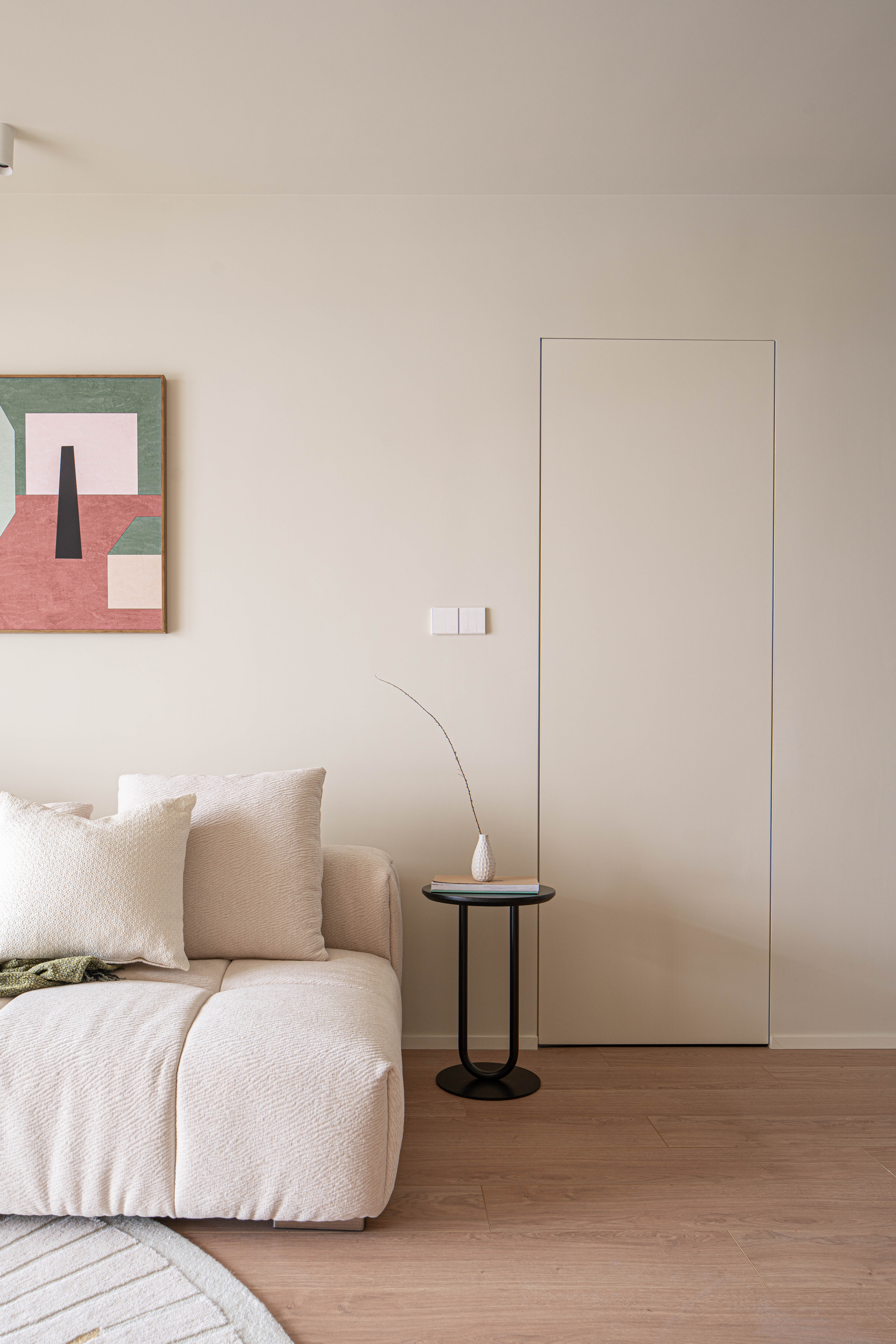 家里随处可见,有许多轻巧的小边几,移动方便,可以满足不同的场景需求。从隐形门进入主卧,屋主希望作为自己的私人空间,可以营造出充满个性与格调的居家氛围。