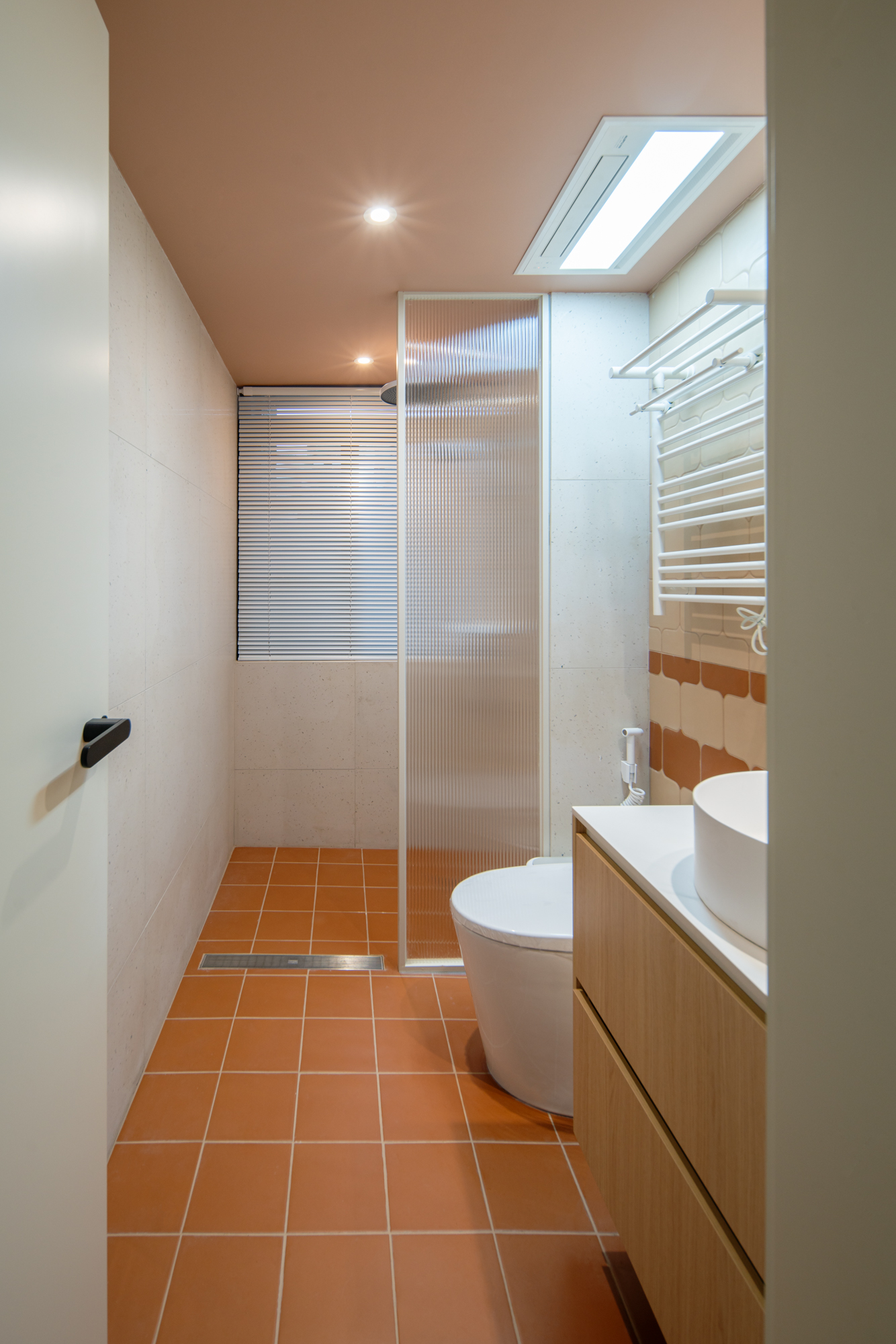 客卫延续陶红+米黄的撞色搭配,浓郁又活泼。