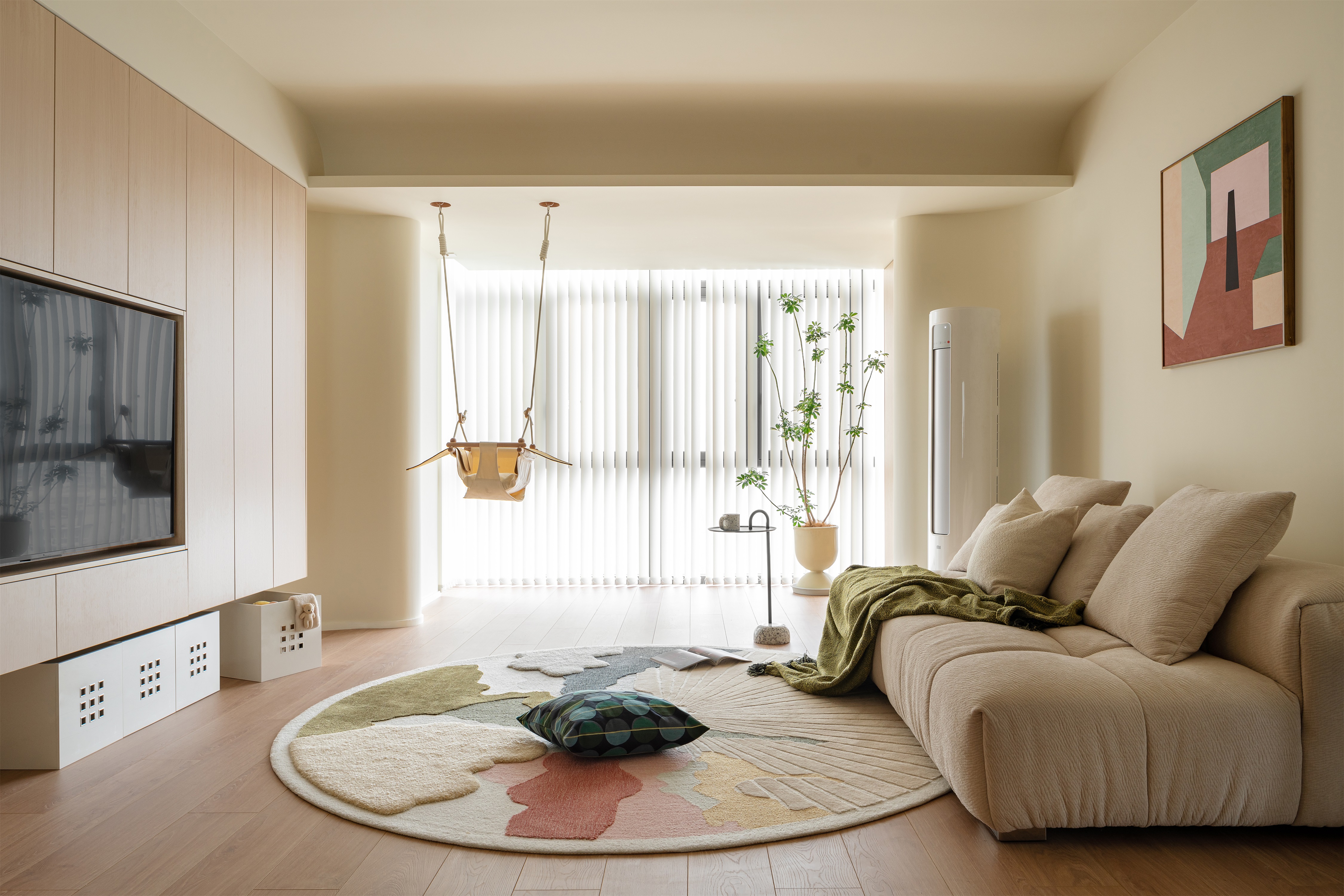 用户体验:设计师计从每个家庭的实际需要出发,拒绝千篇一律,设计一个自定义的家,从客厅的秋千,无茶几的大地毯,到主卧的外卖小天地,儿童房衣柜的开放格等等,每一处都觉得恰到好处。
