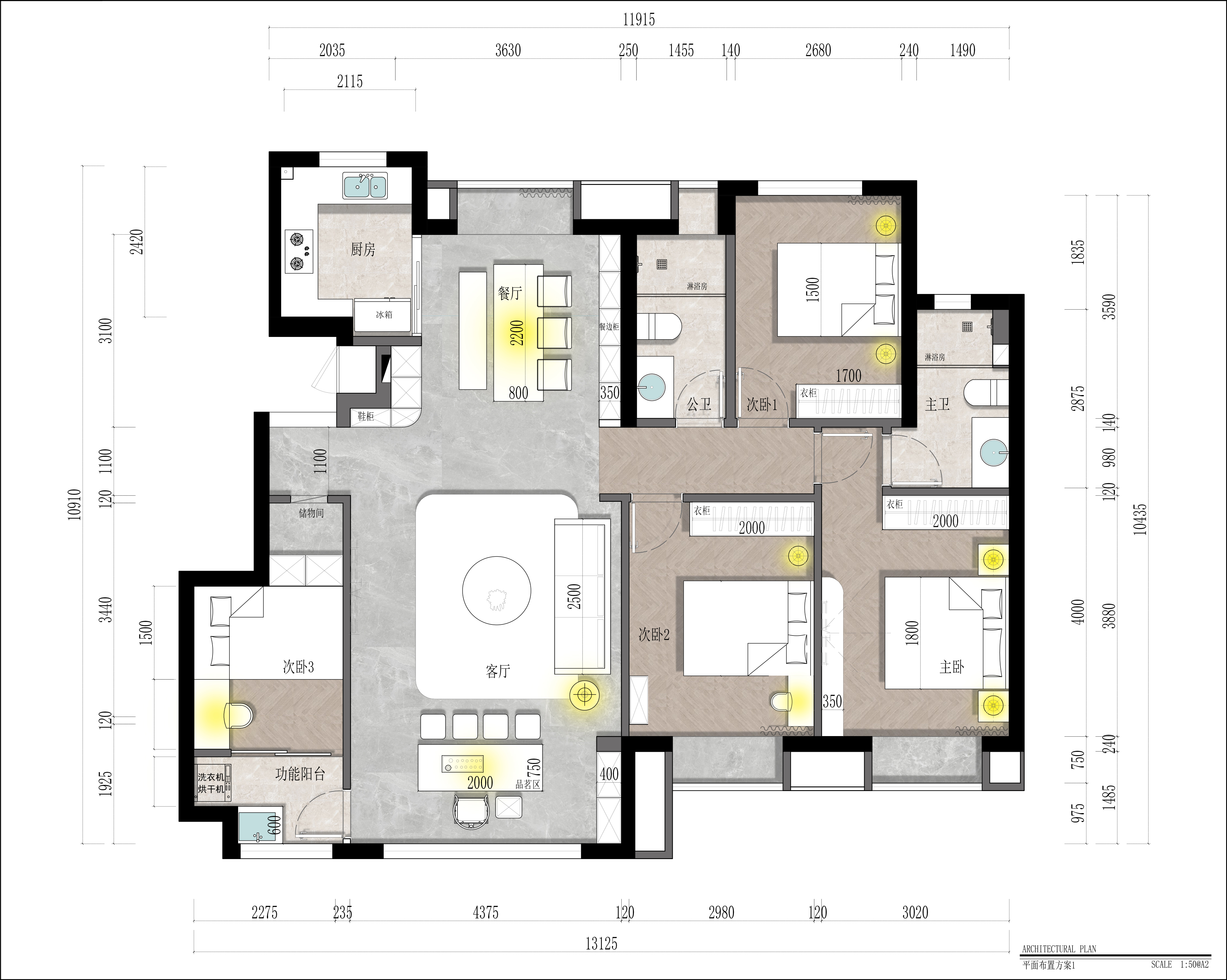 空间布局:通过无主灯,线光源,冷暖融合,营造出品质而高雅,耐看型高品味的空间生活享受氛围