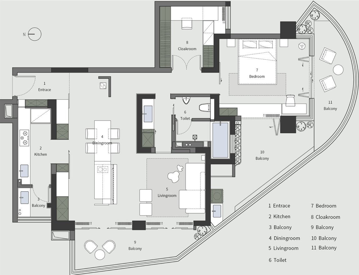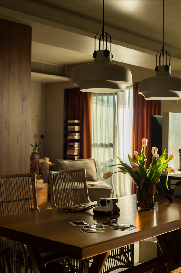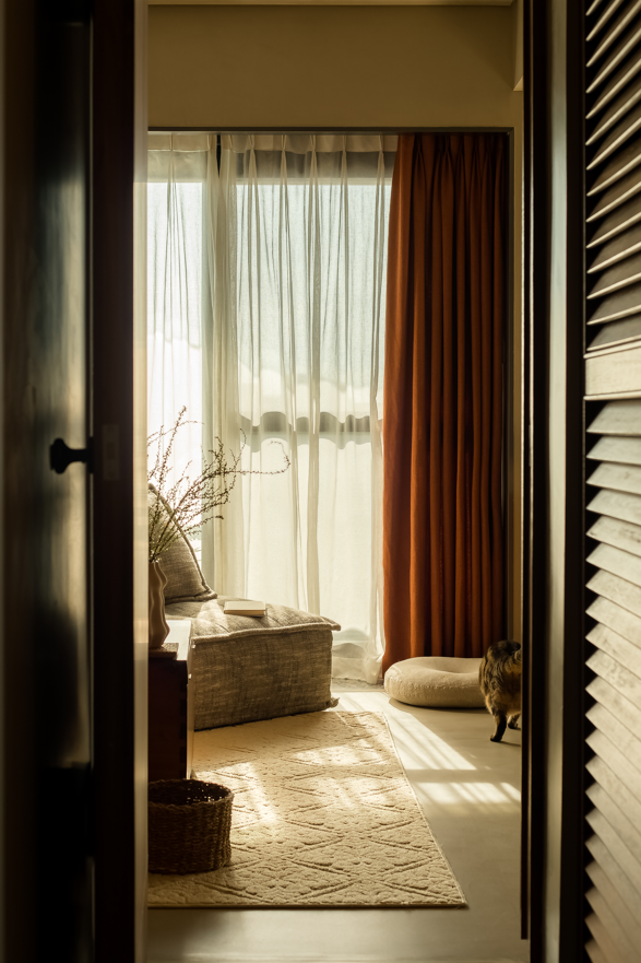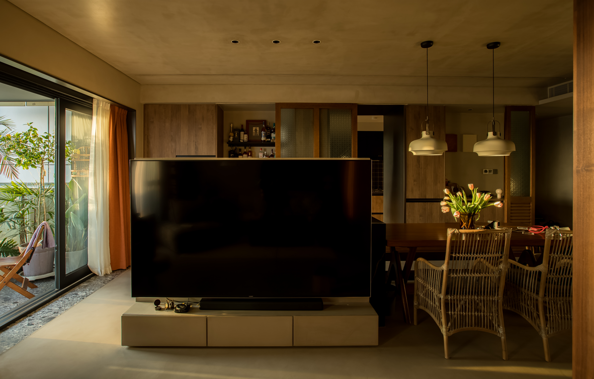项目定位:房子的女主人叫阿福,喜欢逛展和探店,这培养了她对空间设计的敏锐度。偏好东南亚风情的她,喜欢古朴优雅的空间。阿福的先生一北,热衷于艺术和音乐,对于他理想中的家是可以自由生长的,让人感到舒适和放松,久处而不厌。家是他们生活的重心,如何创造适合他们喜好且久住而不腻的生活空间,是我们在设计之初着眼的课题。