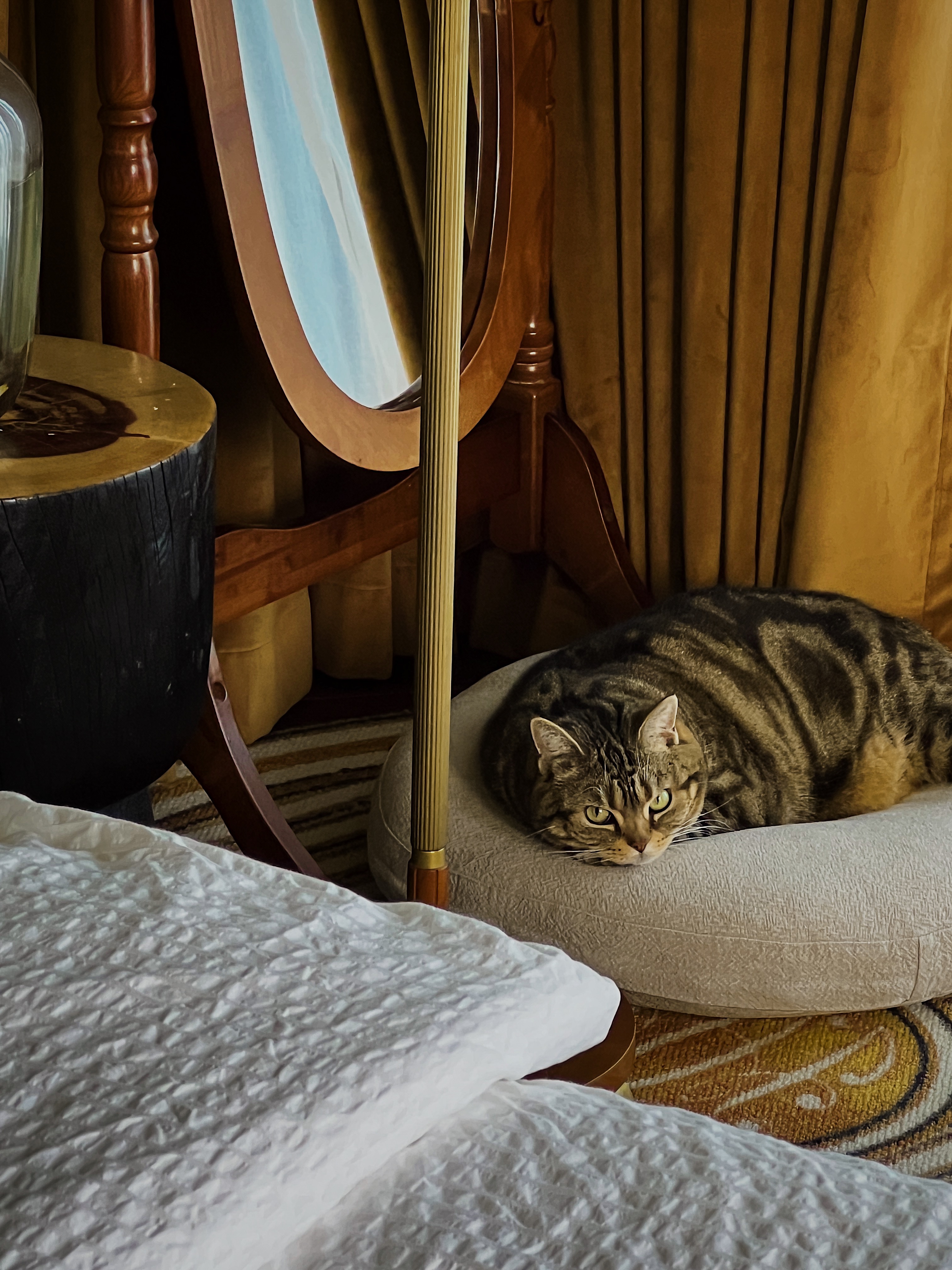 此时蜷缩在垫子上的猫猫也自带了几分温润气质。
