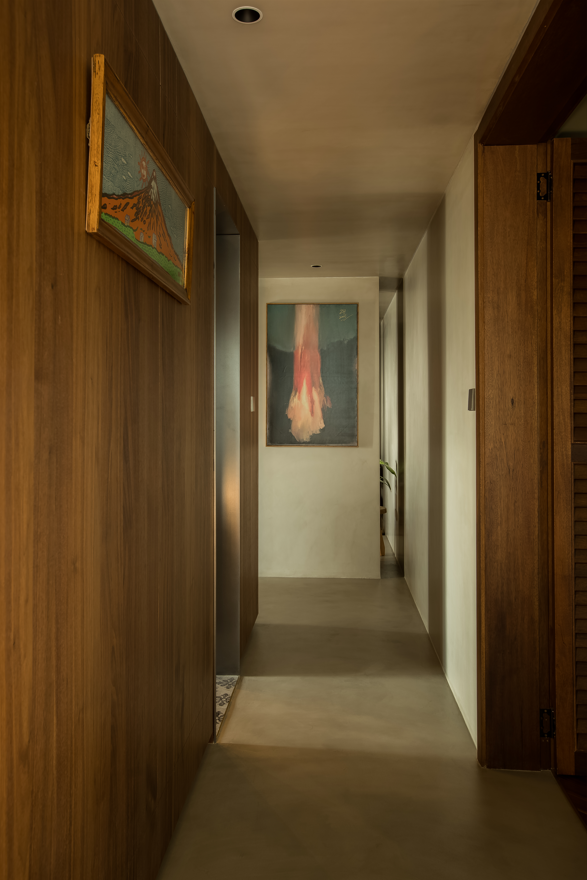走廊留白的墙面挂上了屋主收藏来的艺术品,每件作品她都可以把背后的故事和她的感受给她的客人娓娓道来,对家而言,这些藏品就像一个叙事者,以旁观者的身份讲述屋主隐藏或表露的个性和喜好,家的样子最终成为居住者的样子。