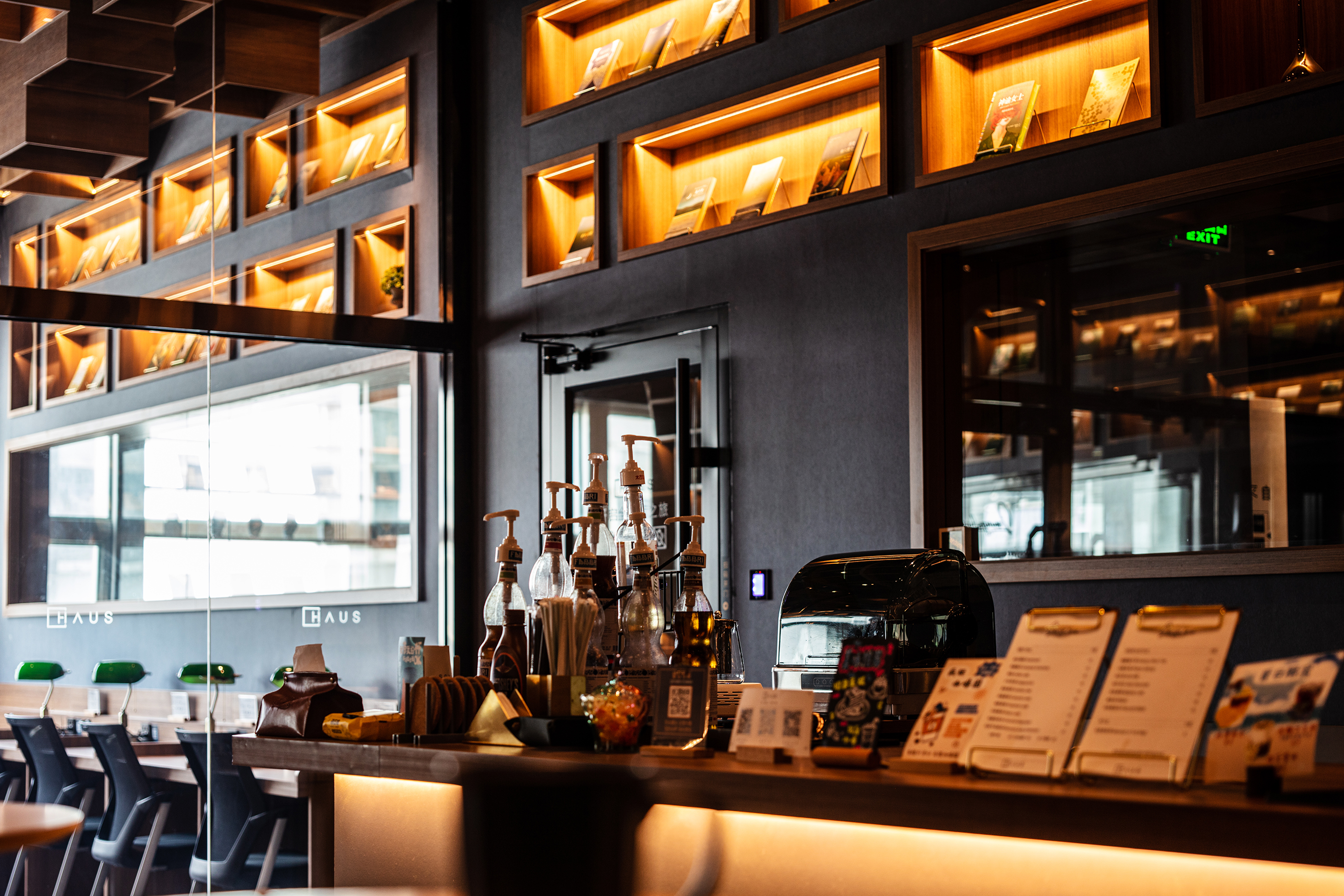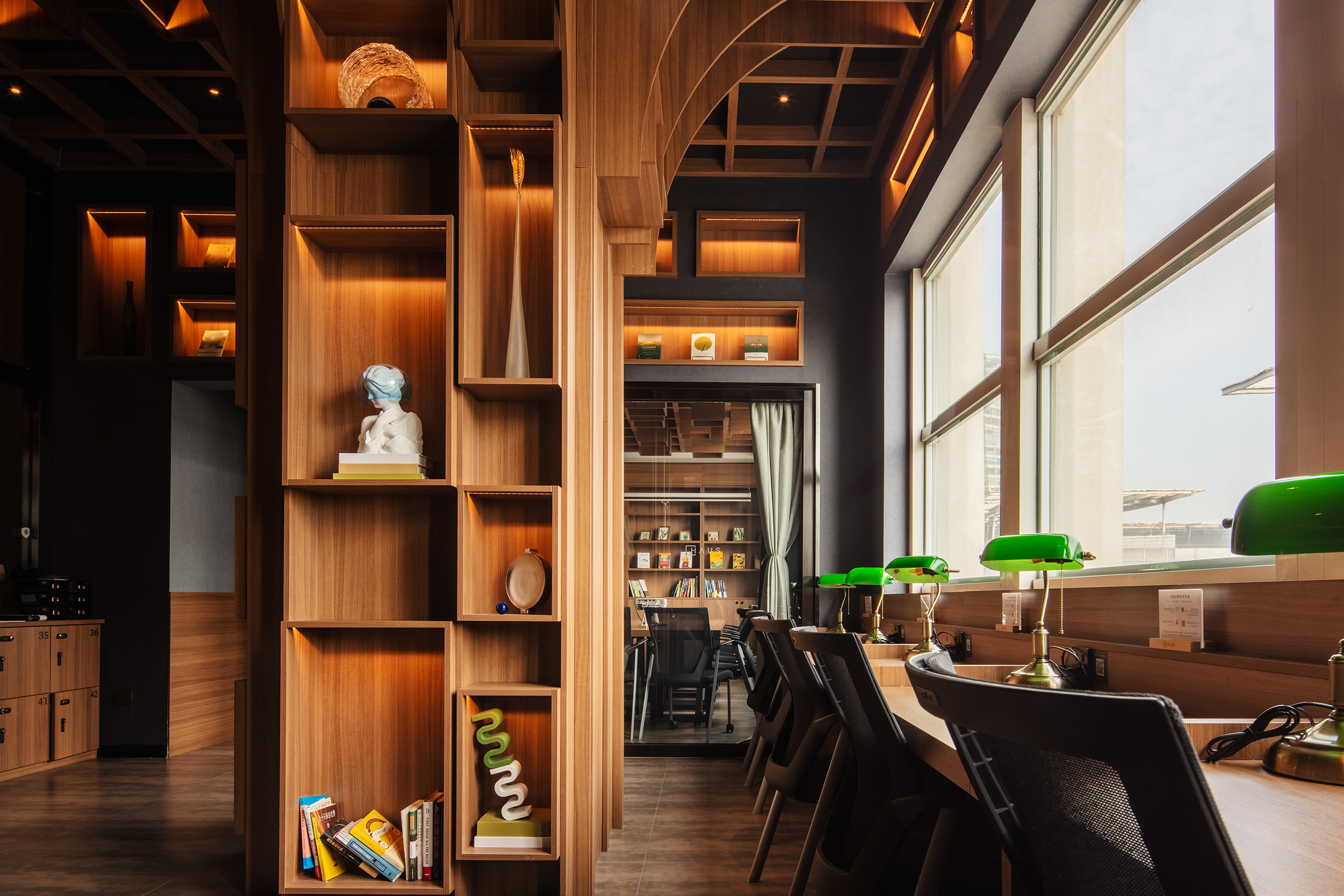 繁华的都市,马路上匆匆行走的行人和快速驶过的车辆,无处不透露着城市的喧嚣。我们迫切需要一个安静的时空让我们去寻找这里为数不少的沉寂与自我思考的旅程。在这里,我们将品味着书香和咖啡的清香,忘却尘世的纷繁。本次设计延续了嗨书吧的亮点设计,融合了之前店面的精华部分,打造了一个更为优化的学习空间,营造了更舒适休闲的氛围。