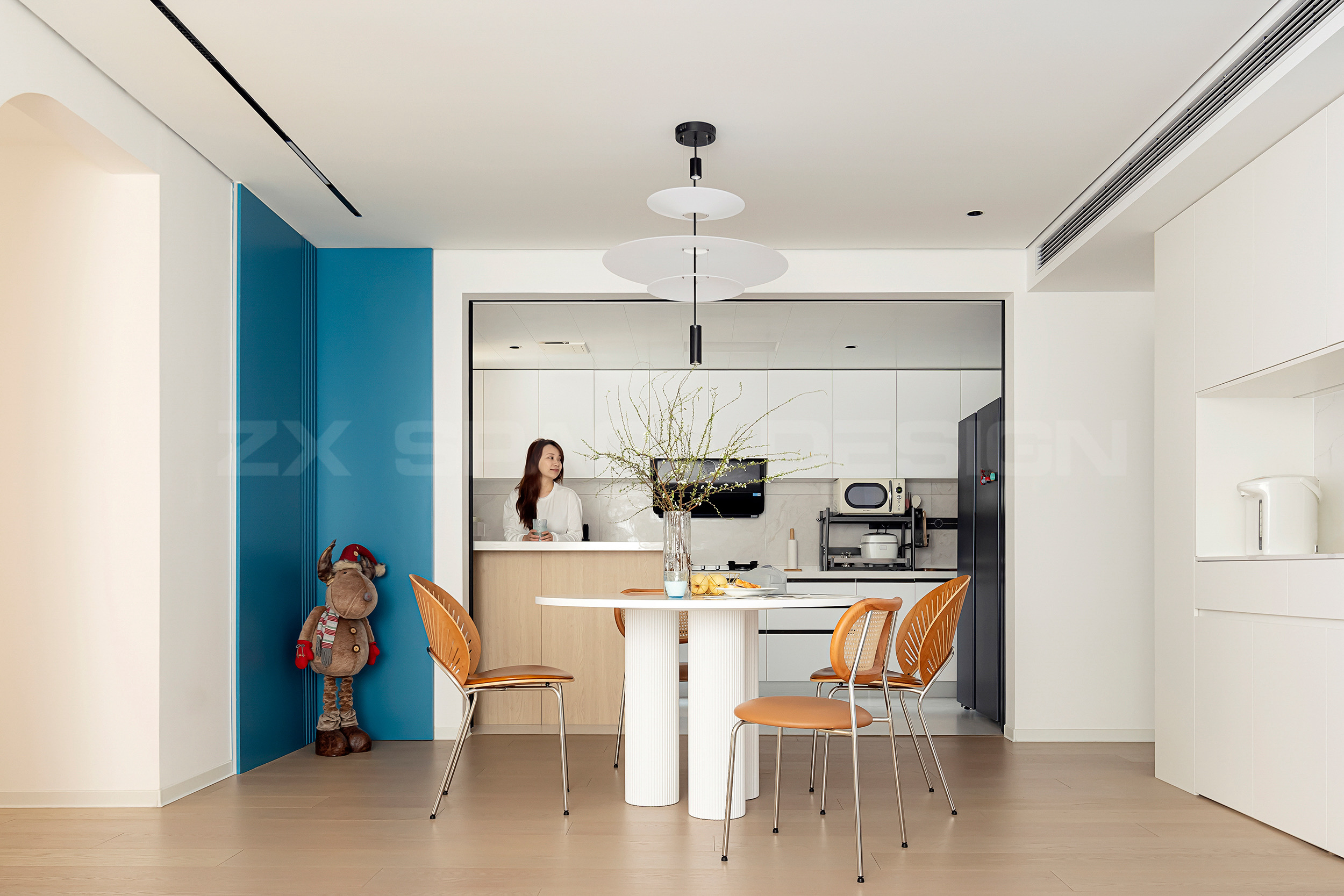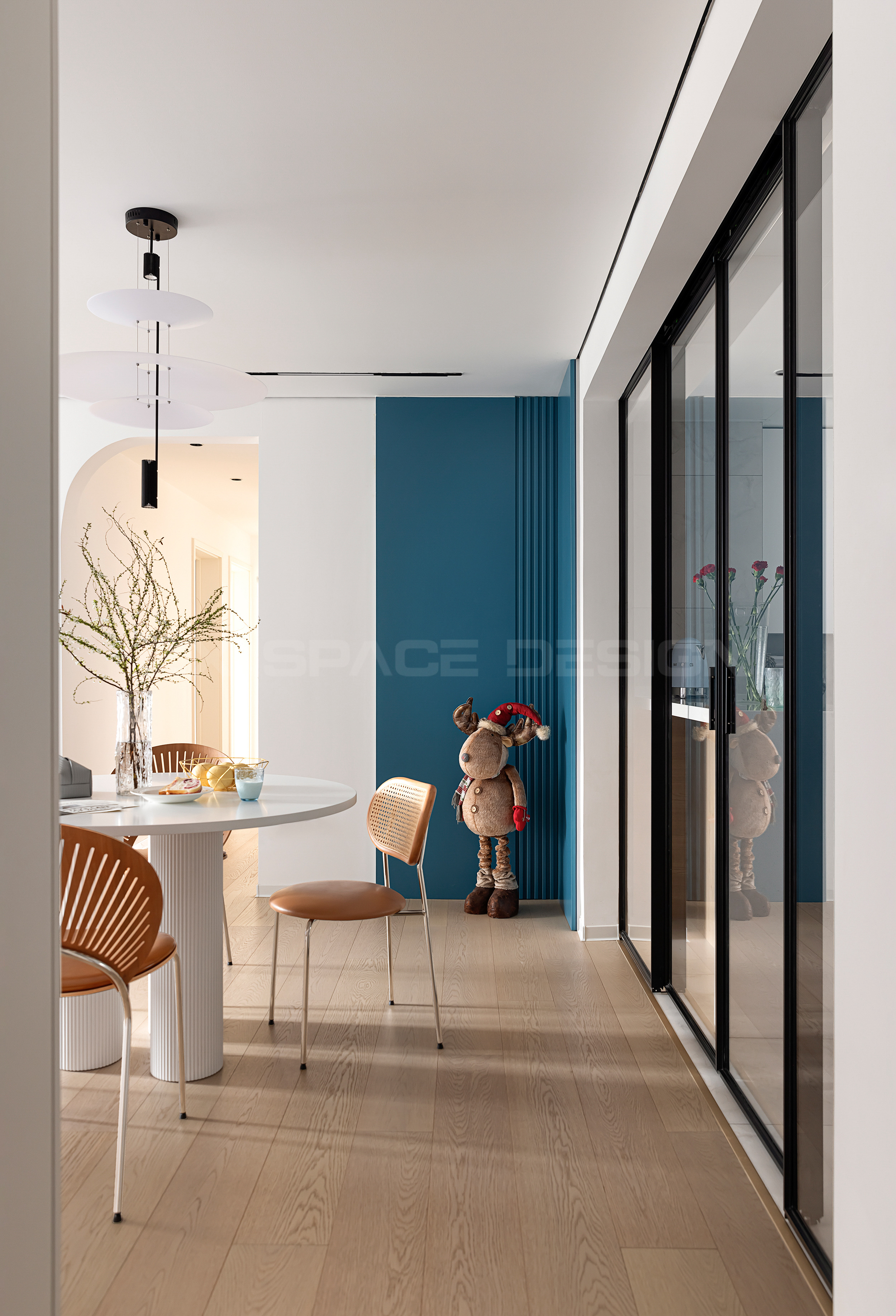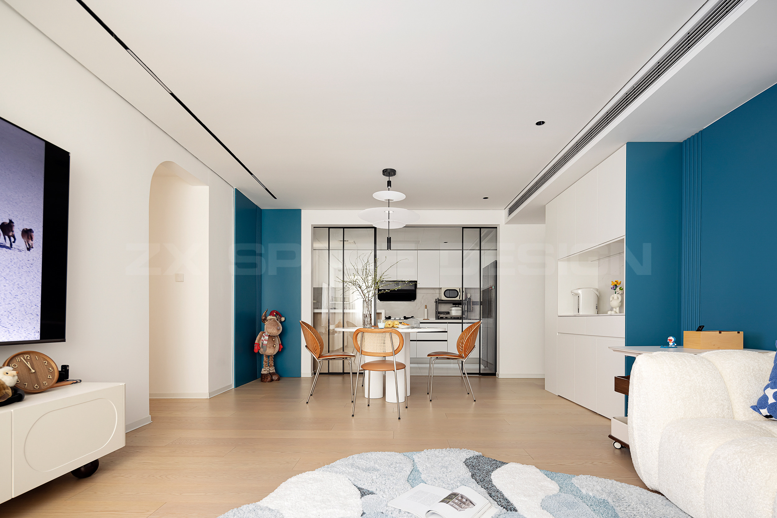通过家人喜爱的蓝色作为标志指引,明确贯穿了整屋动线。