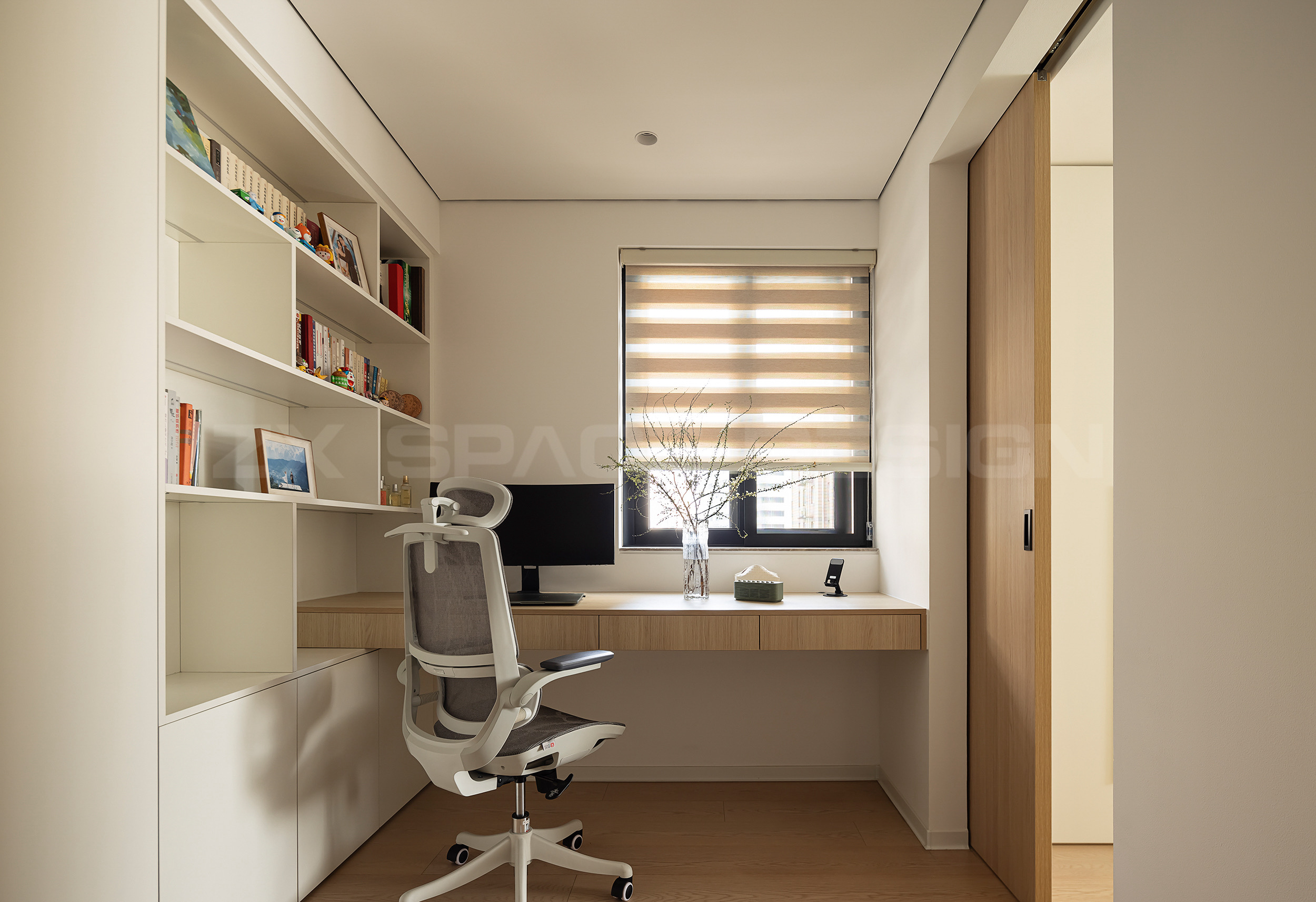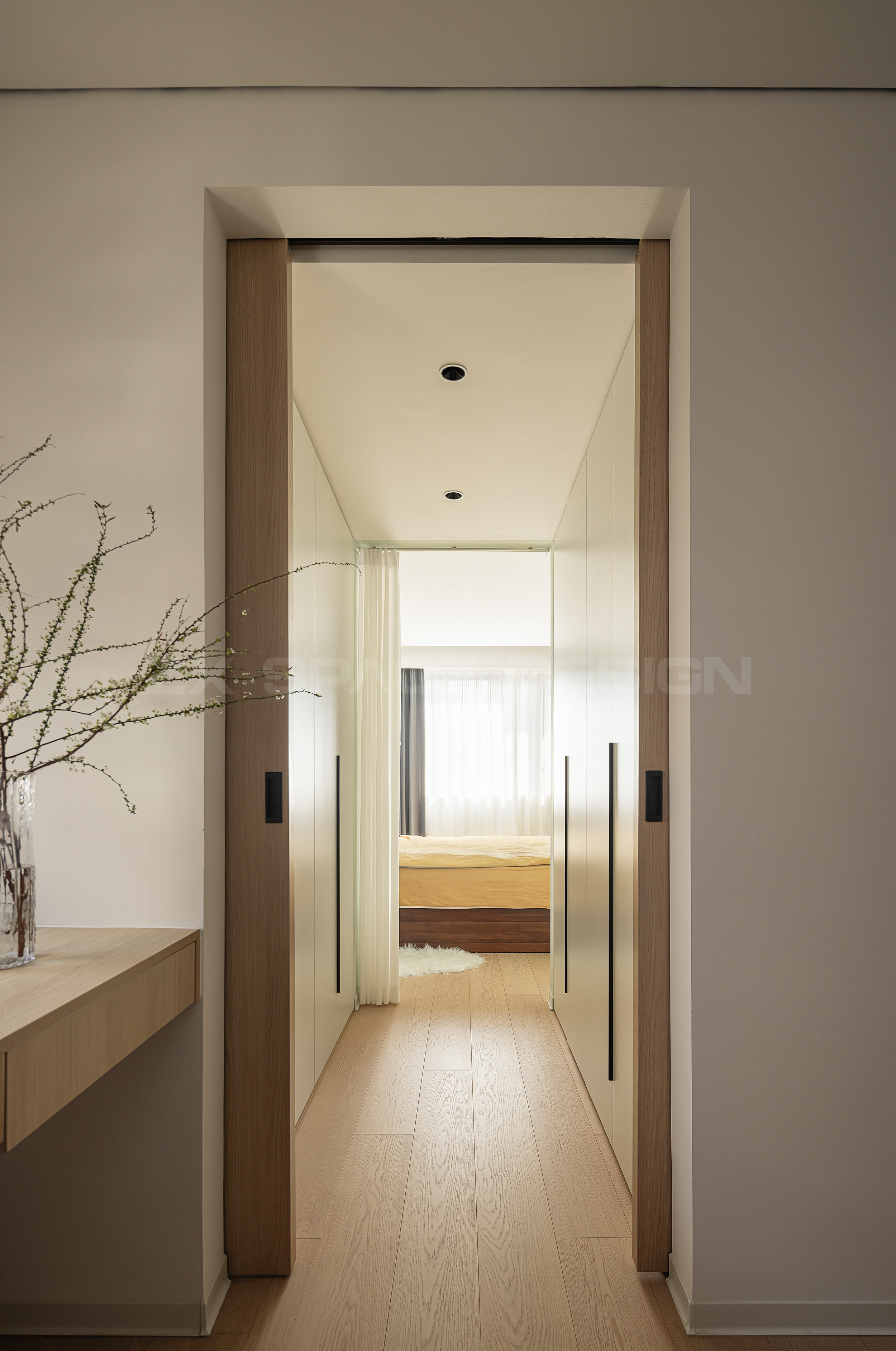 木色口袋移门可满足书房独立私密,以衣帽间串联,居住更多变化可能。