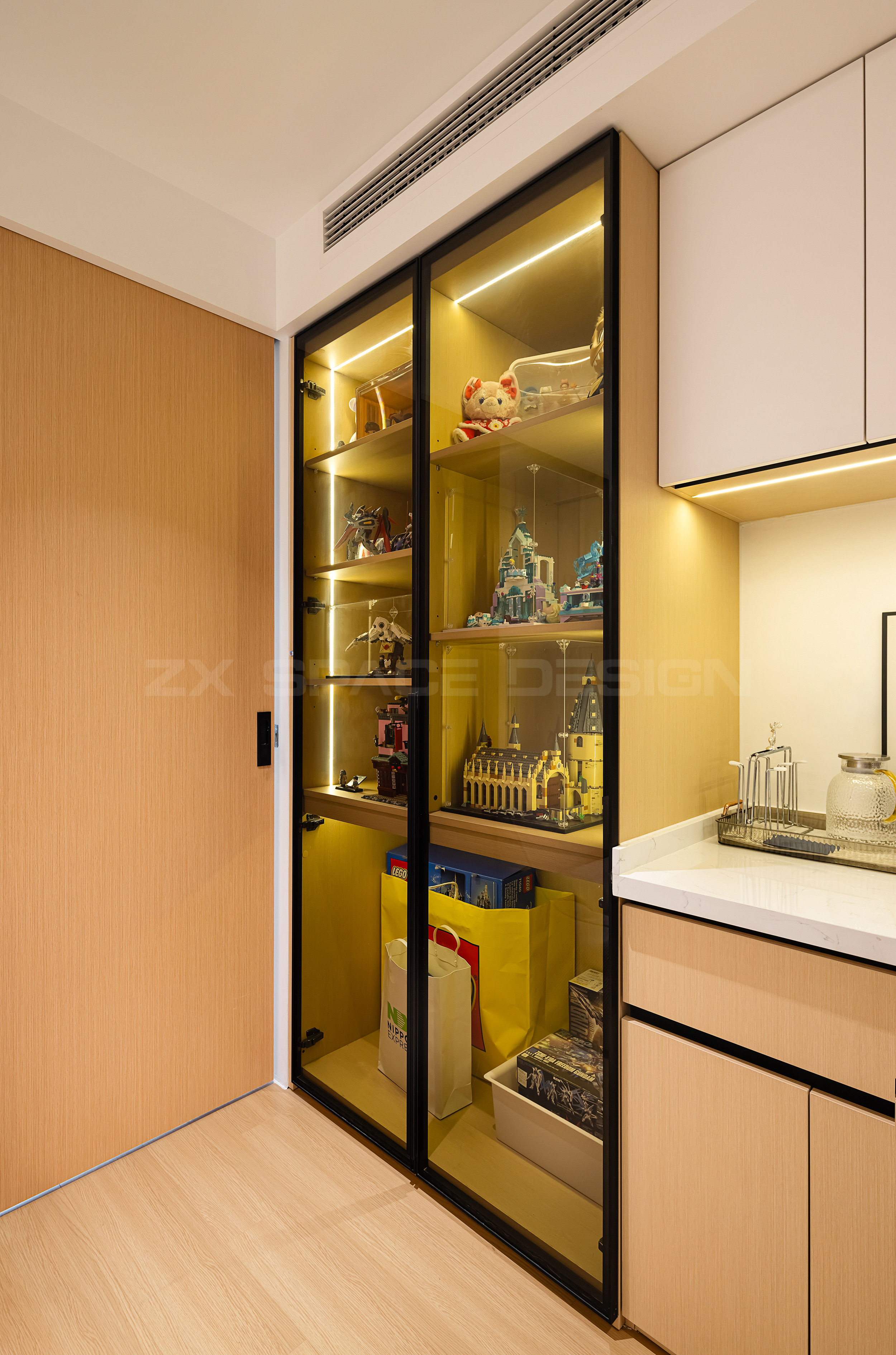 侧面长条玻璃展示柜,心爱的手办盲盒也有了属于它们的家。