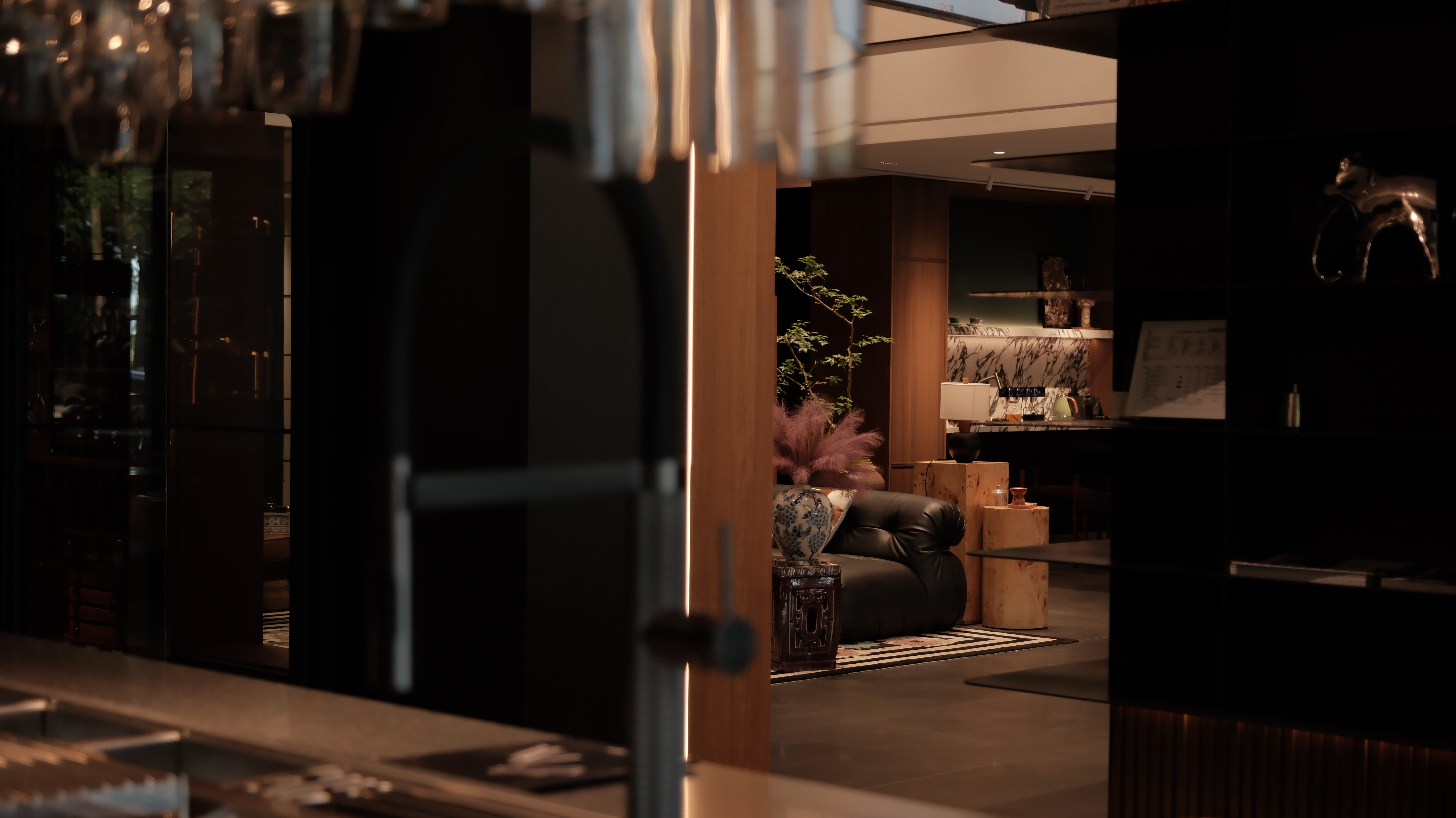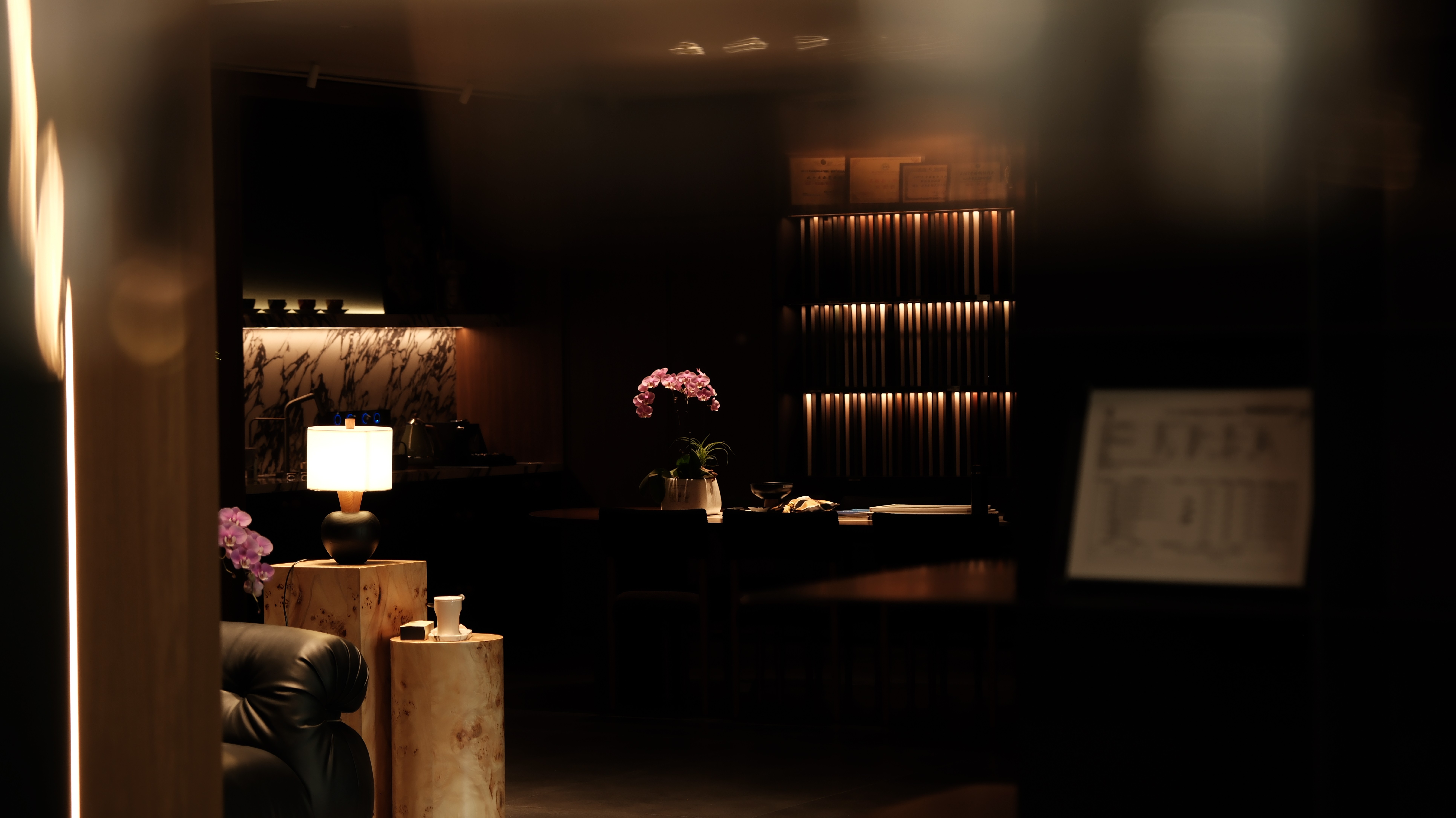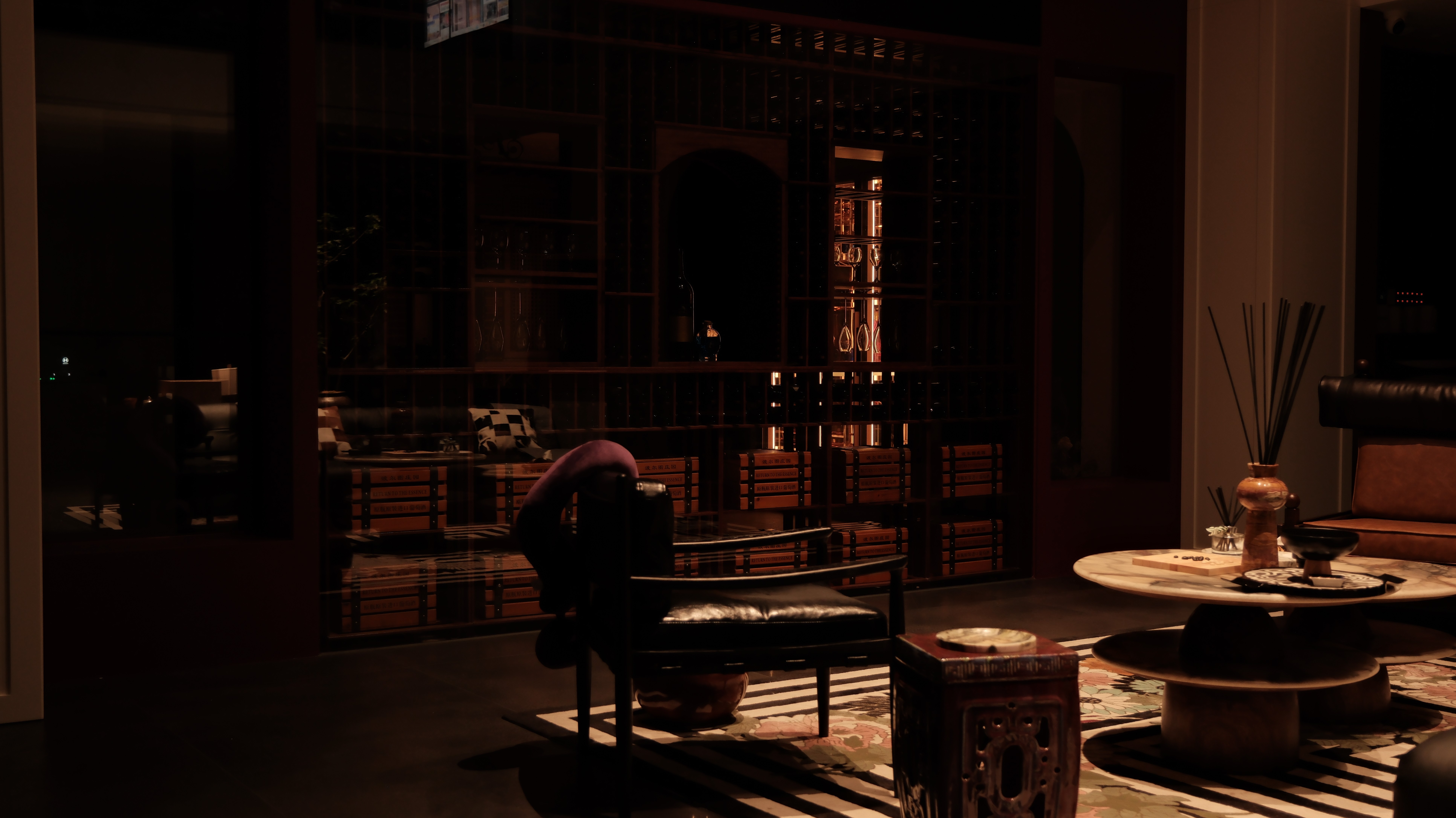 用近似老钱风的灯光效果表现当代会所的怀旧又深沉的味道