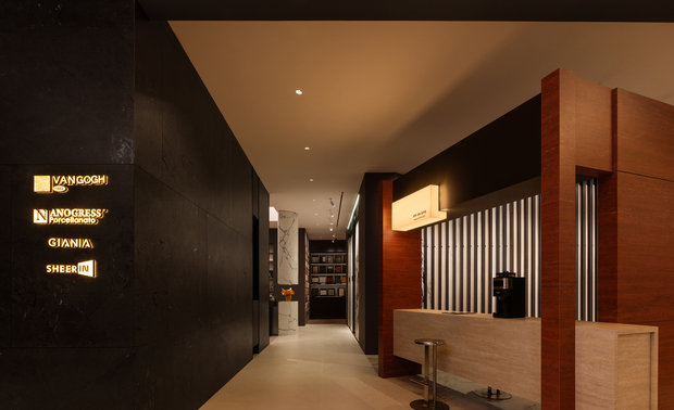 墙面、顶面采用火山泥(艺术漆)整体一色