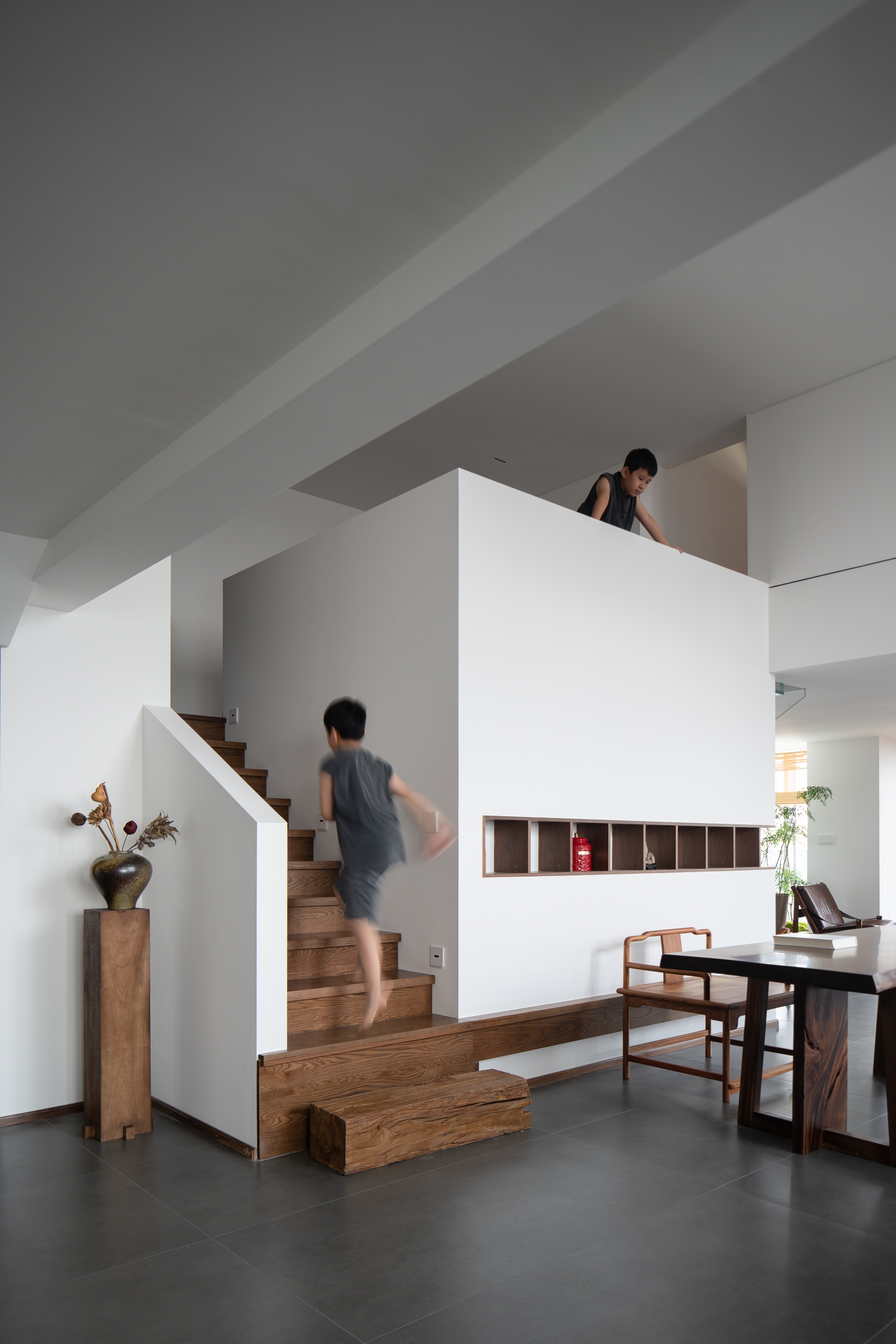 以楼梯为介转换到各个空间,空间结构的体块层次一一体现。