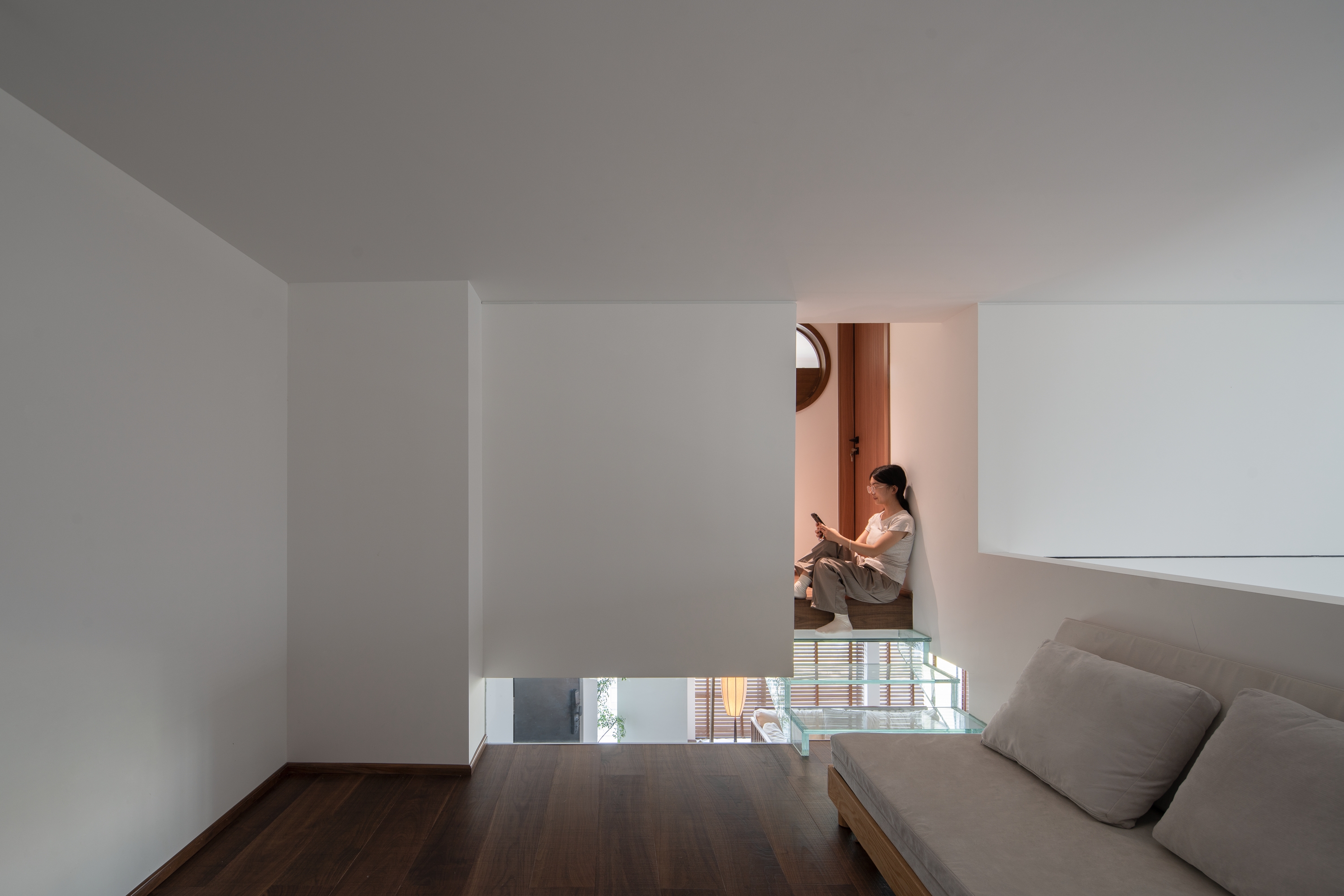 踏上阁楼的台阶做延伸与背景一体