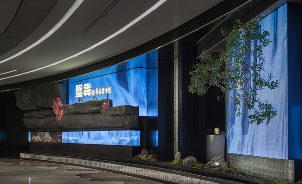 空间意境:踏入这片独特的空间,首先映入眼帘的是高达九米的垂直瀑布,它如同天然而生的壮观画幕,以磅礴之势震撼着每一位来访者的心灵,水元素被赋予了灵动与变化的多重寓意,这瀑布便成为自然力量的最佳诠释者,将其动态之美发挥得淋漓尽致。