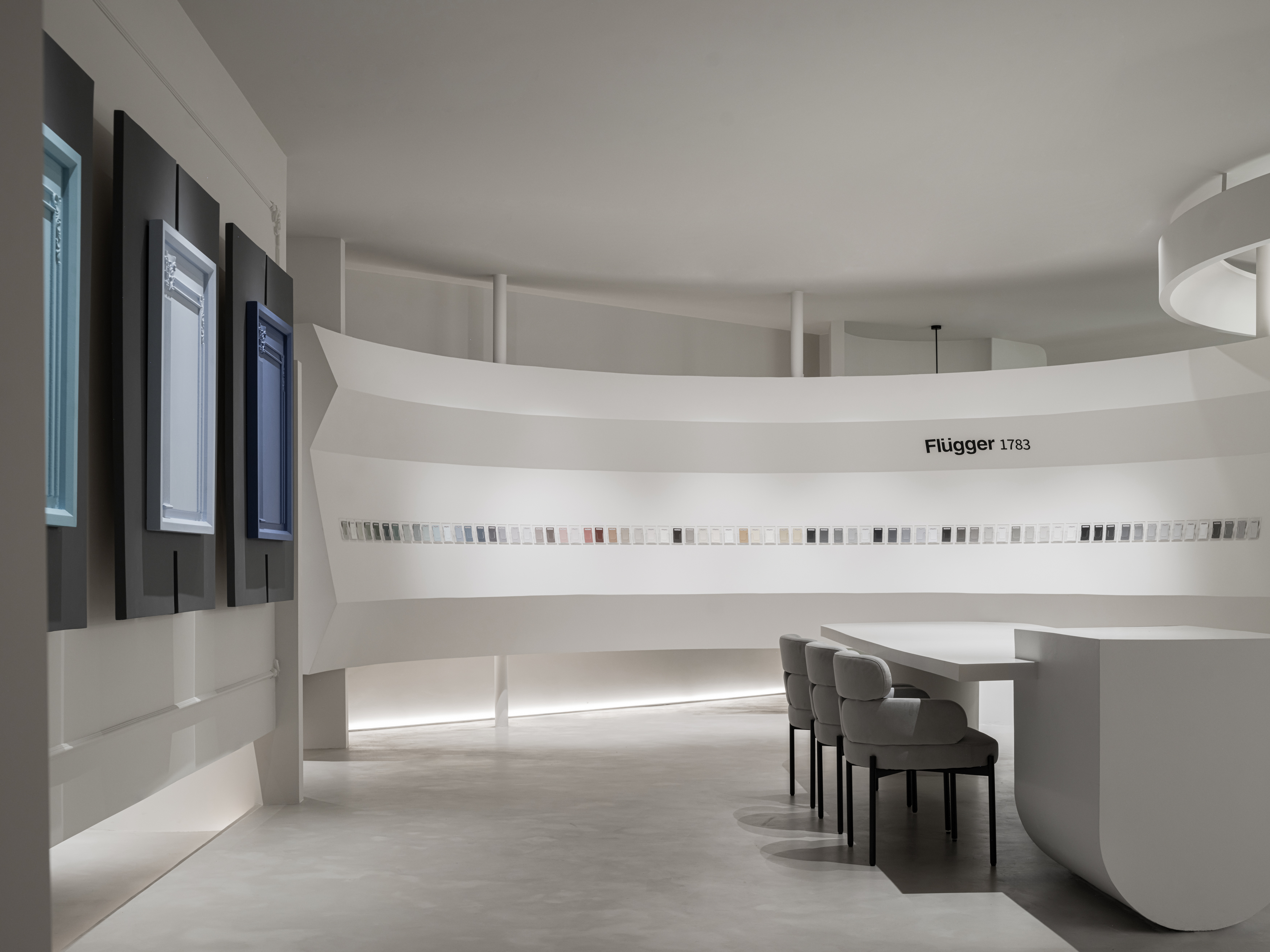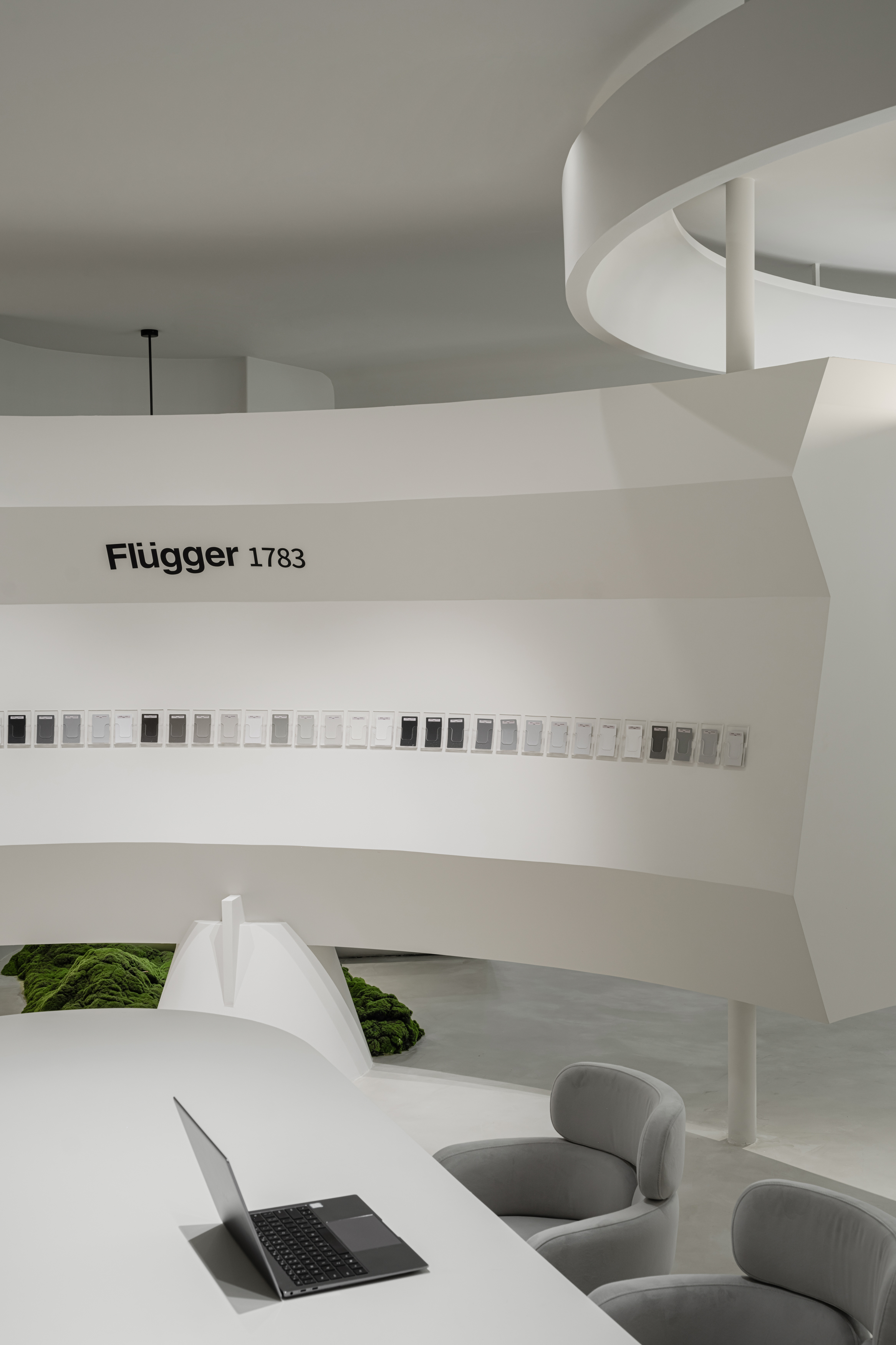 项目定位:该项目定位为高端现代展示空间,旨在通过简洁流畅的设计语言与创新材质的运用,打造一个兼具未来感与自然元素的沉浸式空间。整个设计从简约美学出发,结合品牌理念,营造出一个既适合产品展示,又能提升品牌形象的场所。通过精心的空间策划,项目展现了品牌高品质与科技感的调性,满足了高端用户对设计和体验的双重需求。