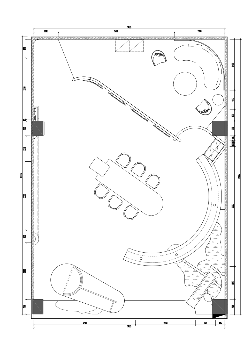 空间布局:项目在空间布局上注重开放性与互动性。整体布局采用了开放式设计,使得动线流畅,空间各区域之间的过渡自然且连贯。展示区域与休闲区域巧妙结合,既保证了展示效果,又提供了休憩和互动的空间。圆形与弧形的布局不仅优化了空间的使用效率,还使参观者的行进路径更加自然。环形展区的设计进一步增加了空间的纵深感,打破了传统展示空间的平面化格局。