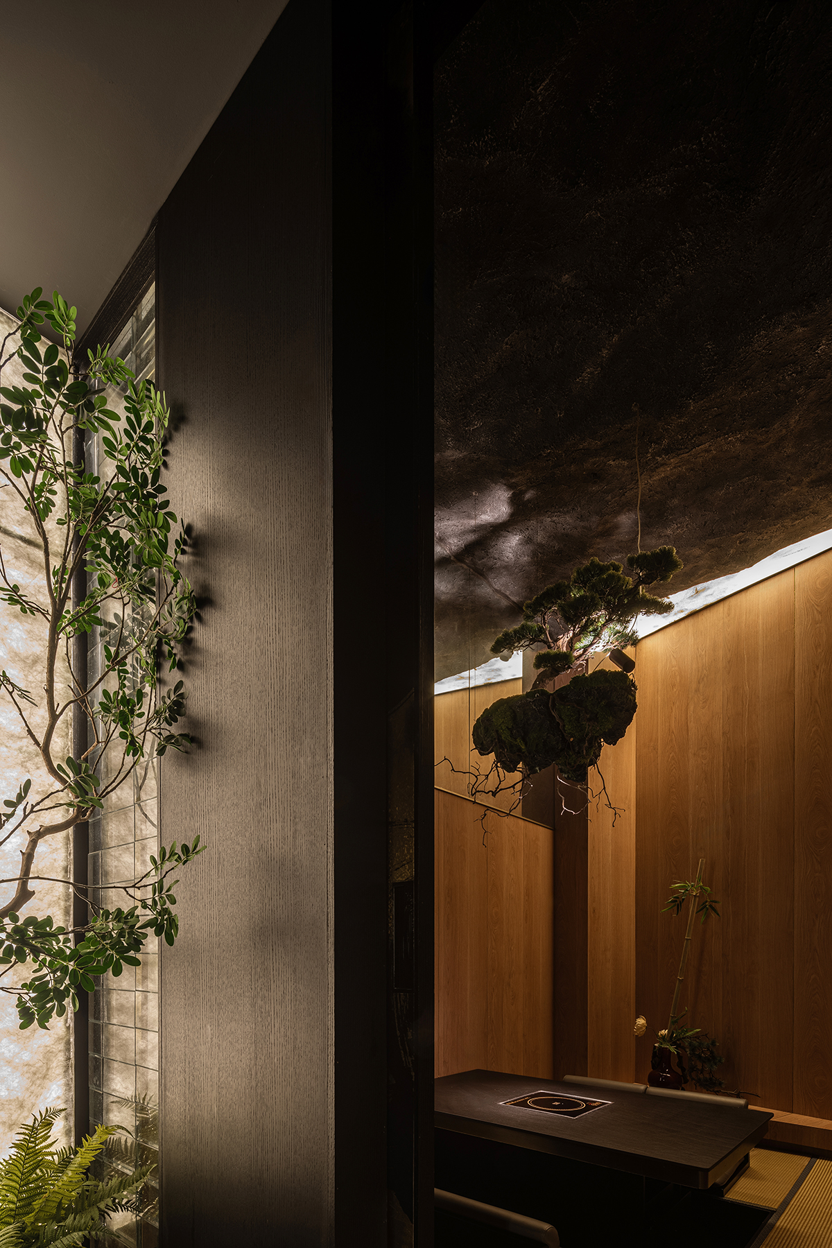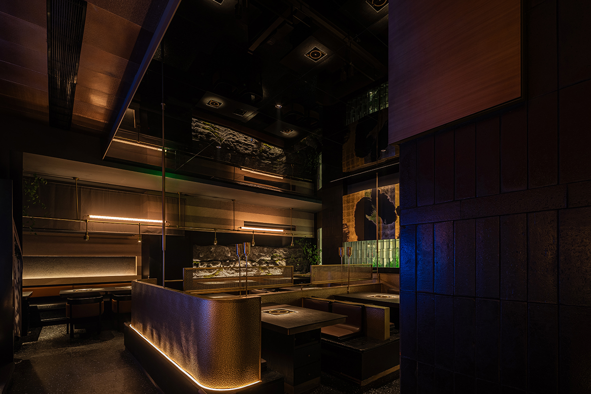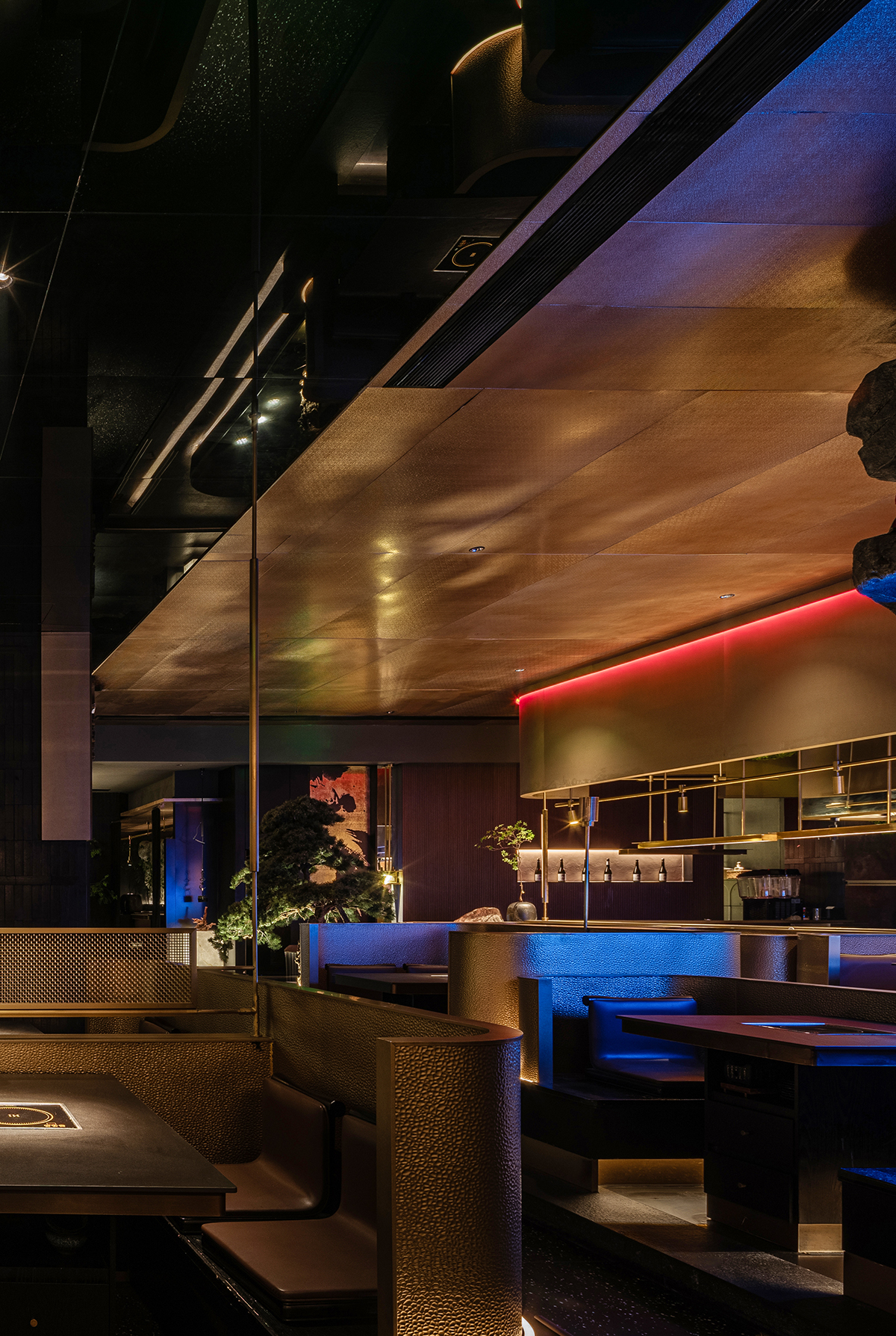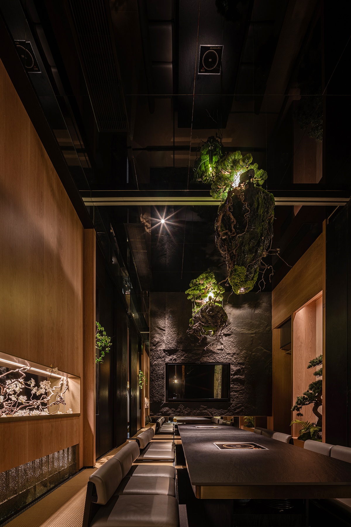 空间意境:当代人对日式文化的理解,不应仅仅停留在表面的元素堆砌与符号挪用,而应深入其精神内核,将其与当下的生活方式和艺术审美相融合。他将日料匠心独运的食材与工艺融入设计之中,创新地表达了传统枯山水的现代韵味,营造出一种禅意唯美、气韵生动的空间氛围。同时,他又巧妙地将酒吧西餐的无拘无束融入其中,使空间更加多元化与包容