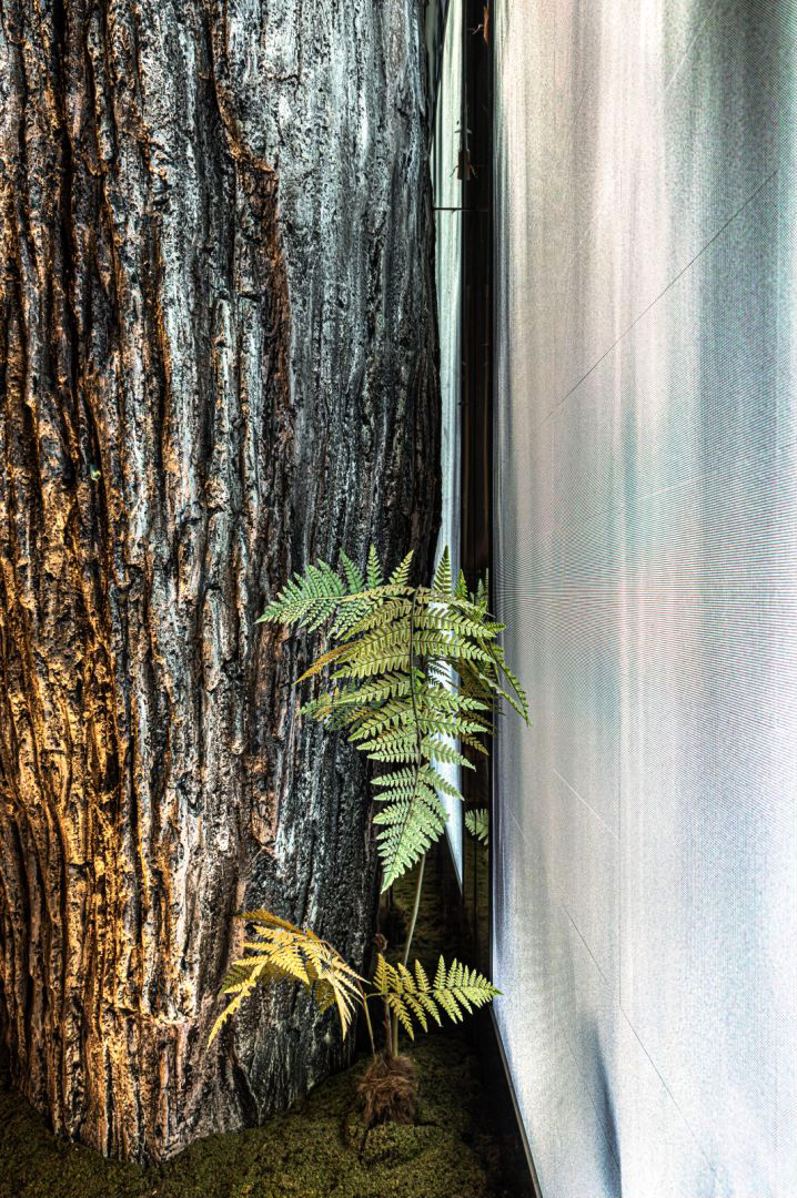 设计选材:通过不同材质与纹理的对比,空间在视觉美感与文化内涵上达到了完美的平衡。木质的温暖、金属的冷峻、石质的厚重与绿植的生机,共同构成了这个空间的四大元素。以石为点缀,空间呈现出自然的肌理与层次感;以绿植为伴,即低碳环保又使人们仿佛置身于人间仙境般的桃花源。