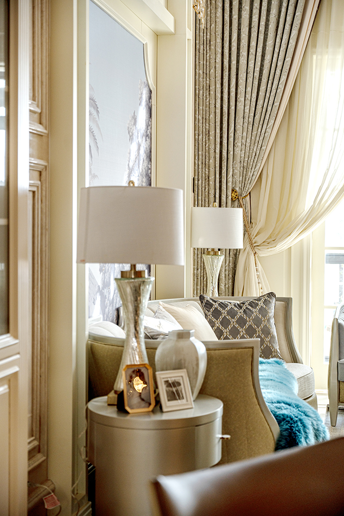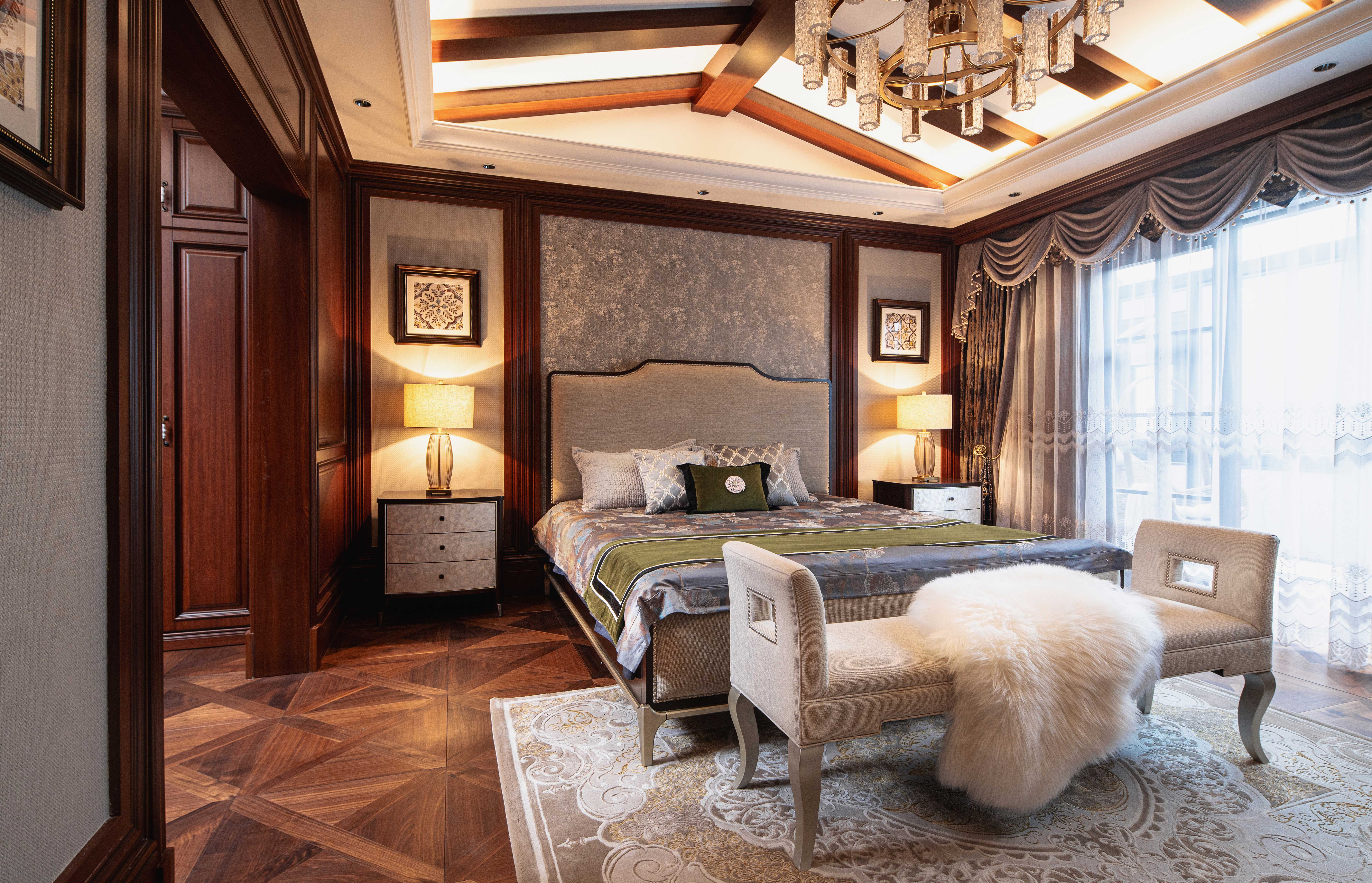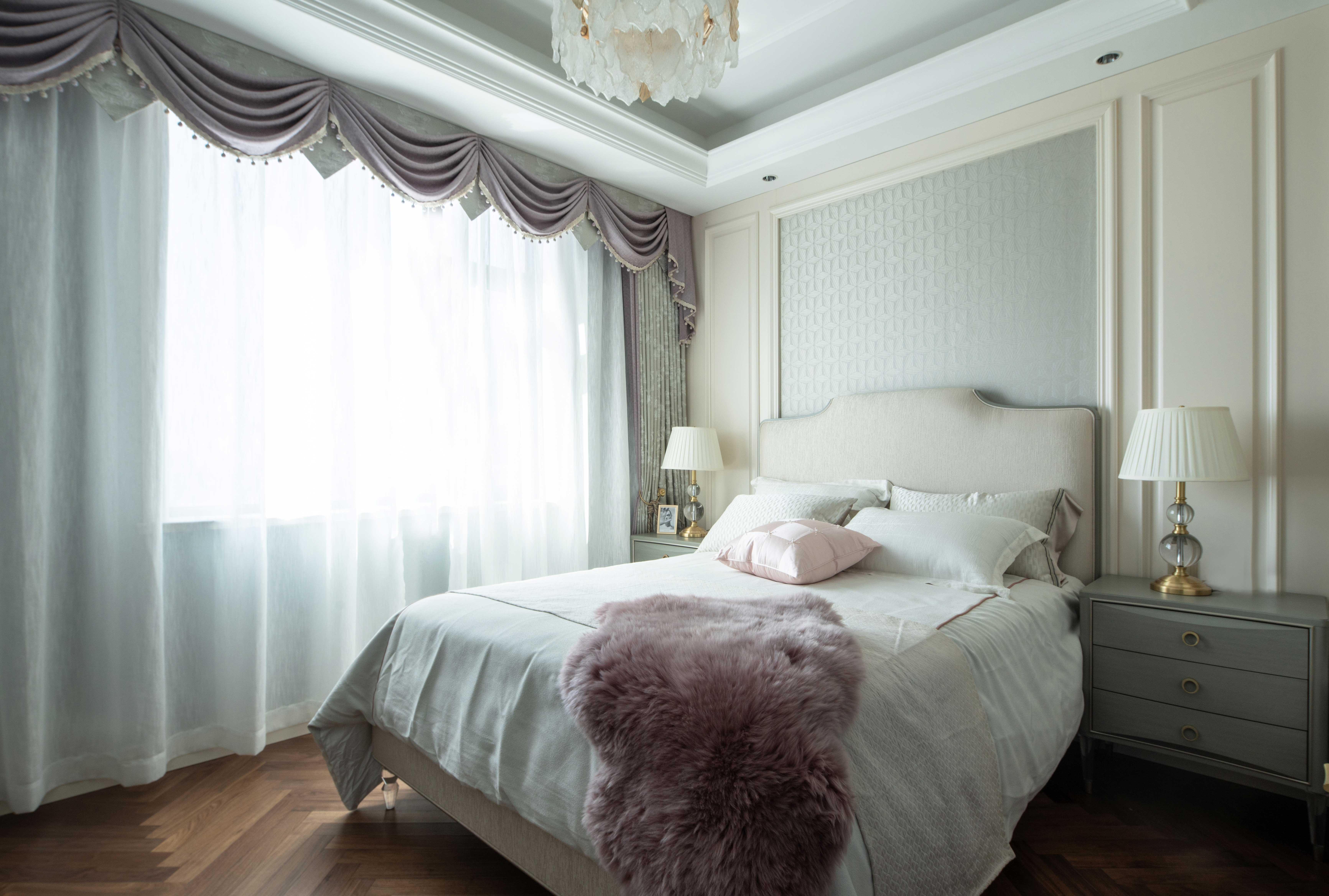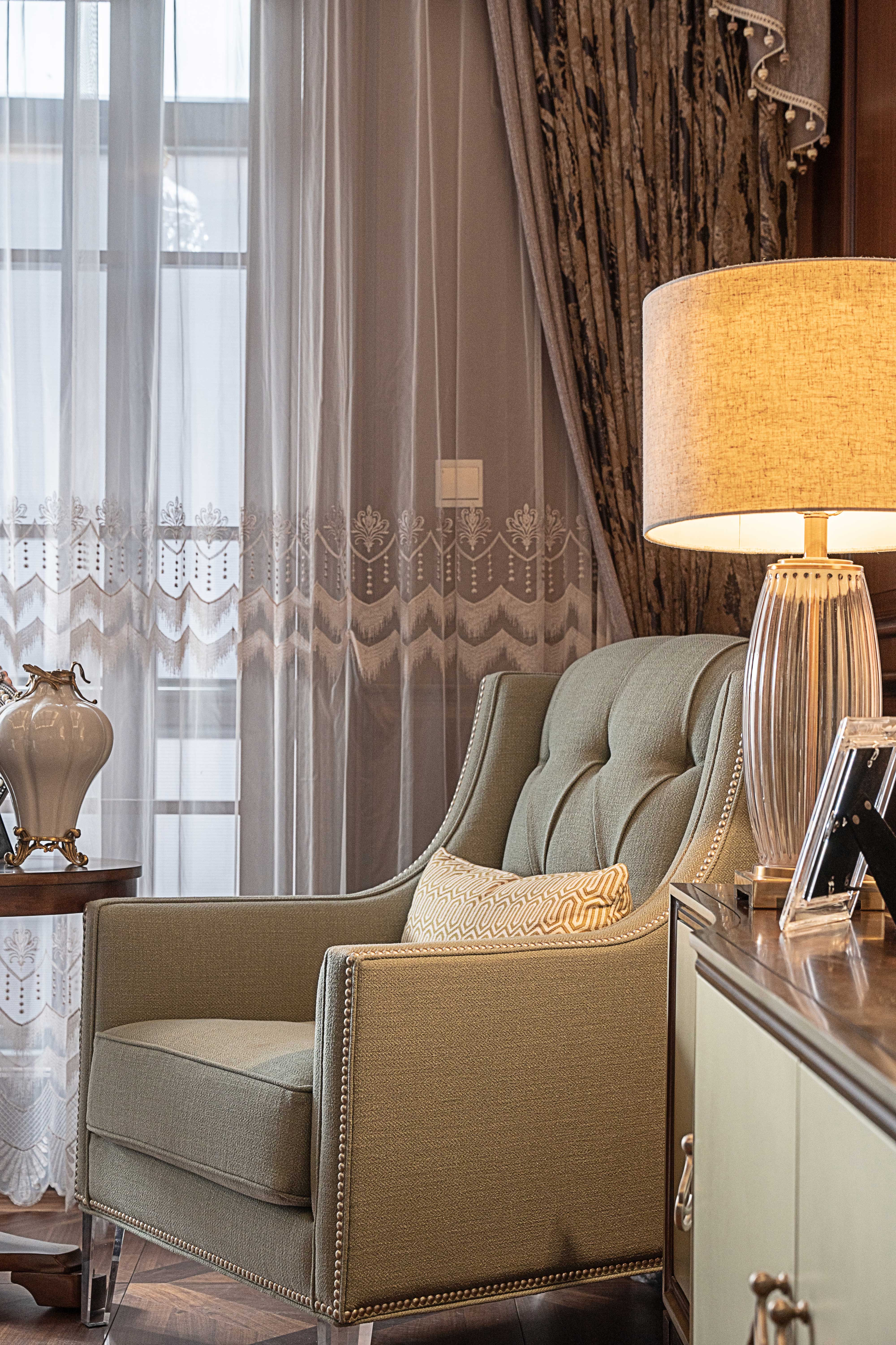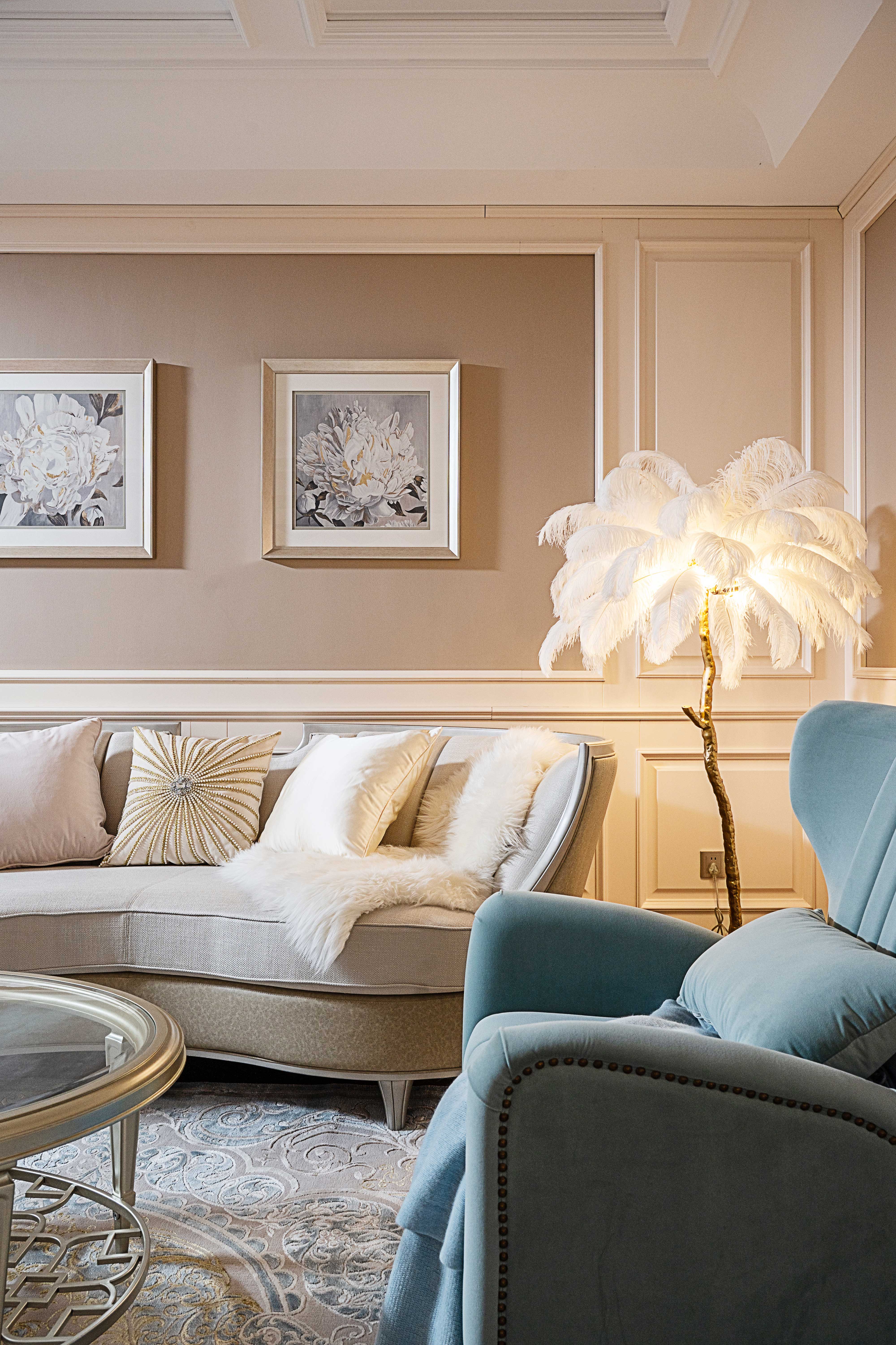 空间意境:本案例以简约美式为主体风格,家具选择偏法式一点,整个的软装选择的细节中植入了些贝壳,海螺等元素,简约中不失温暖,精致中见温馨。