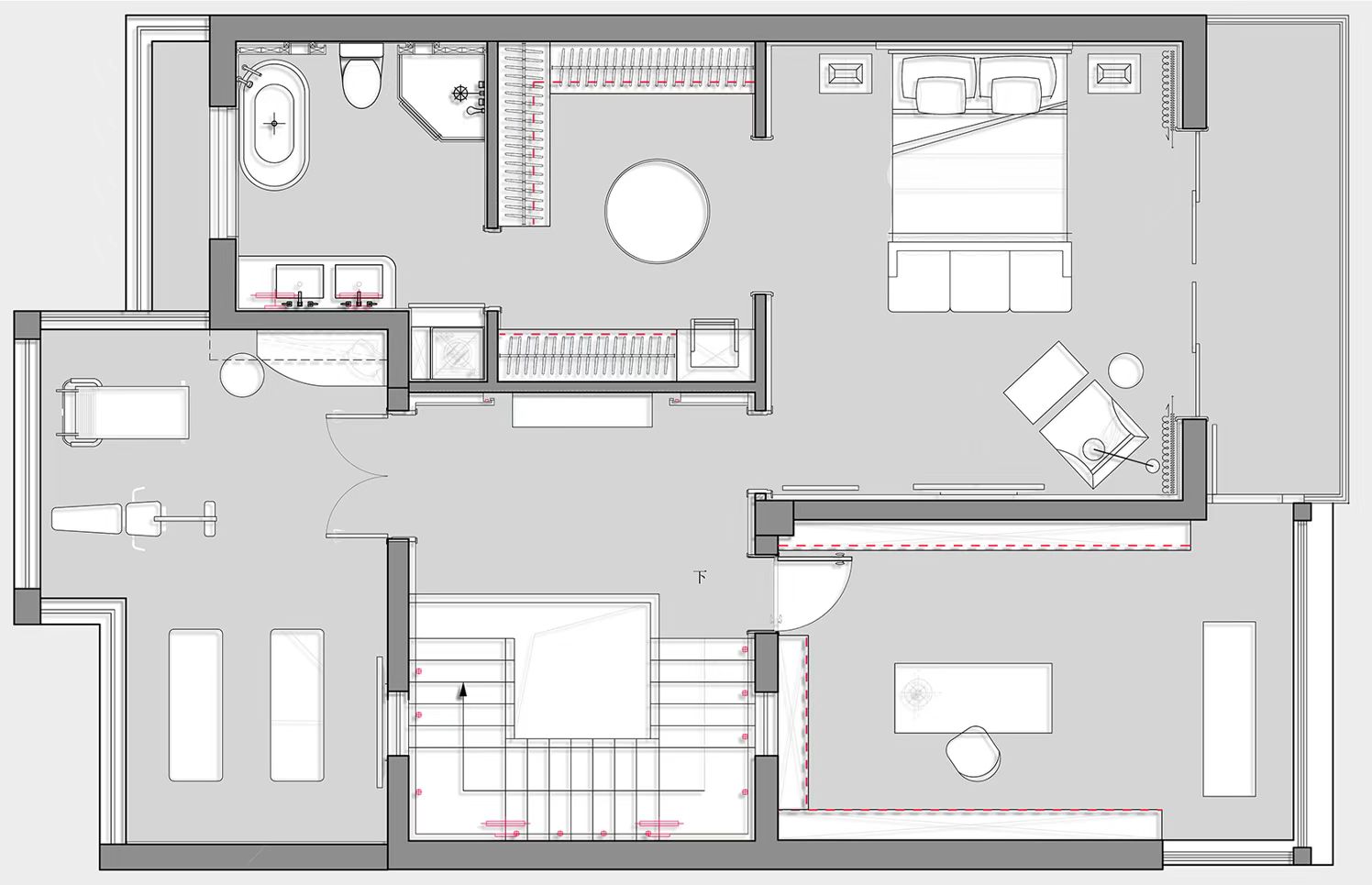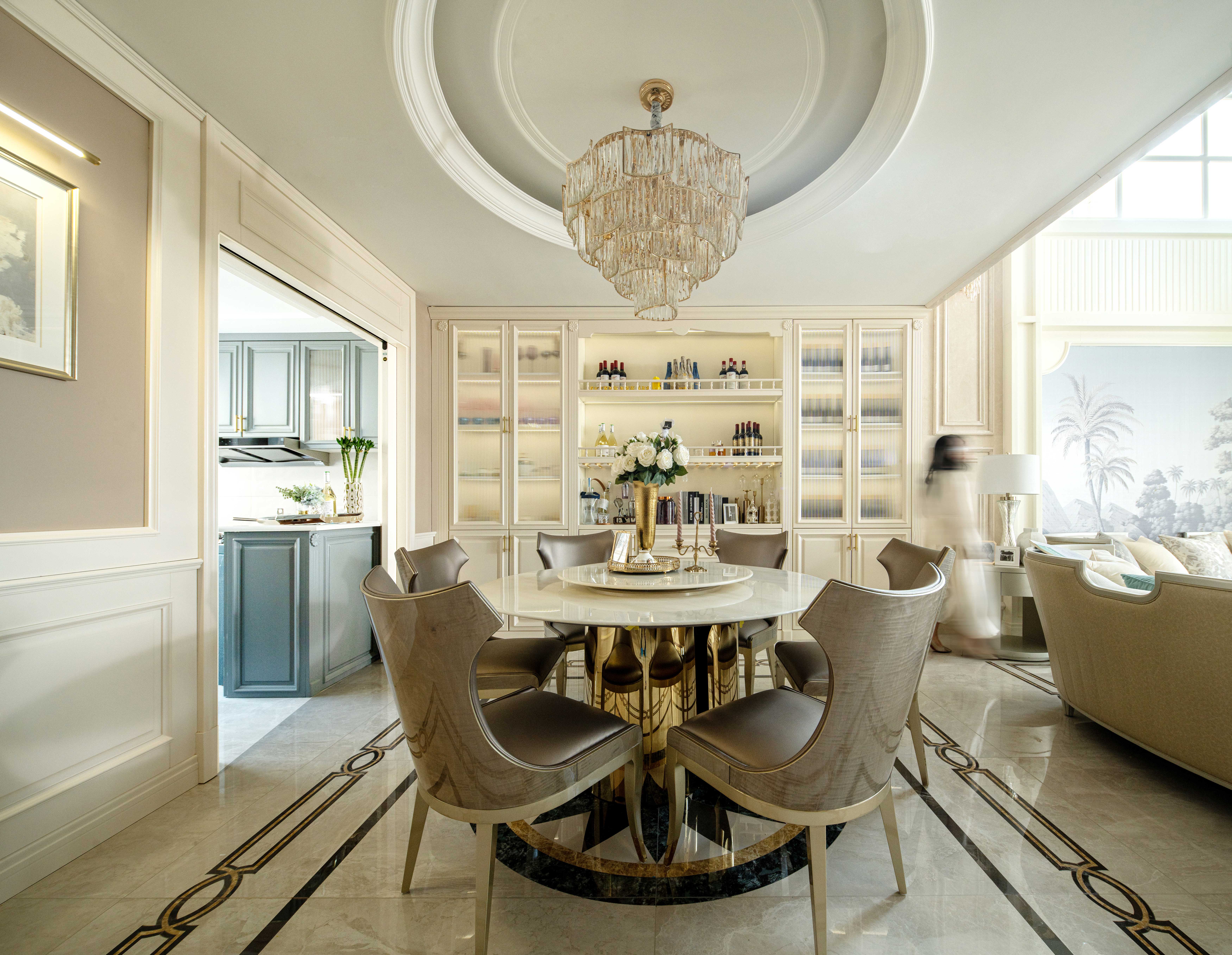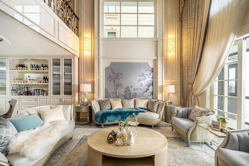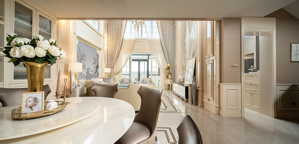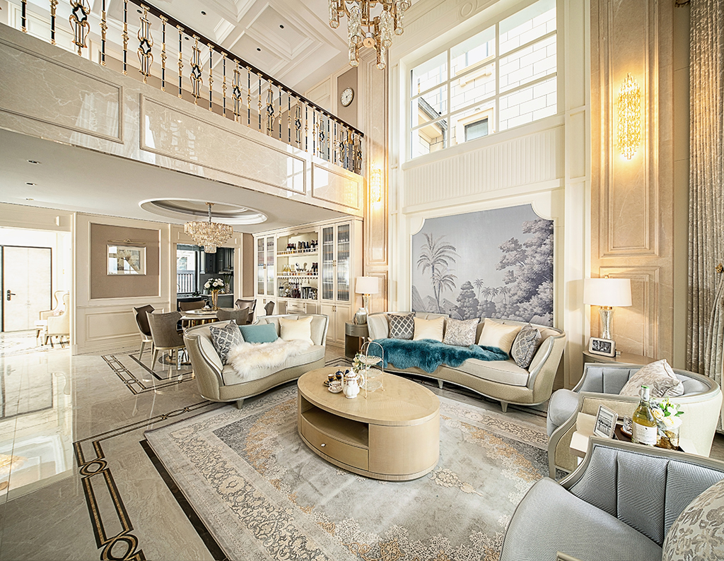 设计选材:将浅色定为别墅主要的旋律,带有干净高级纹理的大理石,诉说着优雅轻奢,温暖的灯光冲淡了大理石所带来的刚毅气息,增添了家的温馨,静谧的简美主义,让人惬意又放松。