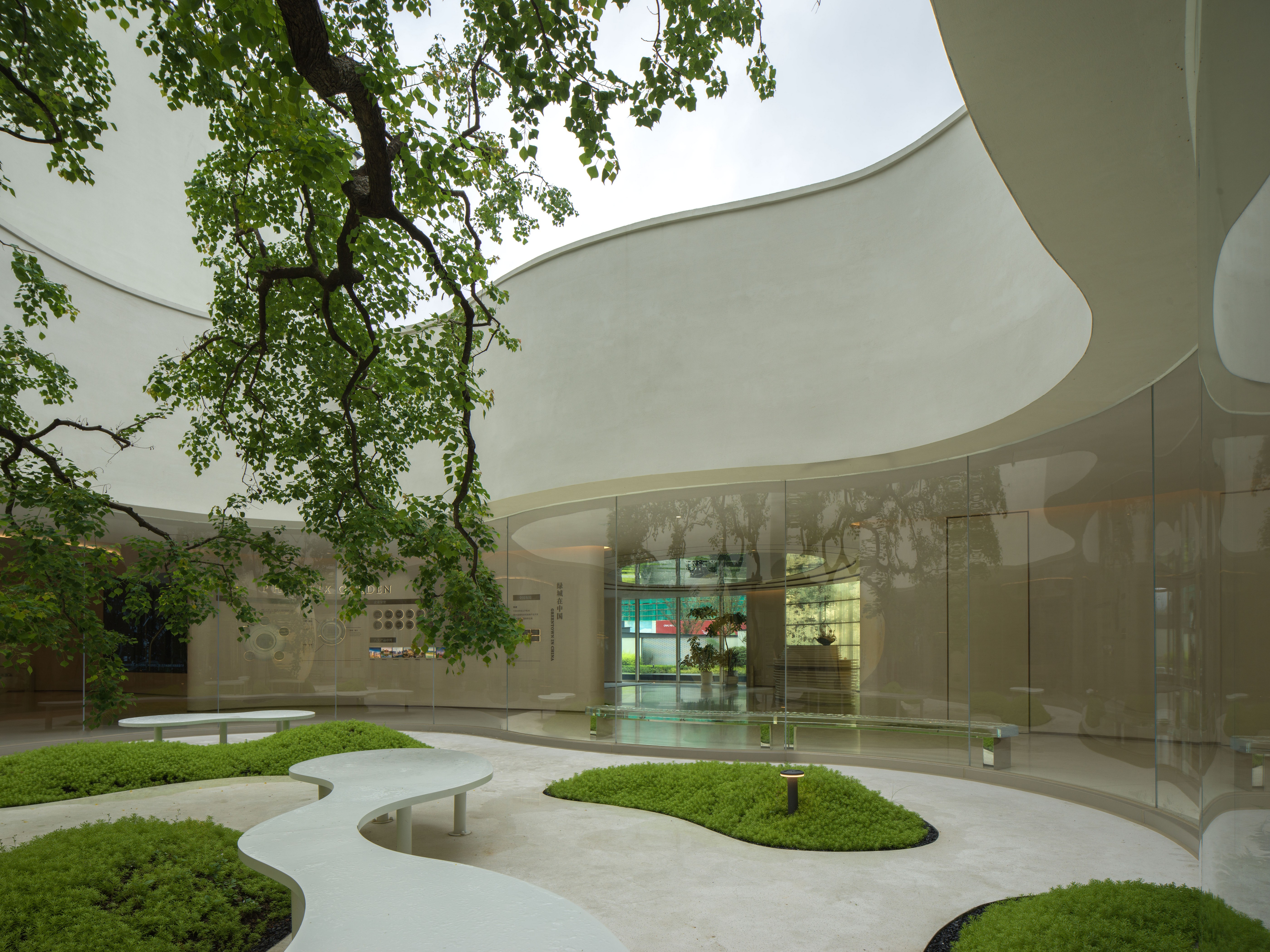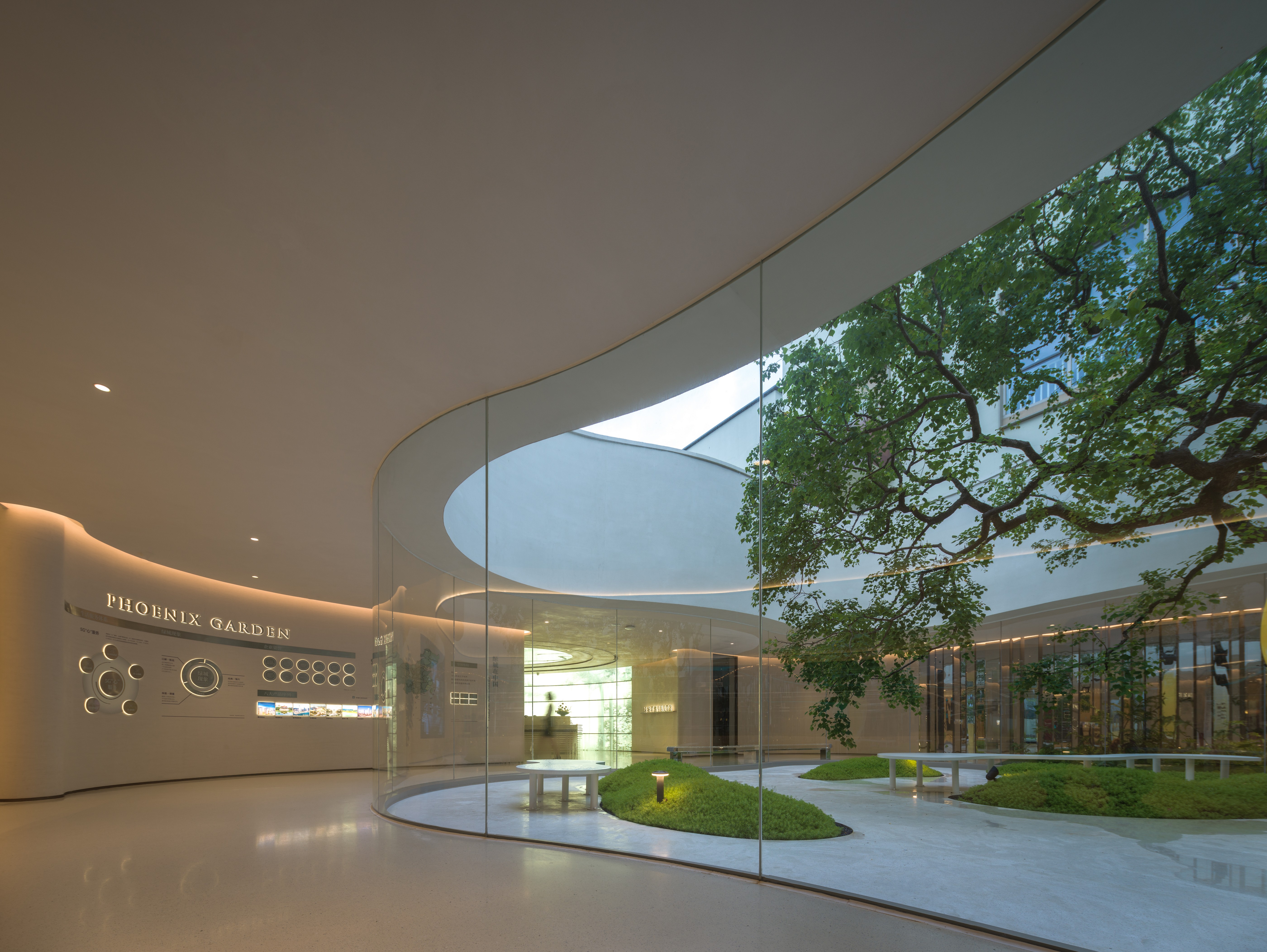 空间布局:模糊室内外的边界,围绕景观中庭展开空间布局