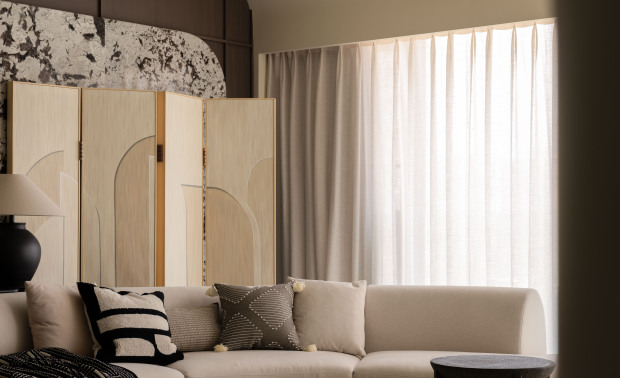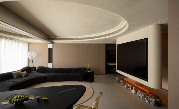 项目定位:打造舒适好看实用的大空间,以弧形的线条贯穿整个空间,为一家三口生活中增添艺术气息