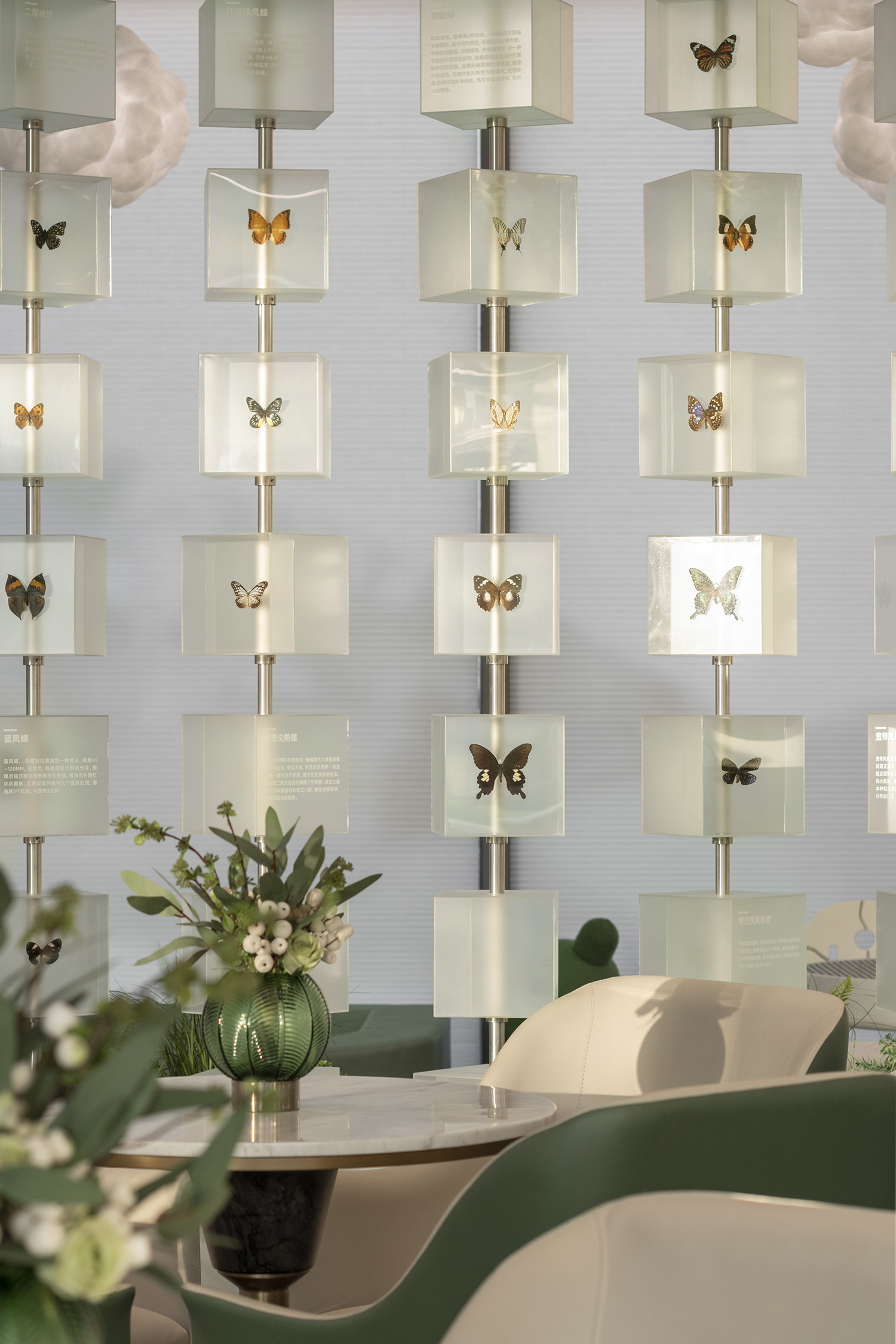 用自然界中蝴蝶的标本作为隔断,也体现了“自然物语”,海之森自然亲生态的主题与语汇