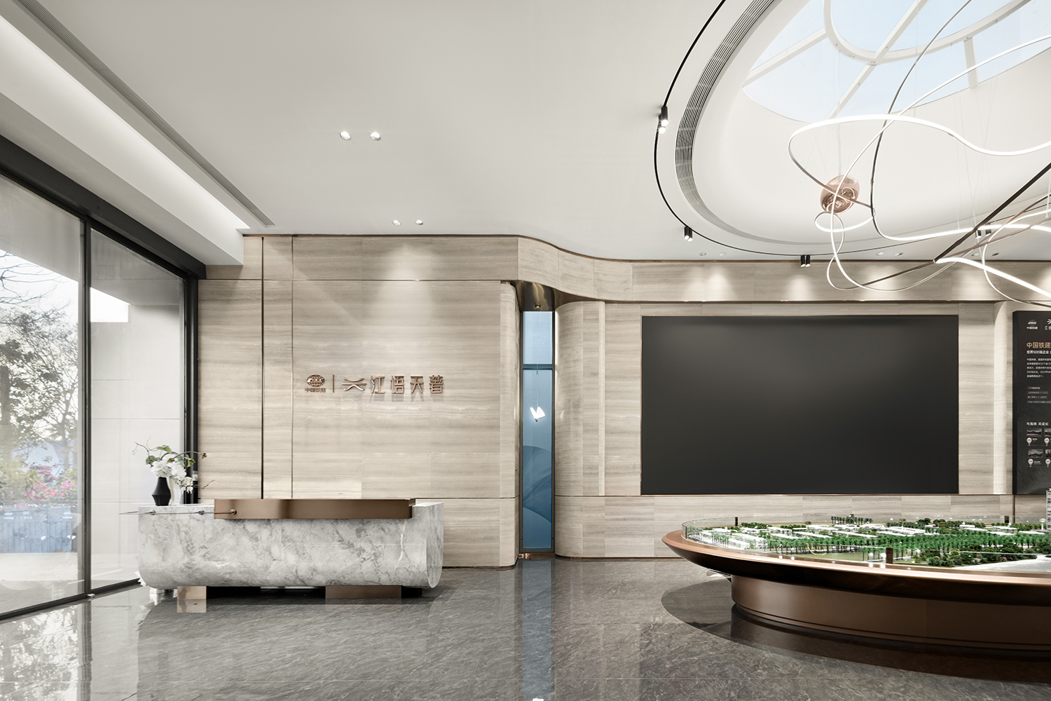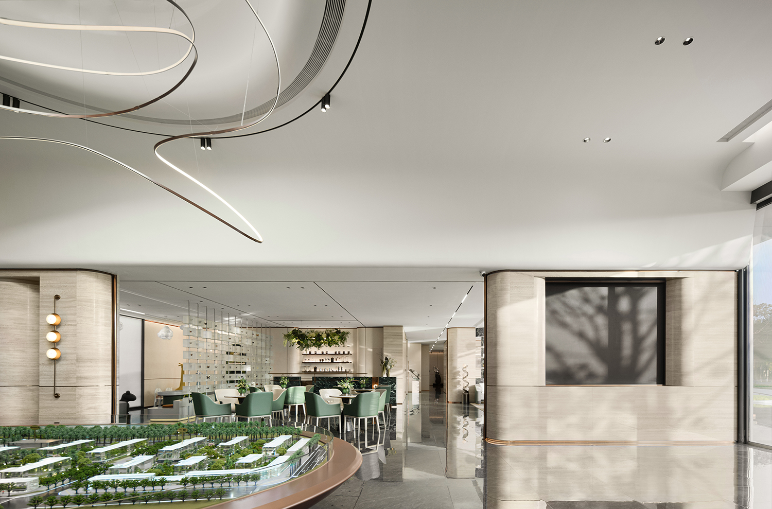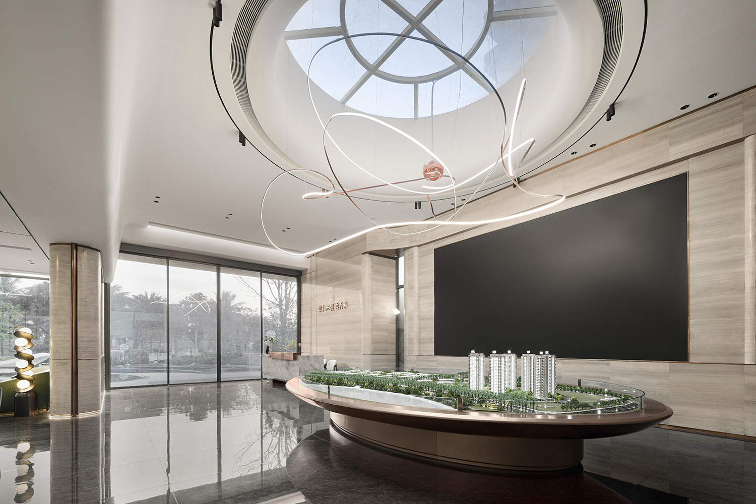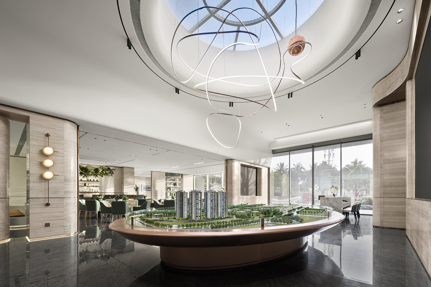 设计灵感源自亲自然的设计源泉,量身定制的沙盘圆形天井,空间编织着大自然韵律与生态和谐的动人篇章。
