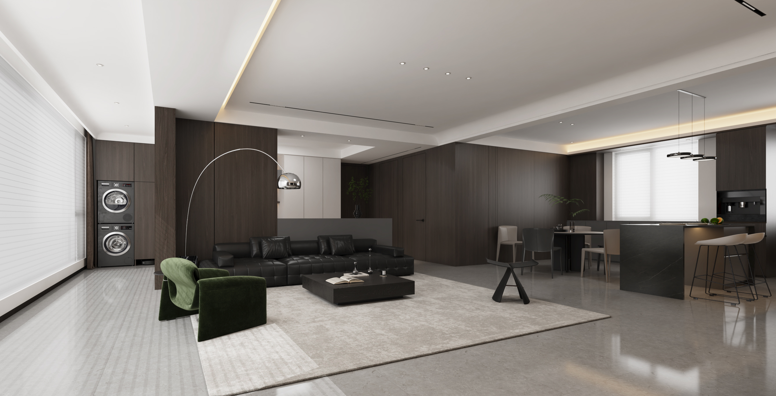 客餐厅拉通阳台,自然光色被轻易地引入内部,沐浴在午后柔和的阳光与风中,谈天小酌,好不惬意。