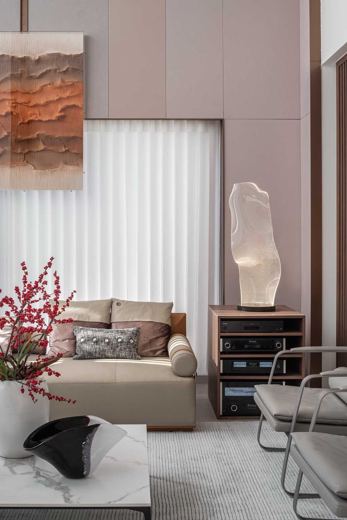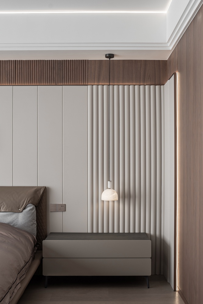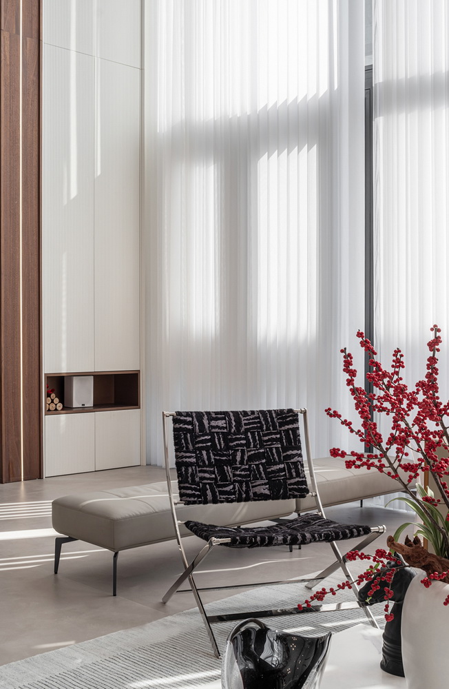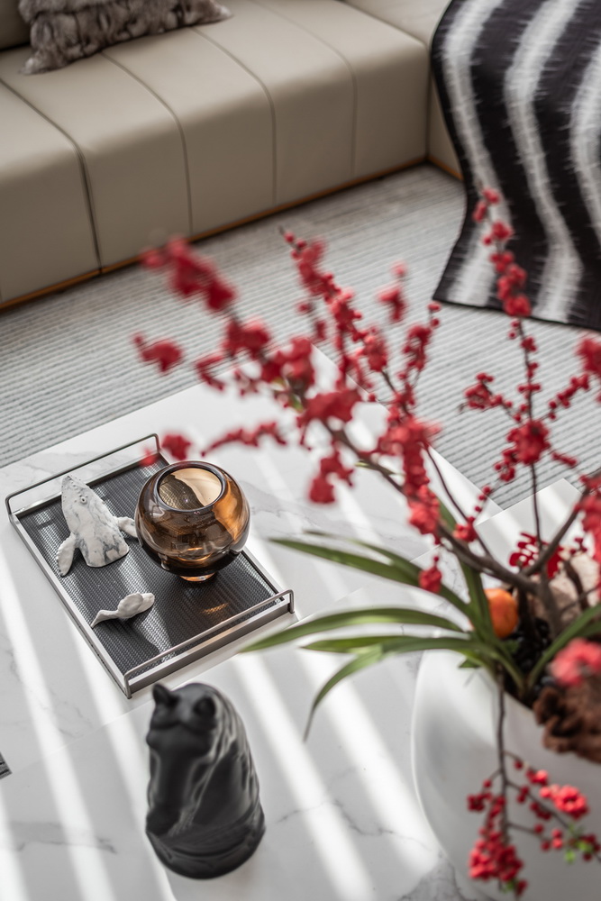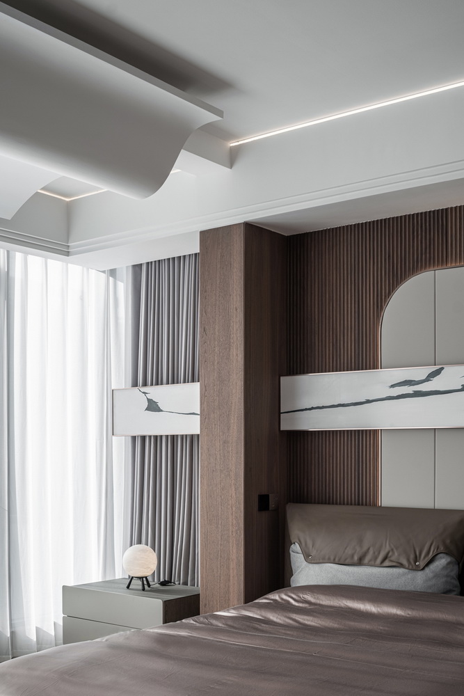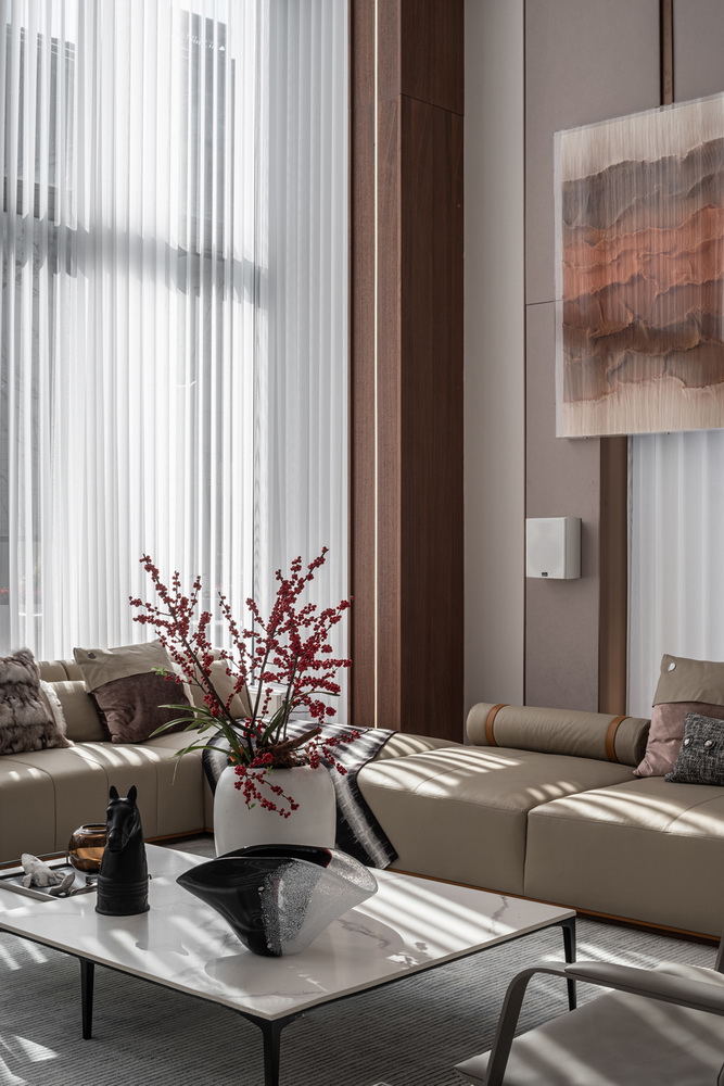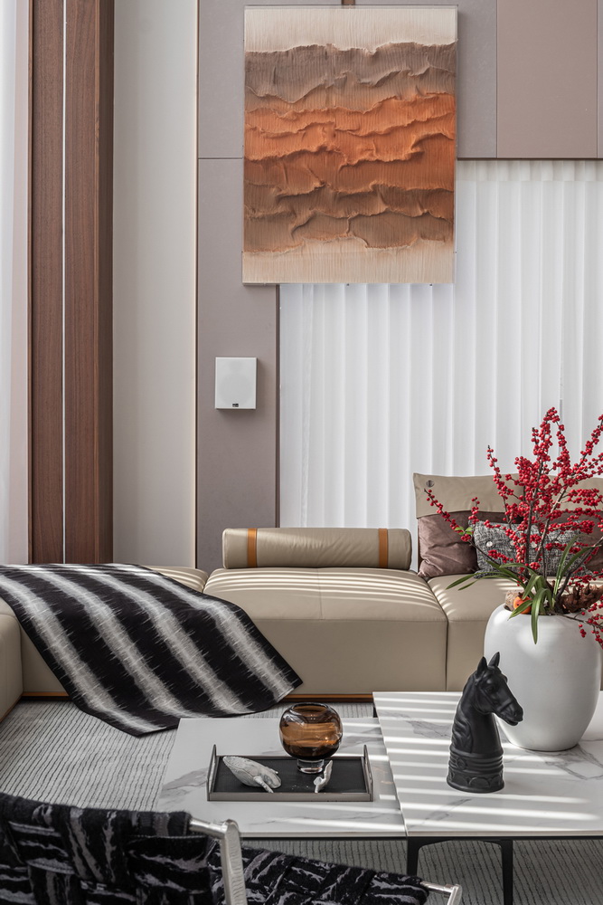 设计选材:地处雪浪山下,长广溪边;捕捉地域文化特质,提炼山、水设计元素,呈现内空间与外景观相关联,内外呼应的现代写意空间--现代轻奢风格
