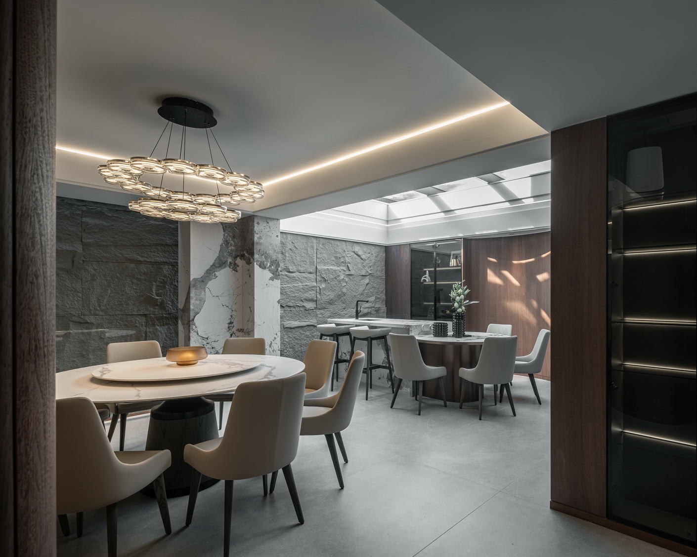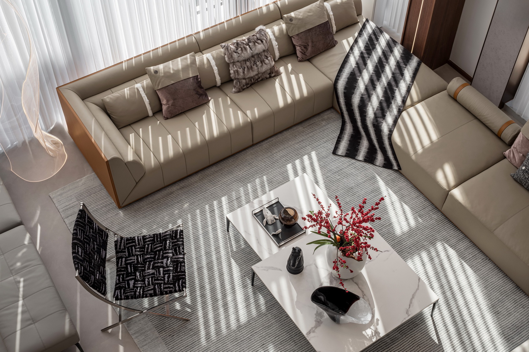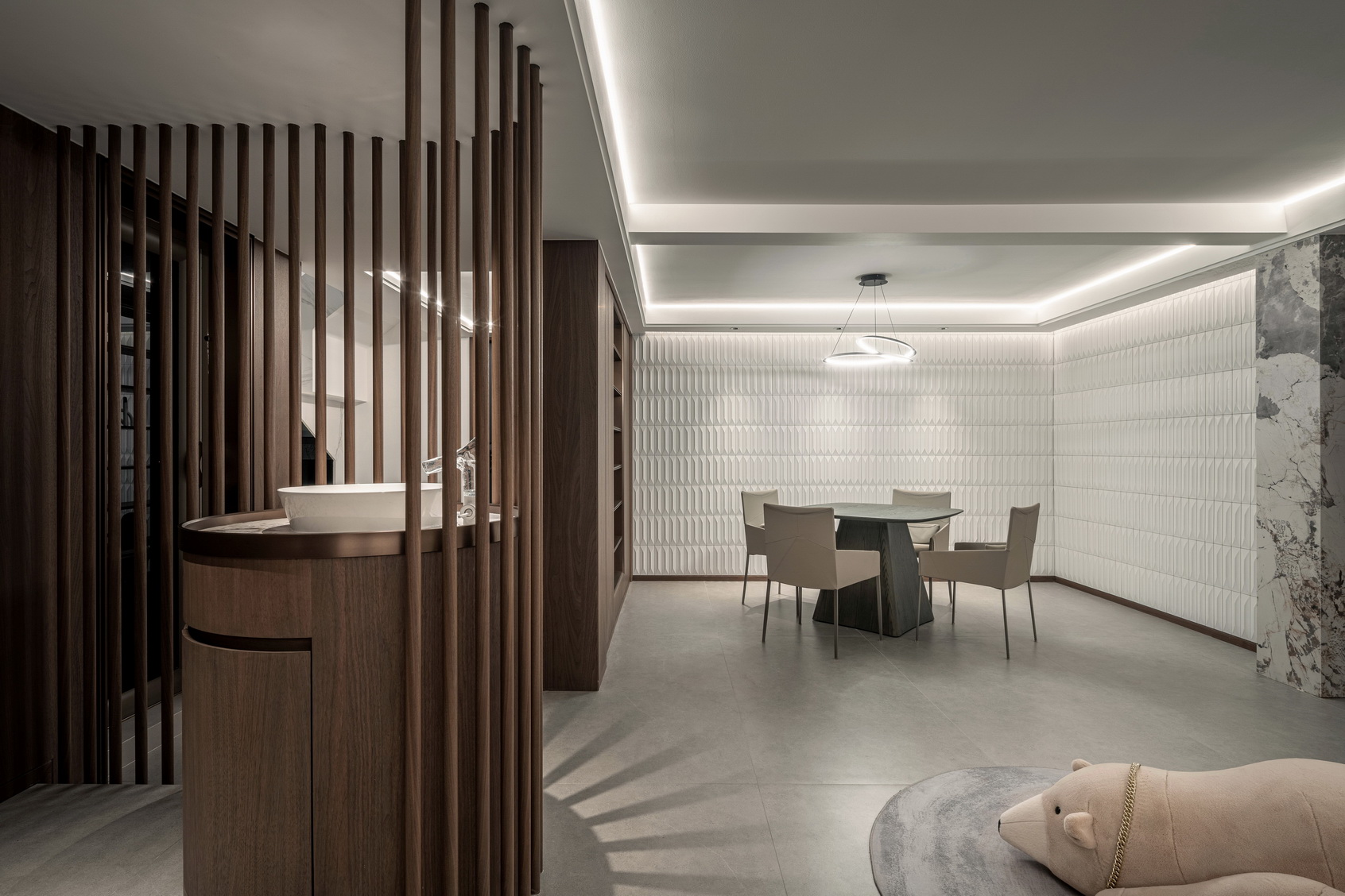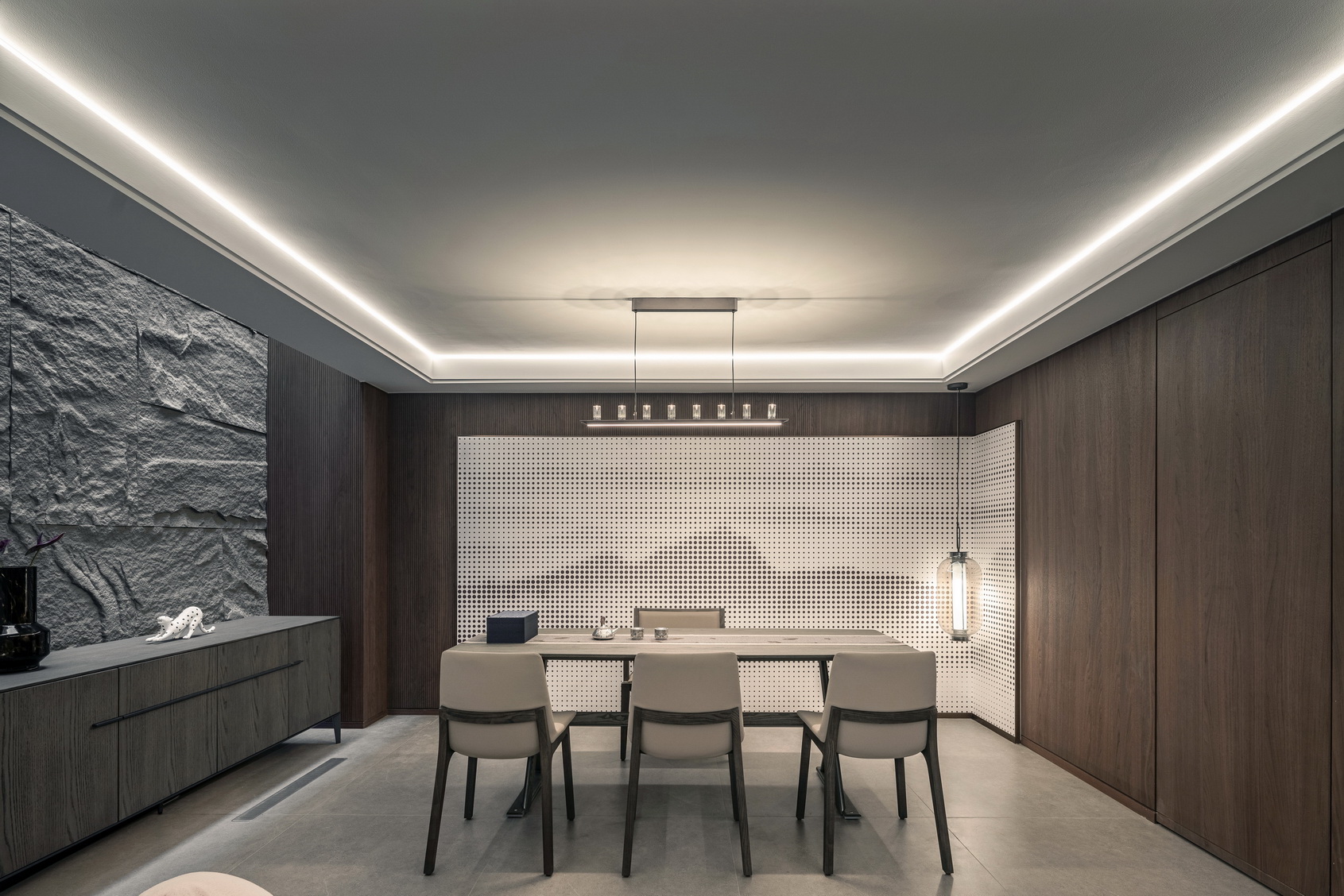 设计选材:地处雪浪山下,长广溪边;捕捉地域文化特质,提炼山、水设计元素,呈现内空间与外景观相关联,内外呼应的现代写意空间--现代轻奢风格