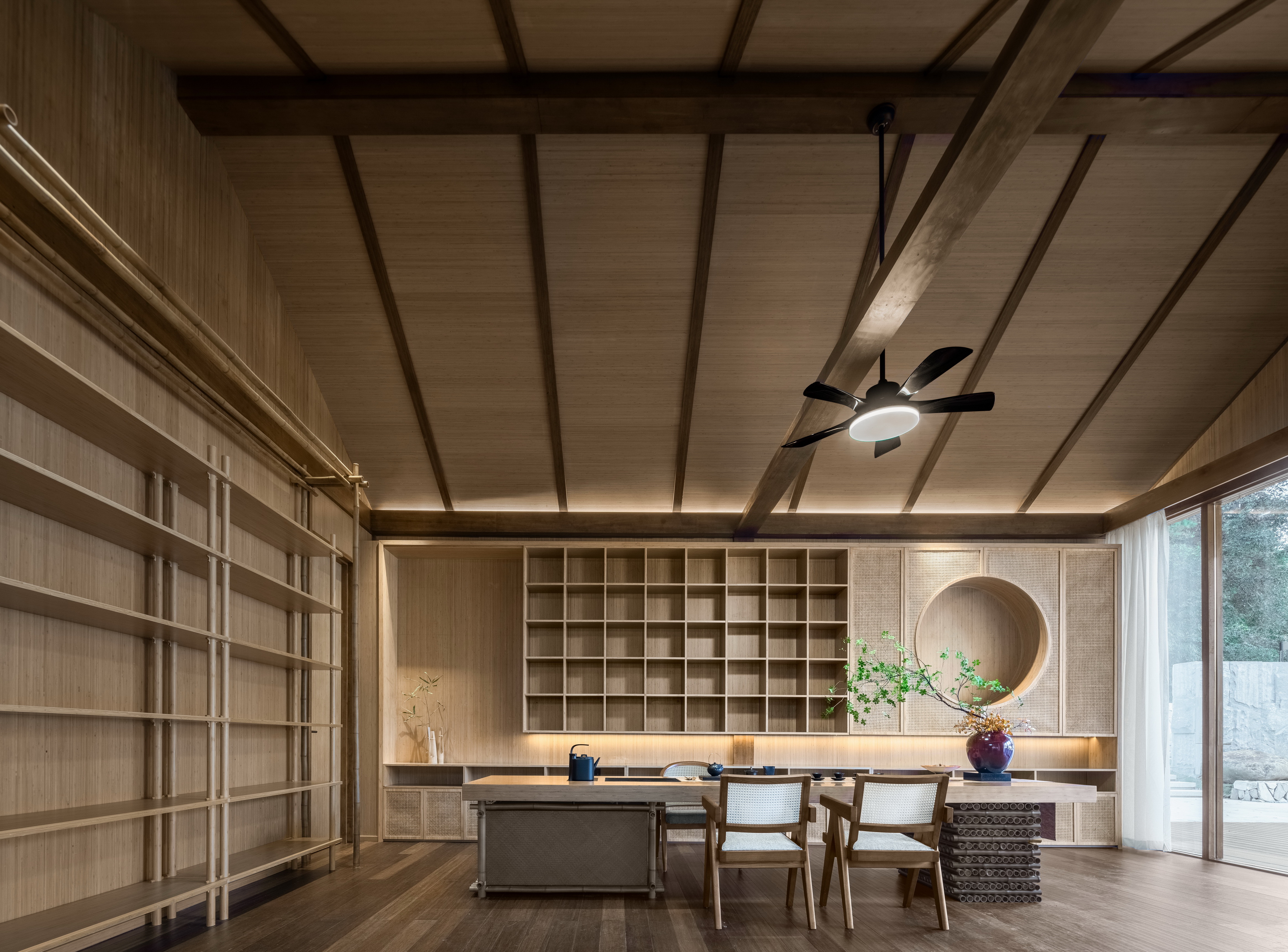 零碳可持续-设计材料:在材料的处理上,我们提取了森林中“竹”“木”“石”的元素,汇编成属于这片土地的设计语言,串联不同的功能业态,营造具有记忆感和生态性的空间体验。自然石材景墙,感官层面营造质朴且神秘的建筑形象。黑山石点景做呼应,让空间更显灵动。自然石材贴面,借鉴了大地文化的语言,让建筑生长在土地之外,又沉浸在土地之中。室内家具用“拙”的手法,以“竹”的元素做了大量原创,生态的家具给人以温润感、通透感、归属感。