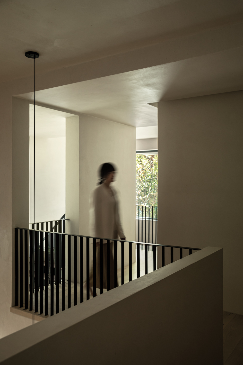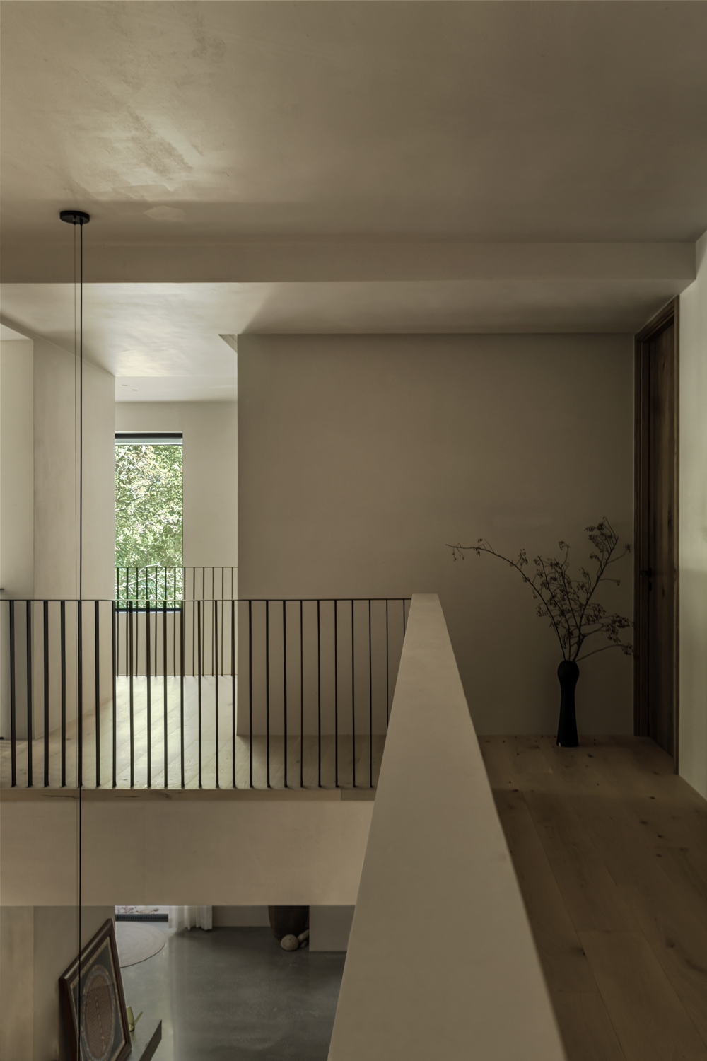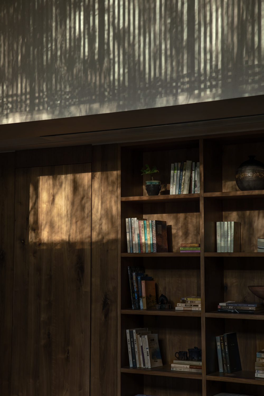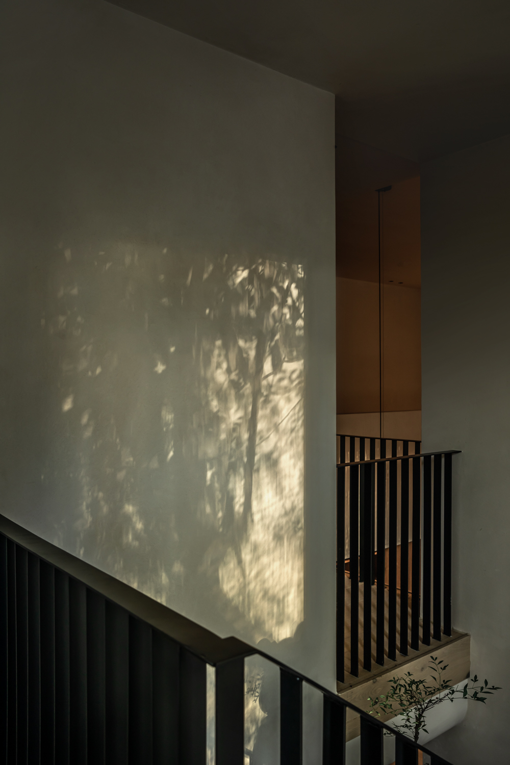 设计自“点亮空间”概念入手,围绕北向的大面窗台布局,位移楼梯至花园入户处,通过小窗的组合带来多向的光照,形成明暗相交且神秘多变的空间属性。改变当下常见的铝合金玻璃窗的应用,转而模仿民国时期建筑的开窗形式,通过格栅刻意打破直入的风景,形成隐隐绰绰的透视感,屋外树木的影在阳光中如画,投像白墙,随时而移转,中式传统审美的隐约与现代居所结合,开阔的同时又有适当的遮掩,矛盾的碰撞中沉淀下随性而精致的底。 -