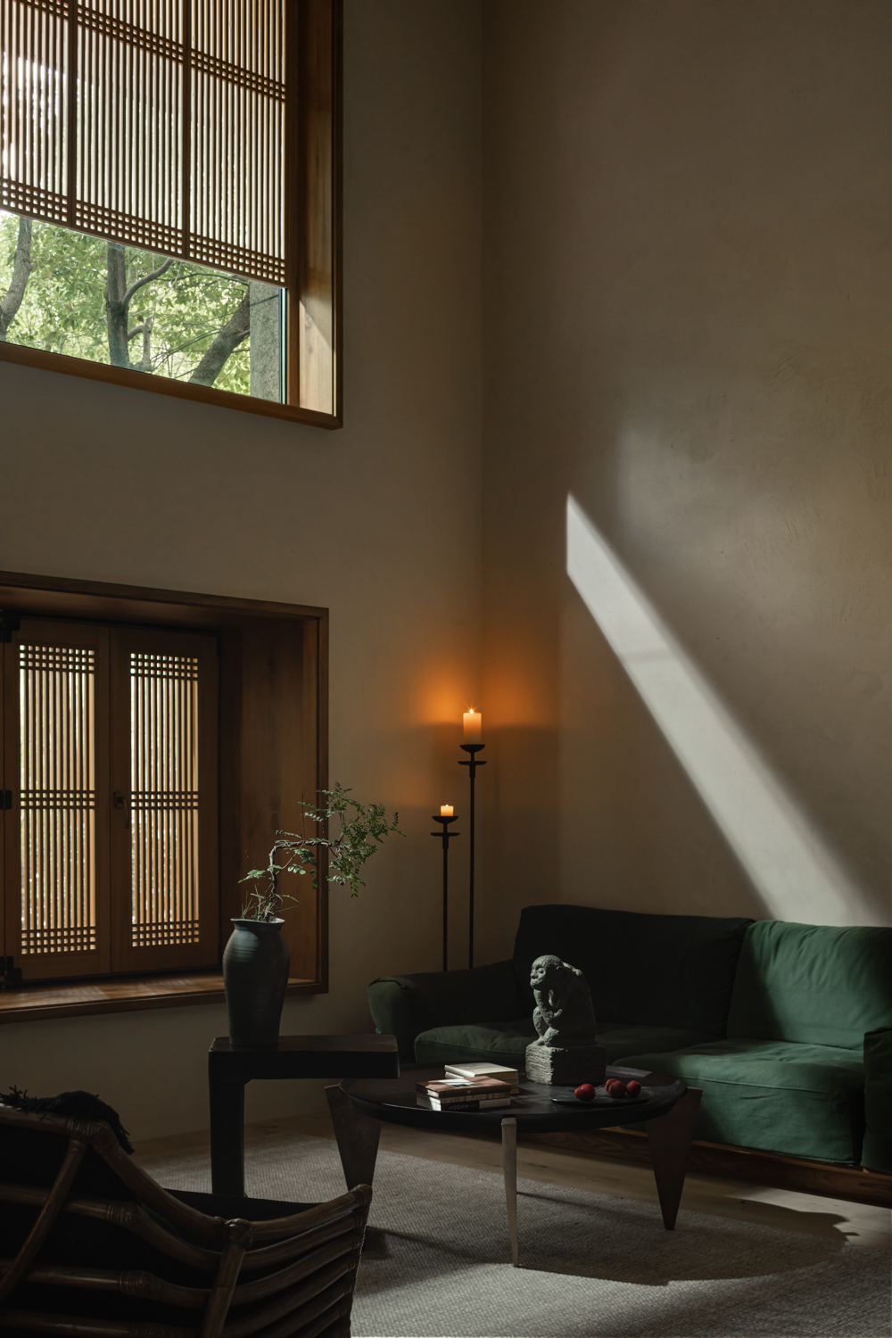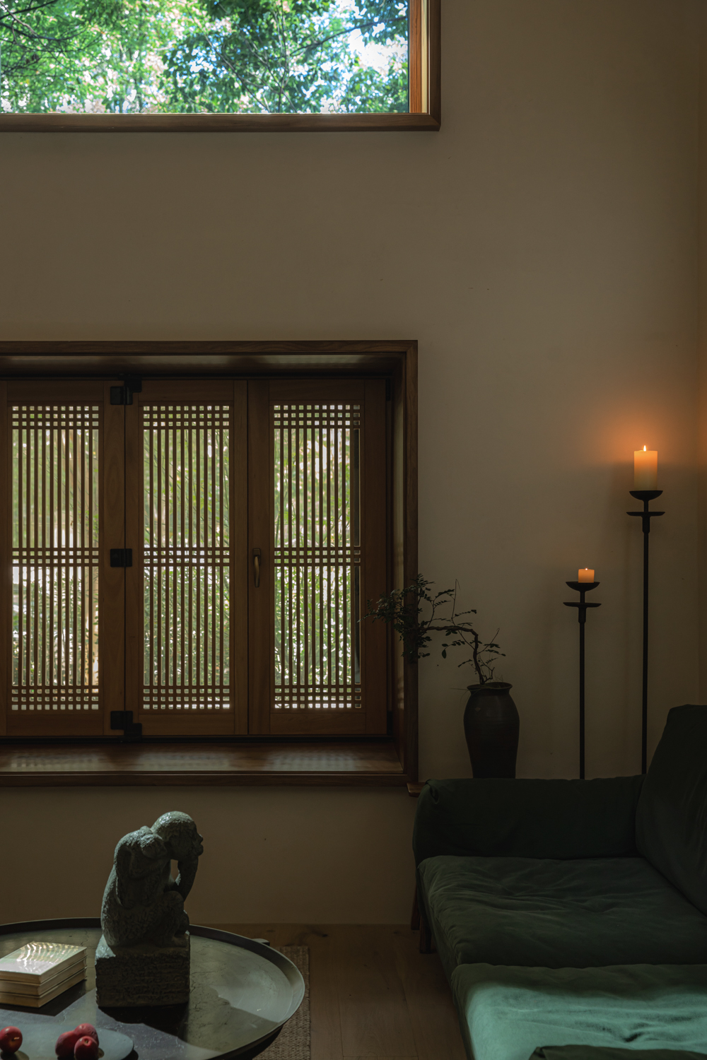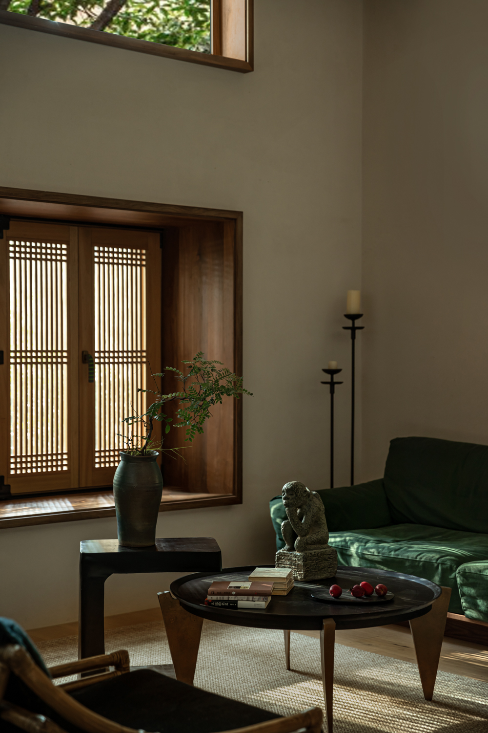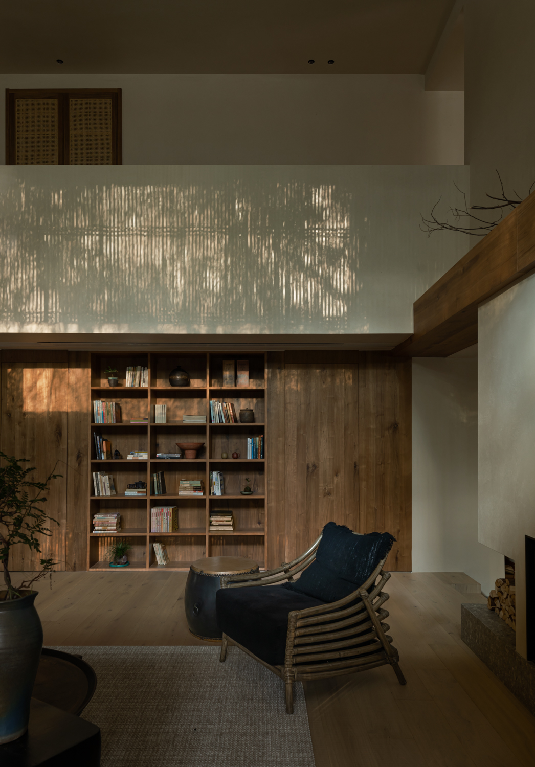 设计自“点亮空间”概念入手,围绕北向的大面窗台布局,位移楼梯至花园入户处,通过小窗的组合带来多向的光照,形成明暗相交且神秘多变的空间属性。改变当下常见的铝合金玻璃窗的应用,转而模仿民国时期建筑的开窗形式,通过格栅刻意打破直入的风景,形成隐隐绰绰的透视感,屋外树木的影在阳光中如画,投像白墙,随时而移转,中式传统审美的隐约与现代居所结合,开阔的同时又有适当的遮掩,矛盾的碰撞中沉淀下随性而精致的底。 -