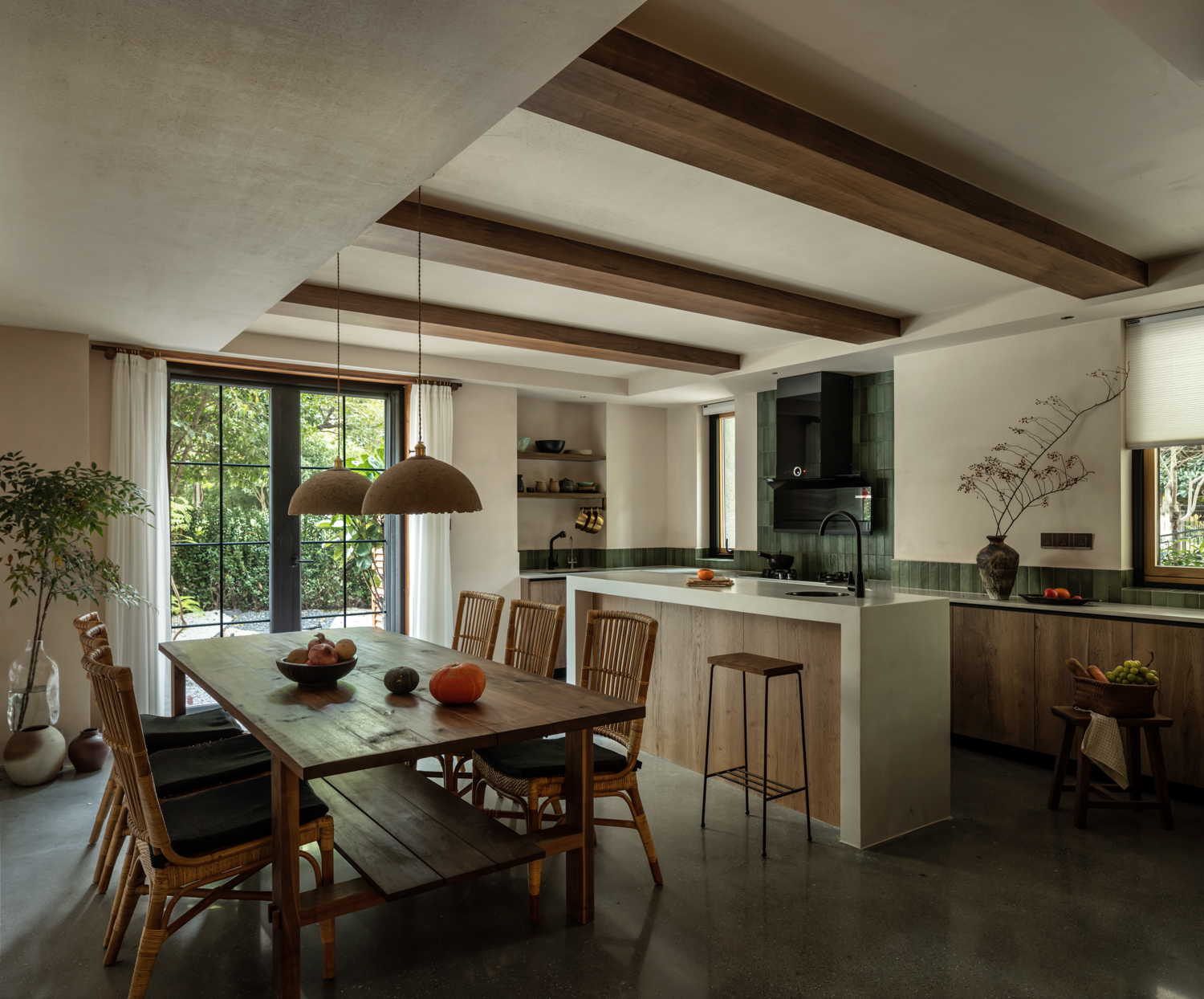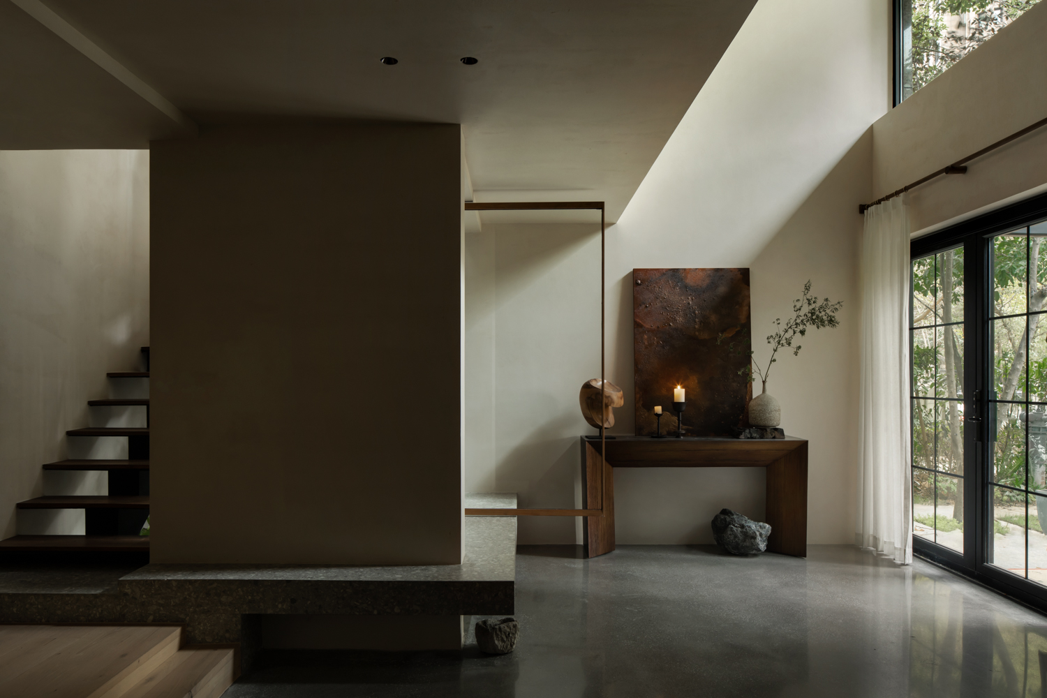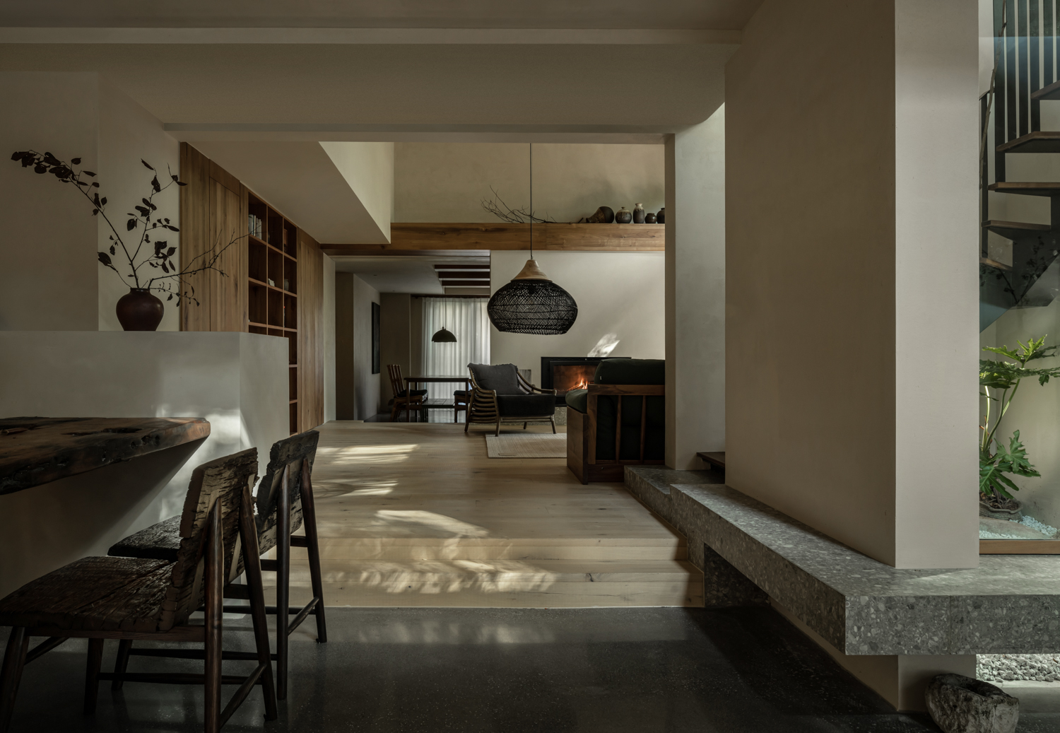 项目定位:料峭的寒意褪去时,初相空间设计重返了新近营造的这处自然感十足的住所,以镜头记录空间,随光影还原生活。斑驳的树影落在摇曳的野花中,家则隐于恍若与世隔绝的花园里,此间的日常静谧却丰富,纯粹也悠远。家的营造中,第一个确定的关键词为“静”。屋主经营着酒吧与咖啡馆,工作场的“闹”令他对纯粹的宁静格外向往。家之于他和家人,应是一处不需要过分明亮,也尽可能地减少繁琐装饰带来“喧嚣”感的栖心之所。