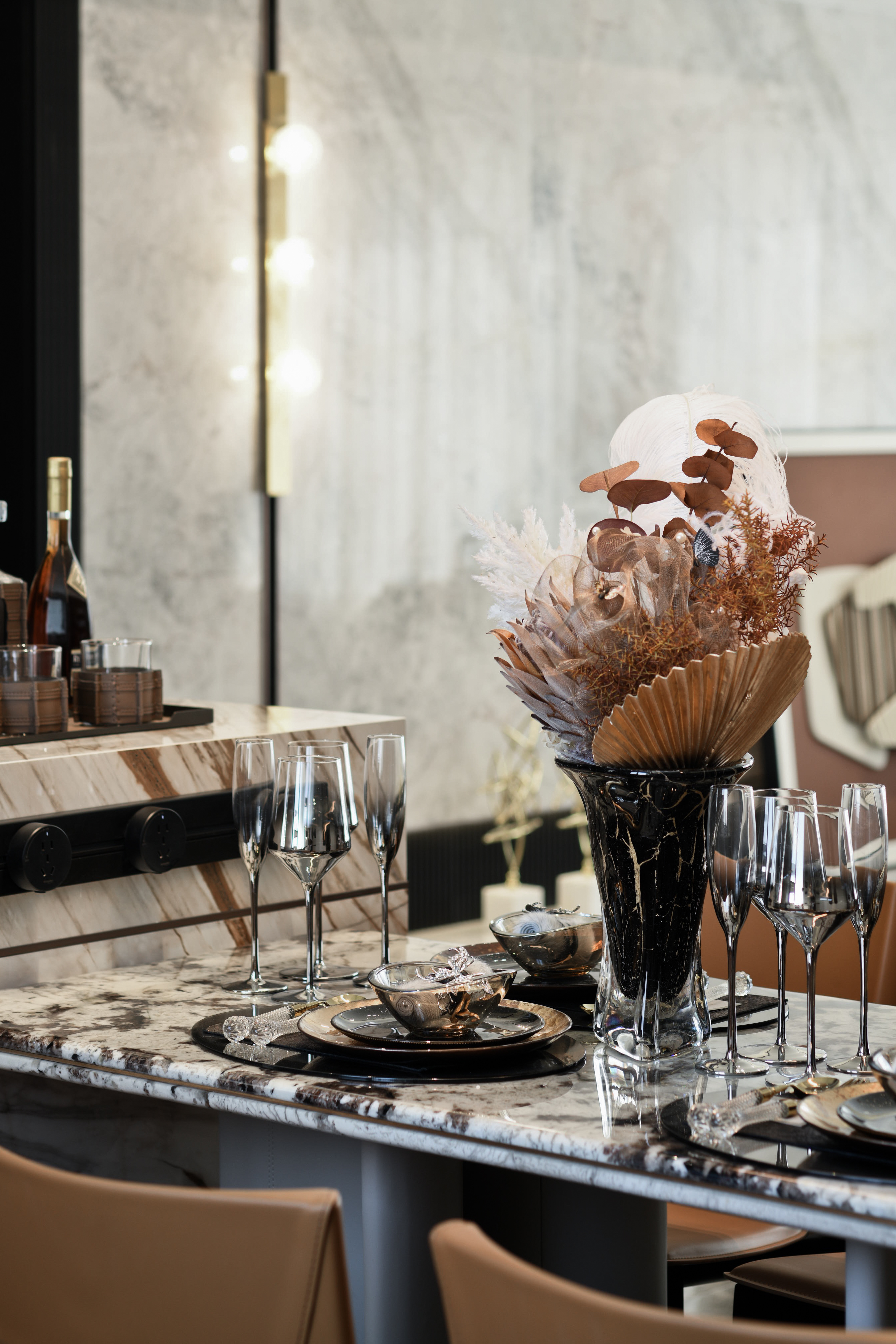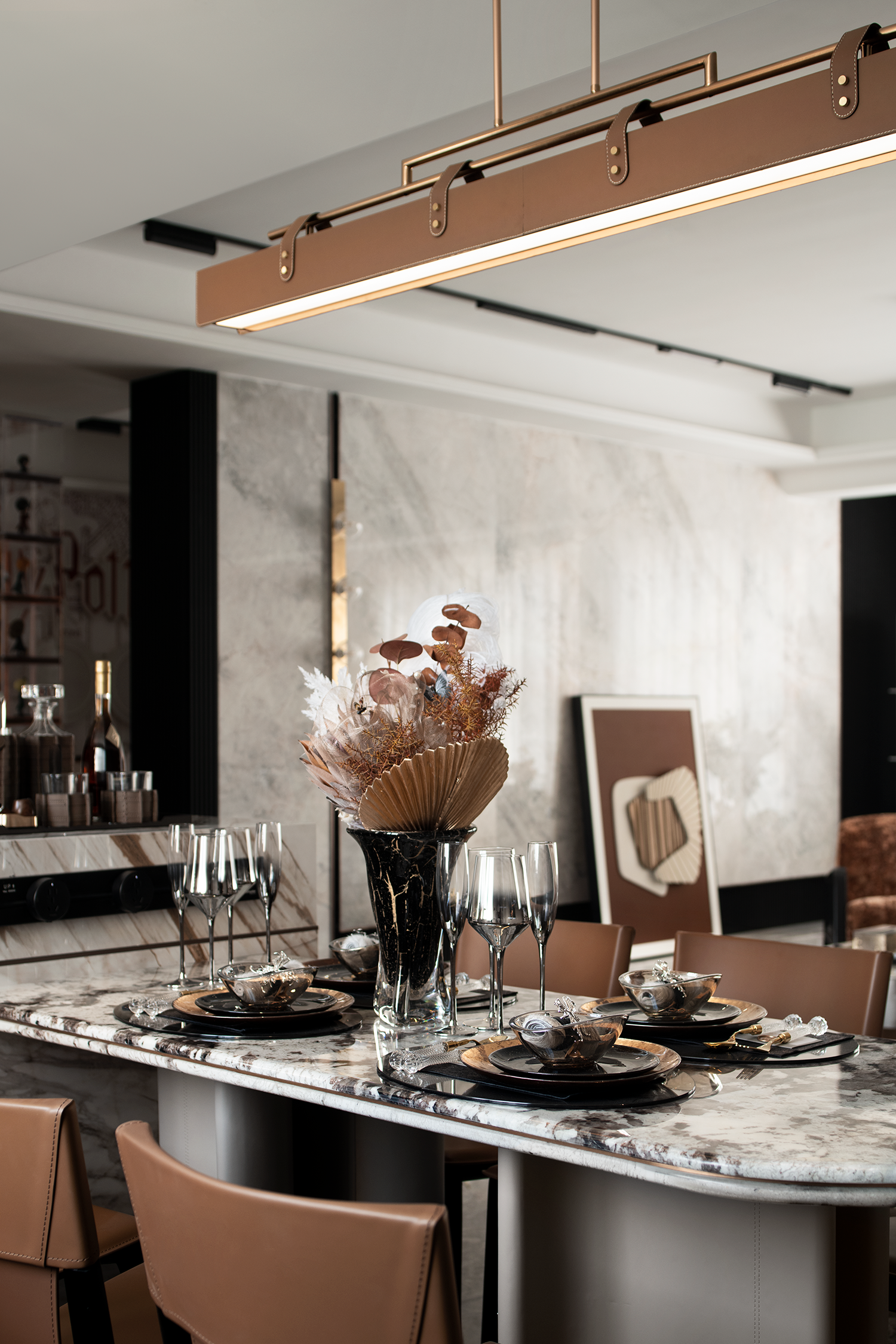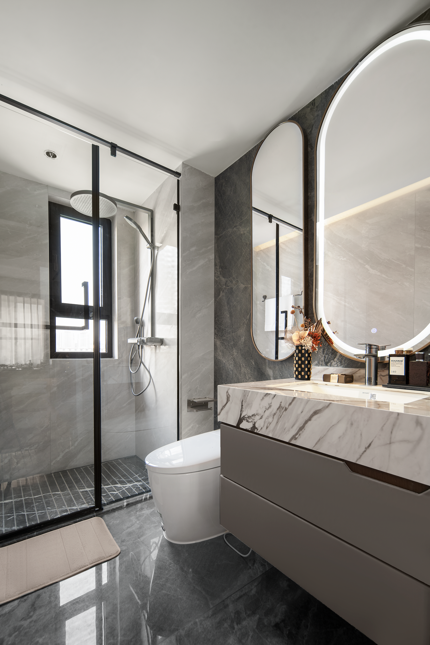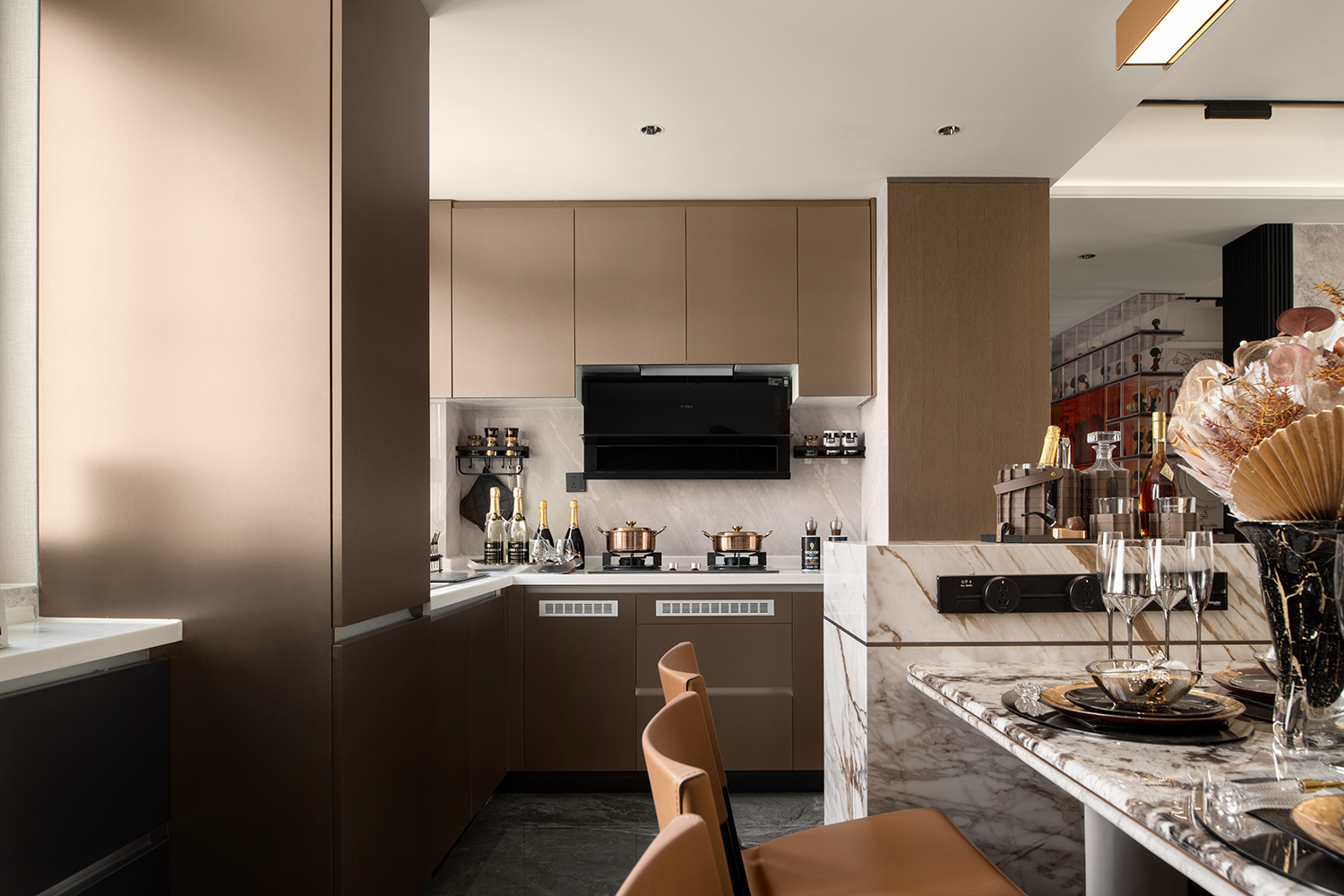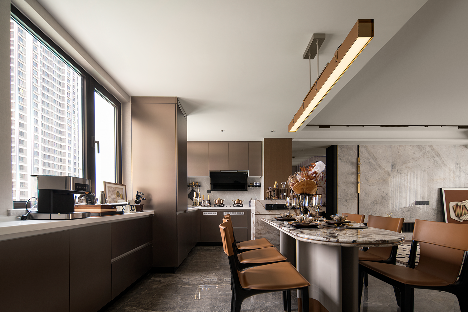 打破常规客厅布局模式,通过家具的强收纳功能满足客户真正的生活储物需求。大胆的把儿童房去除间隔墙体,作为展示柜体进行隔断设计,既时尚,又通透,也体现家庭关系的融洽和谐,温馨。