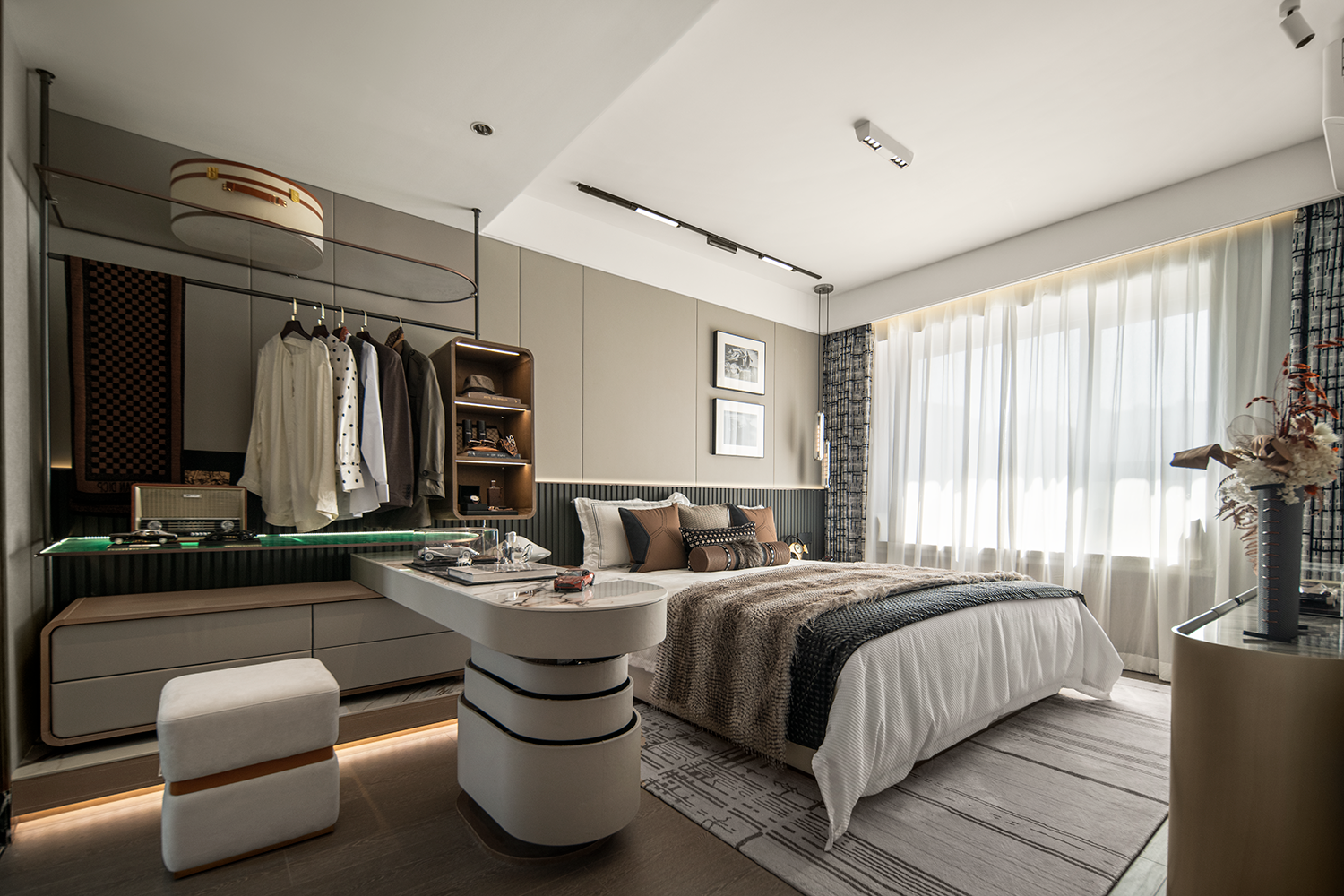 看重品牌以及居住品质、环境配套、改善目前居住环境。空间舒适度尽量展开,舒适度较高。LDKG的空间模式展露无遗,主卧衣帽间+梳妆台尽量开敞,儿童房也开敞。