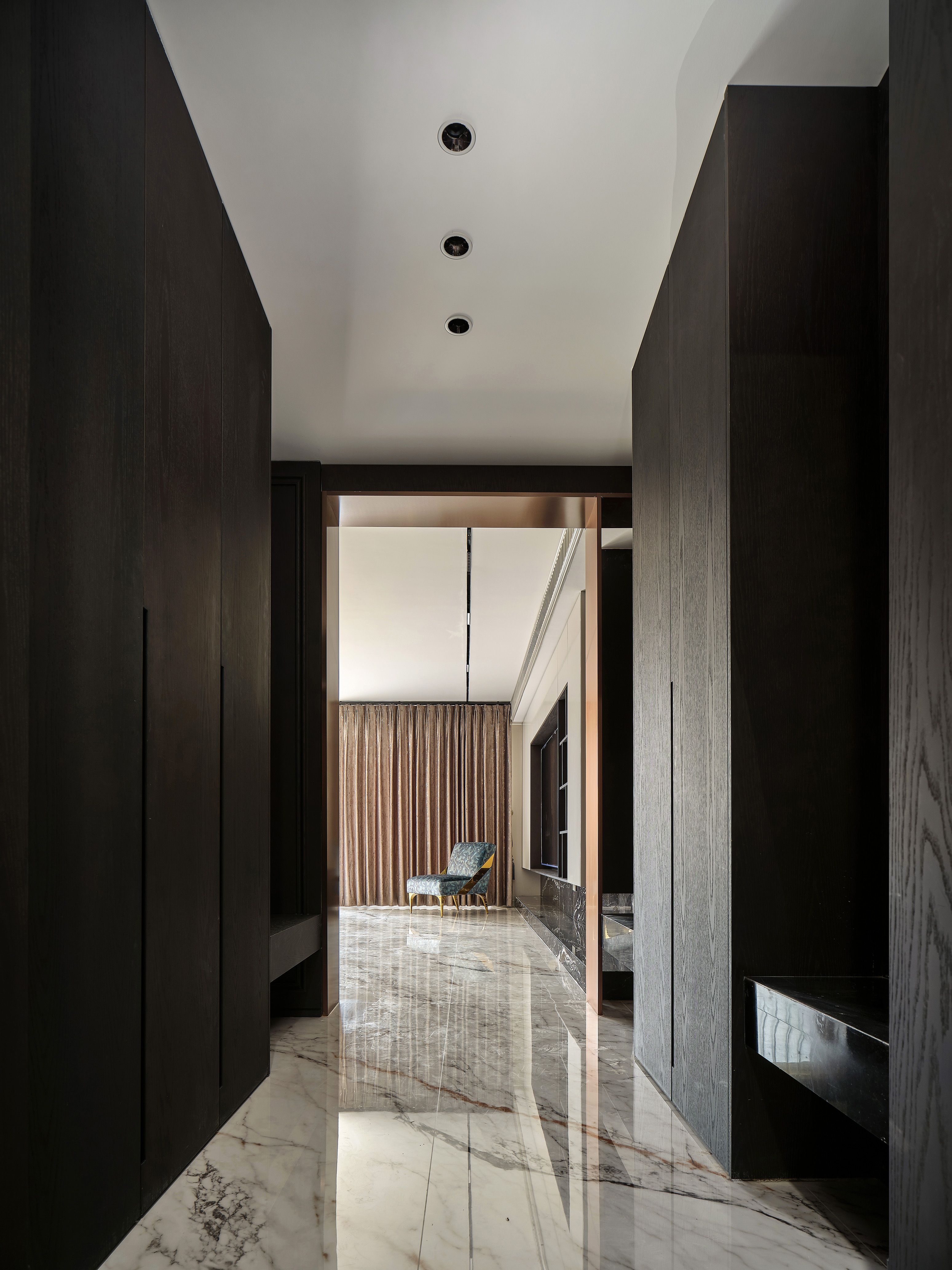 项目定位:本案旨在打造一个融合简约欧式风格与奢华质感的空间体验。以黑白金为主色调,既展现了欧式风格的优雅与浪漫,又通过简约的设计手法避免了过度的繁复,呈现出经典而不失现代感的居住环境。 “金典之境” 代表着一种充满光辉的经典境界。