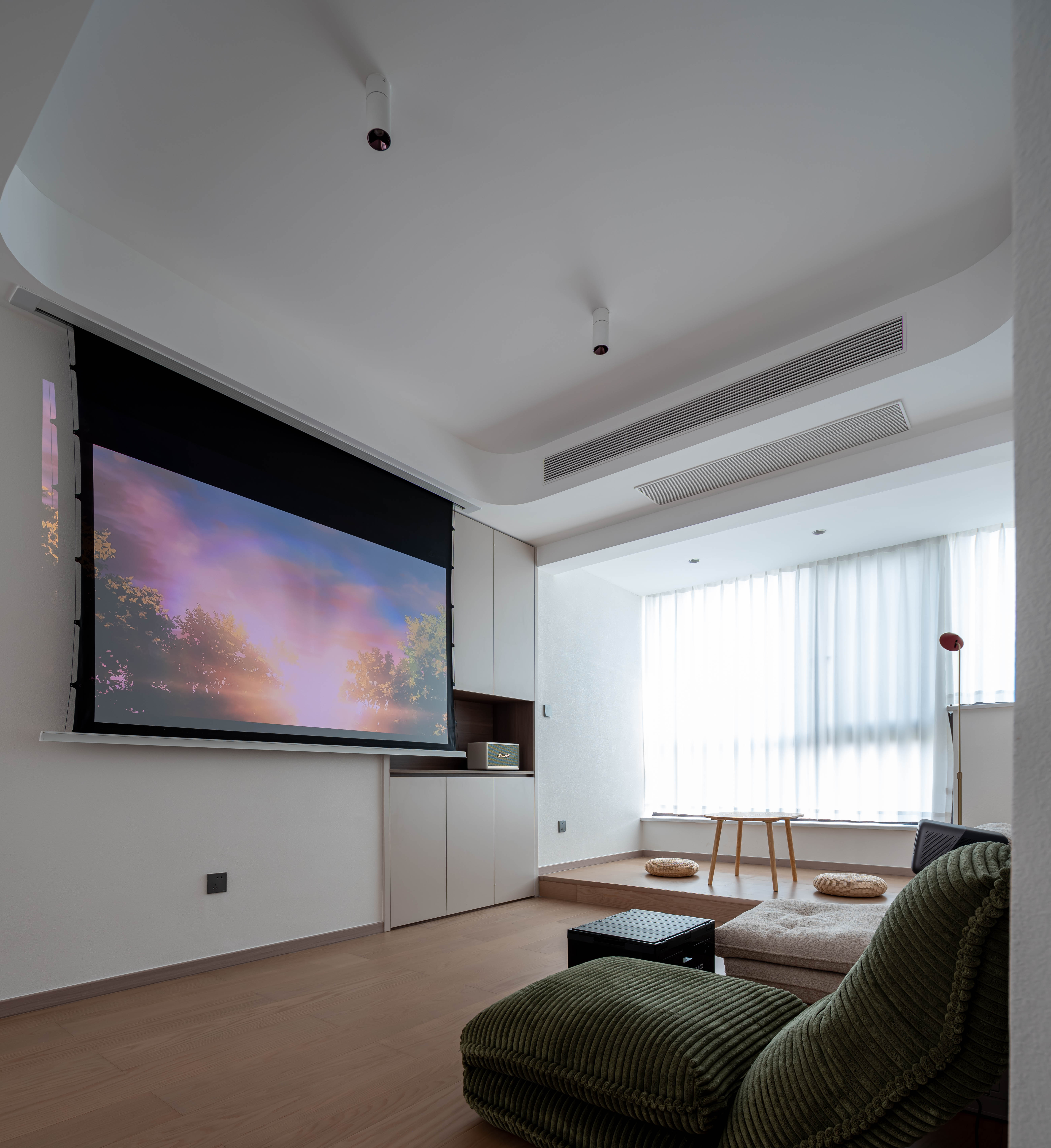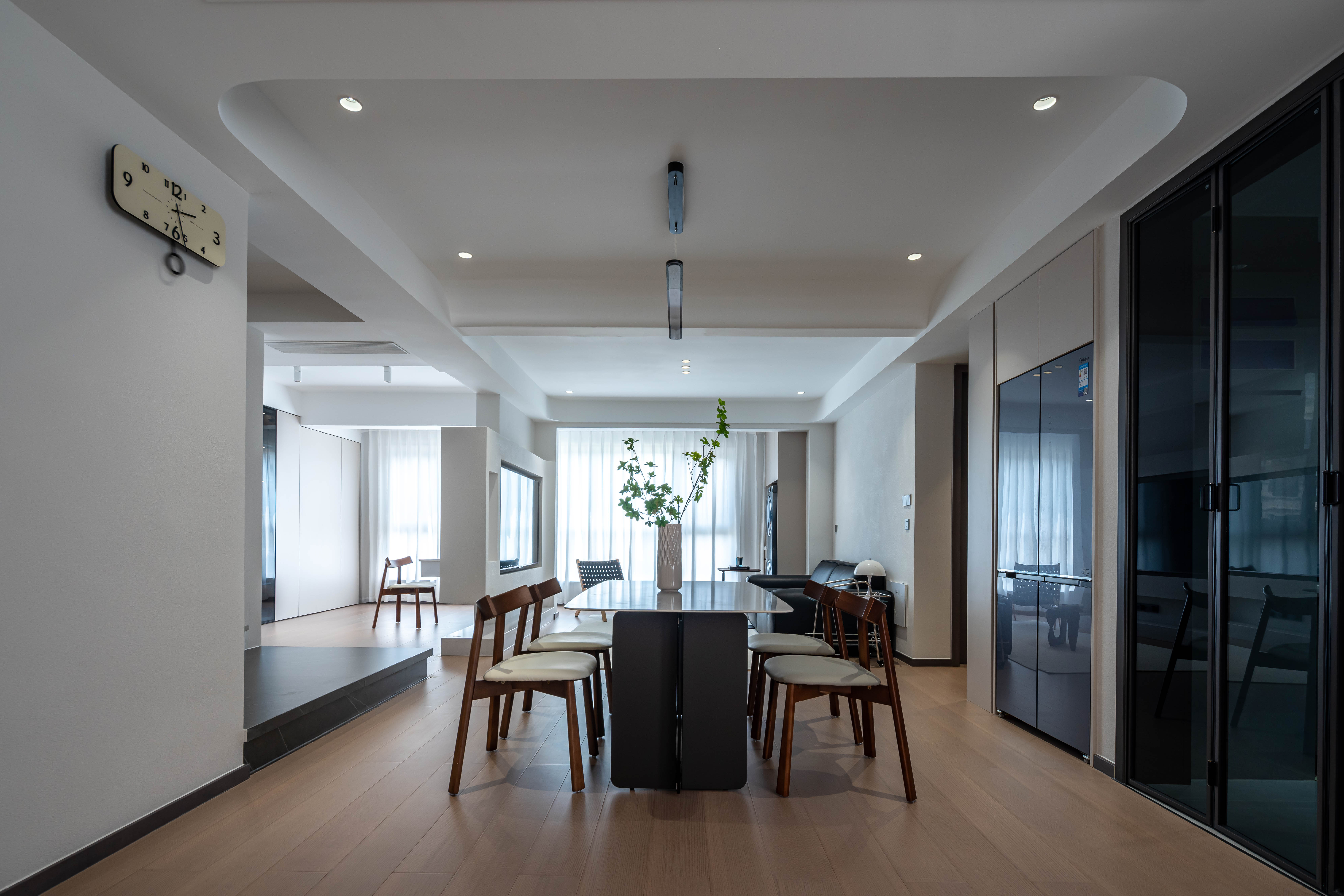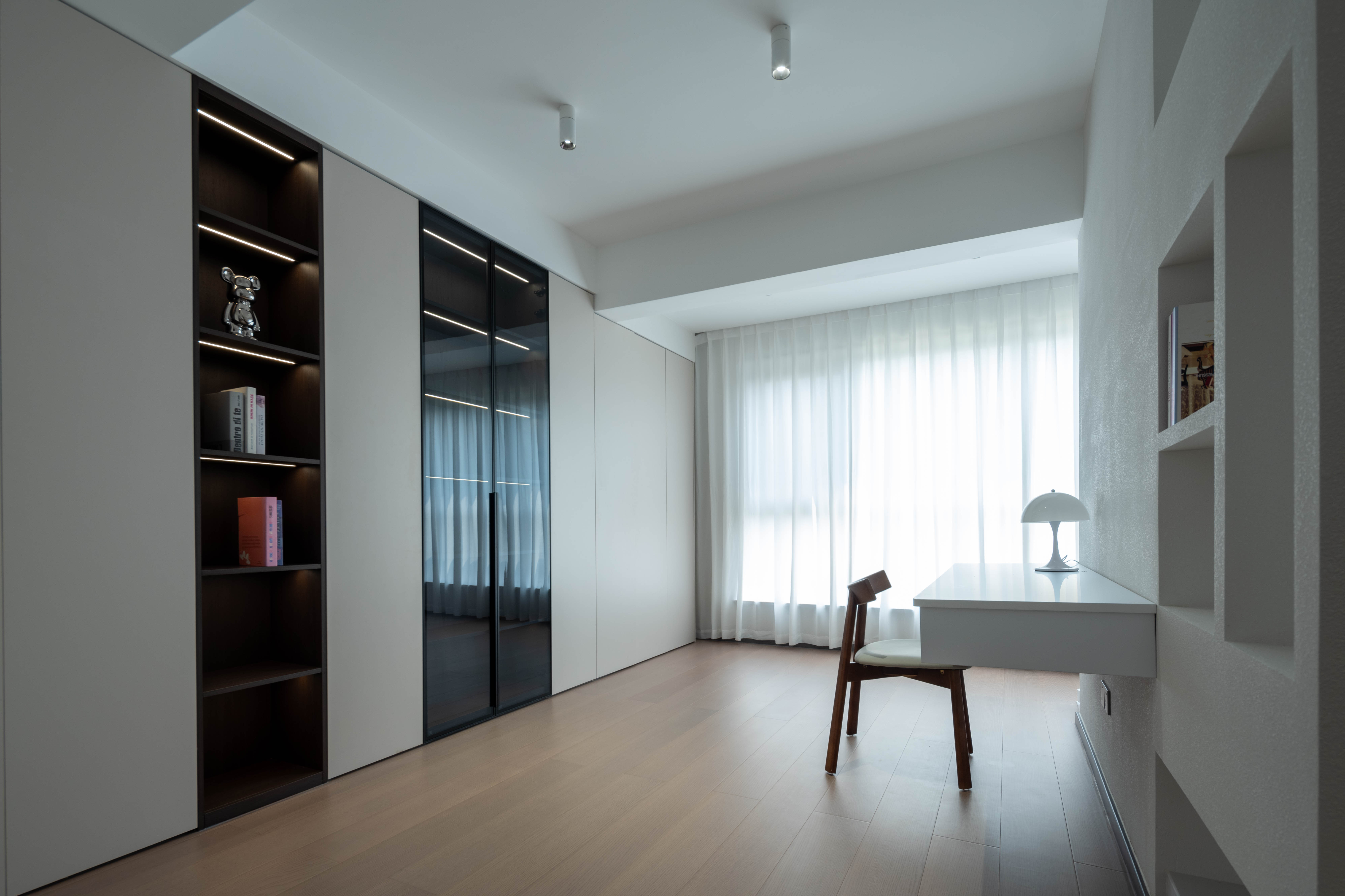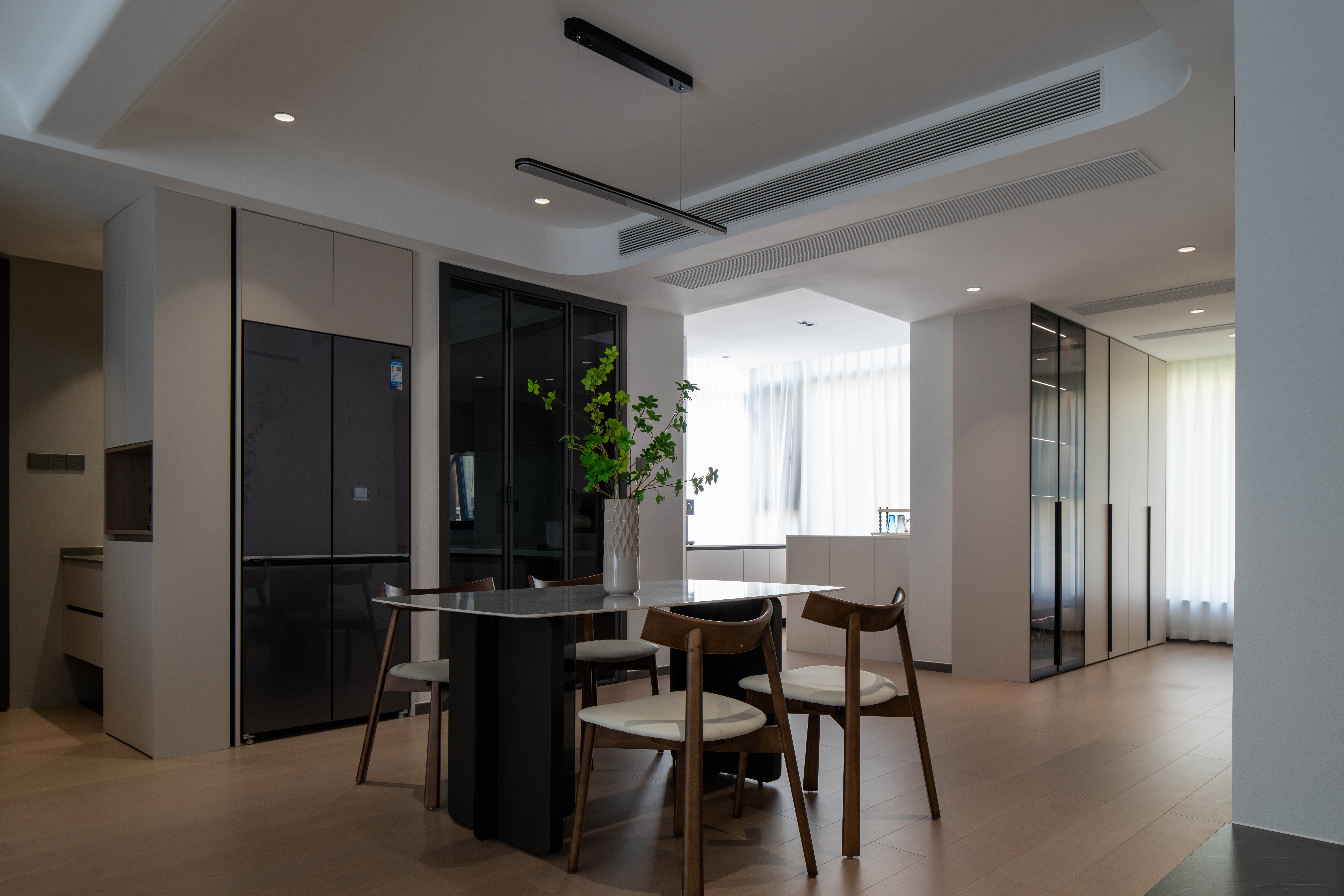 在空间规划上,设计师精心梳理动线,更多的是将公共空间尽可能的进行开放和拓宽,确保书房、客厅与餐厨区域彼此相通,形成高开放度的公共区域。在这里,空间的界限变得模糊,各个区域相互交融,共同构成一个温馨而和谐的生活场景。