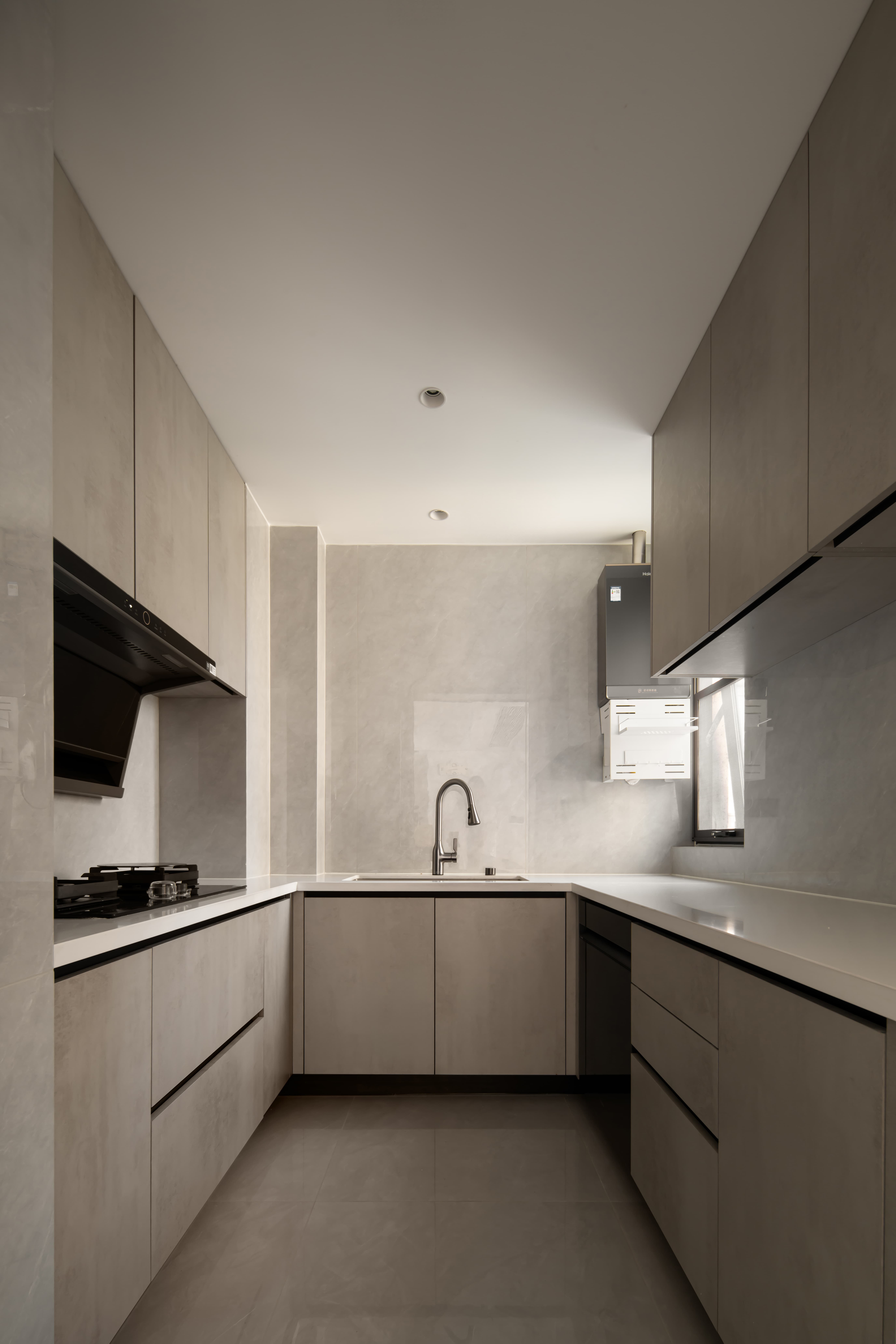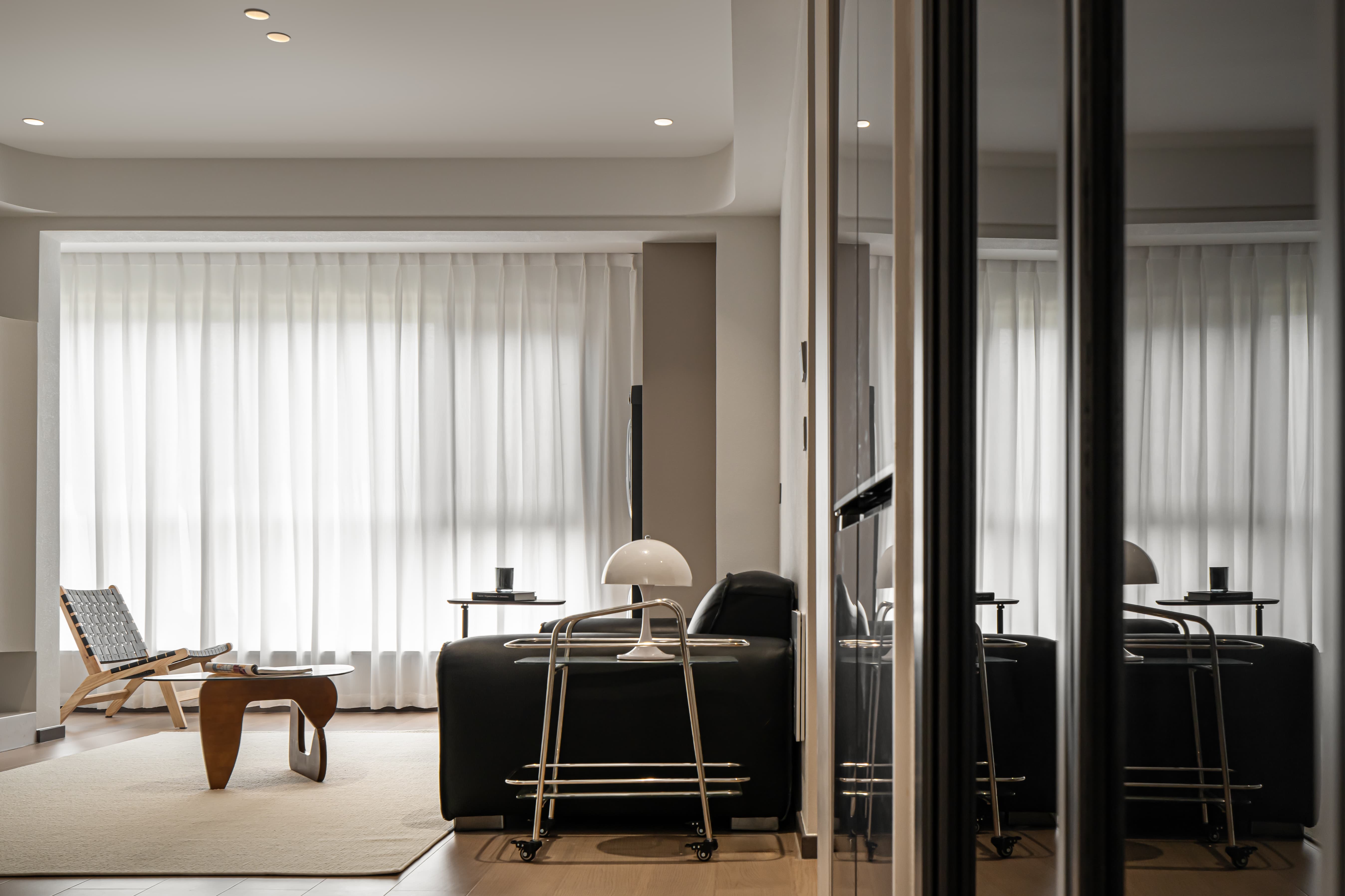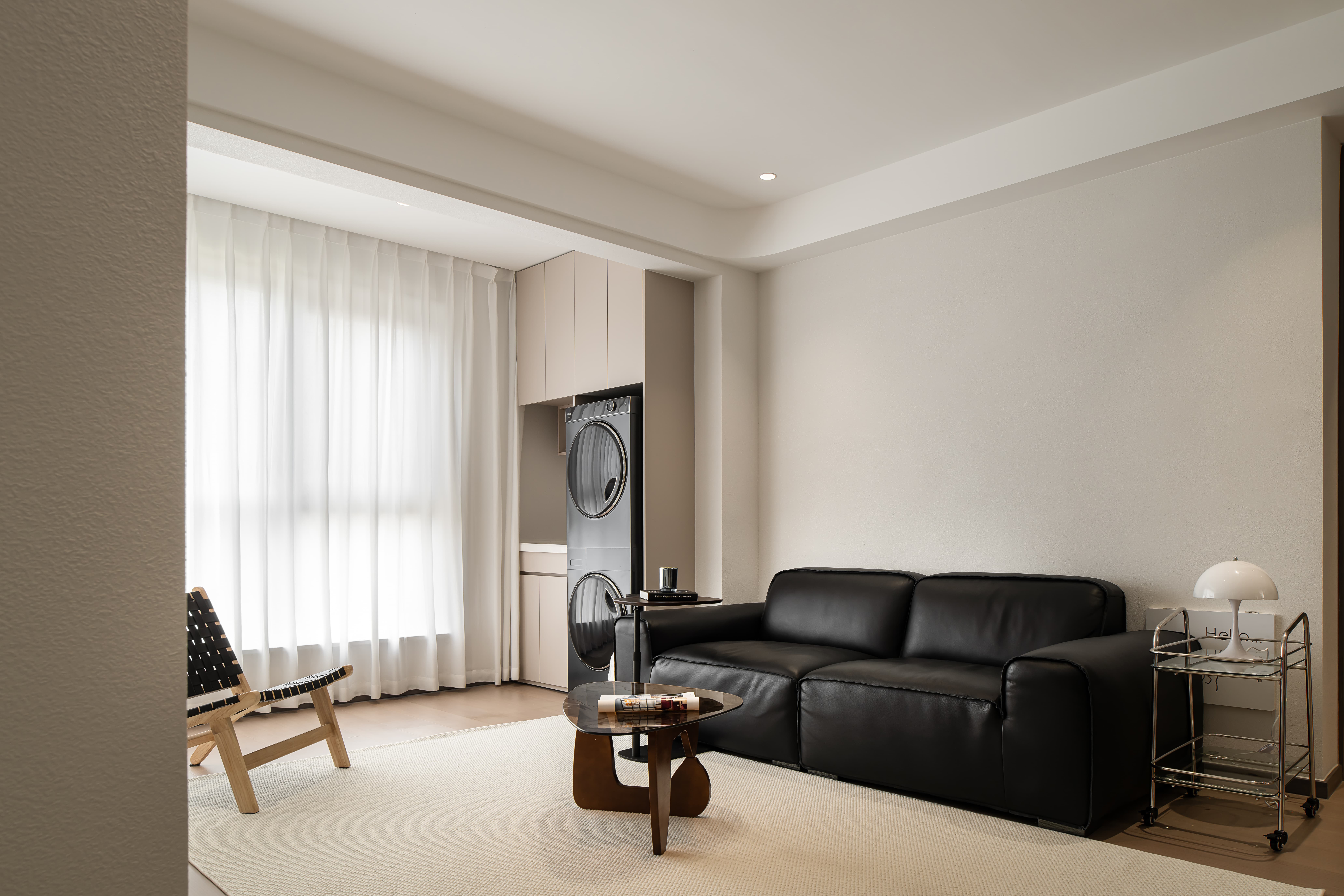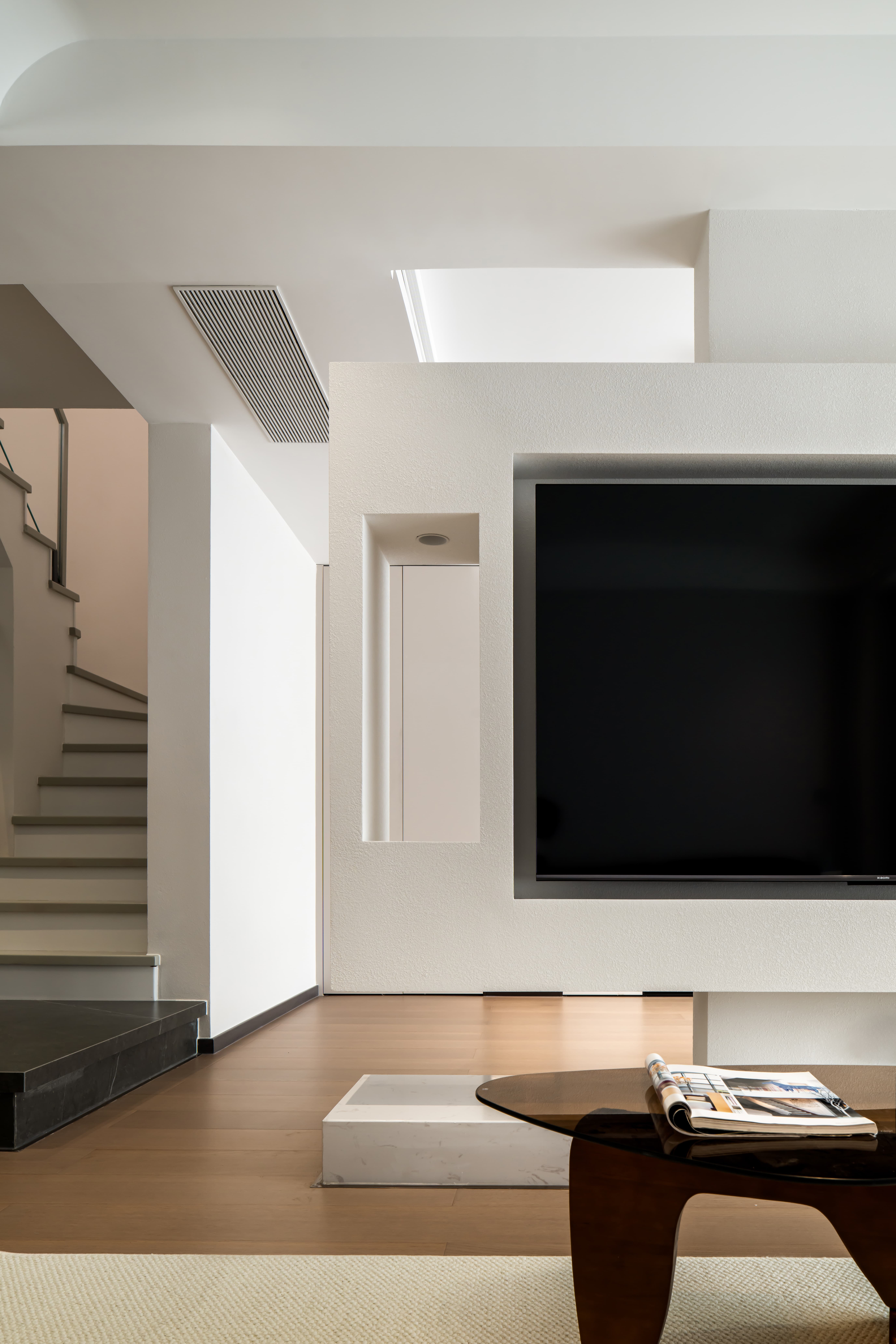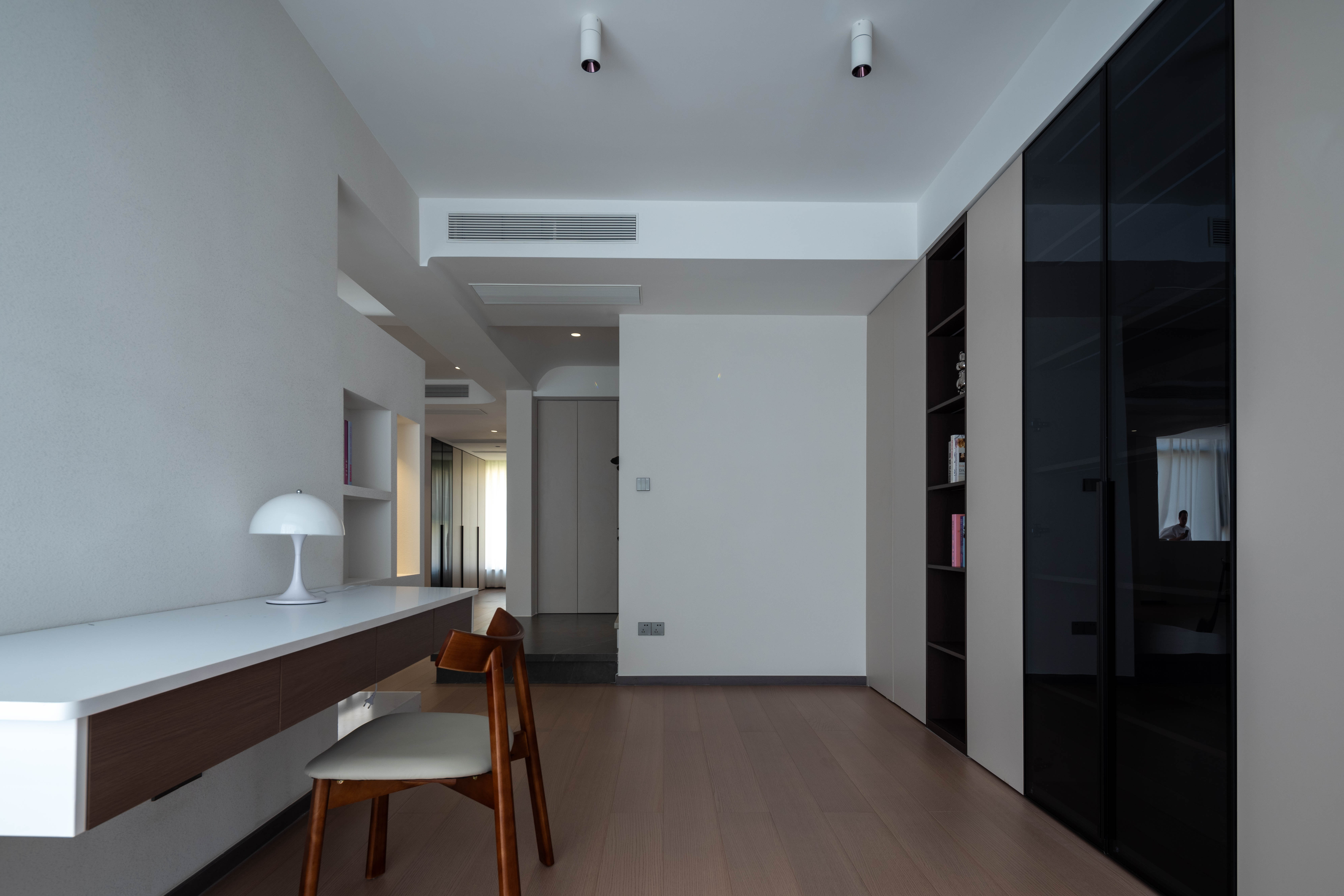 整个空间去繁从简,保留大量的空白,巧妙运用几何图形和线条去构建整个画面。设计后整个空间看似简约随性,却每一寸空间都凝聚着设计师的心血,不仅巧妙地保留了空间的通透与开阔,同时又融入了人性化的设计理念,使得每一处细节都显得那么贴心而富有创意。