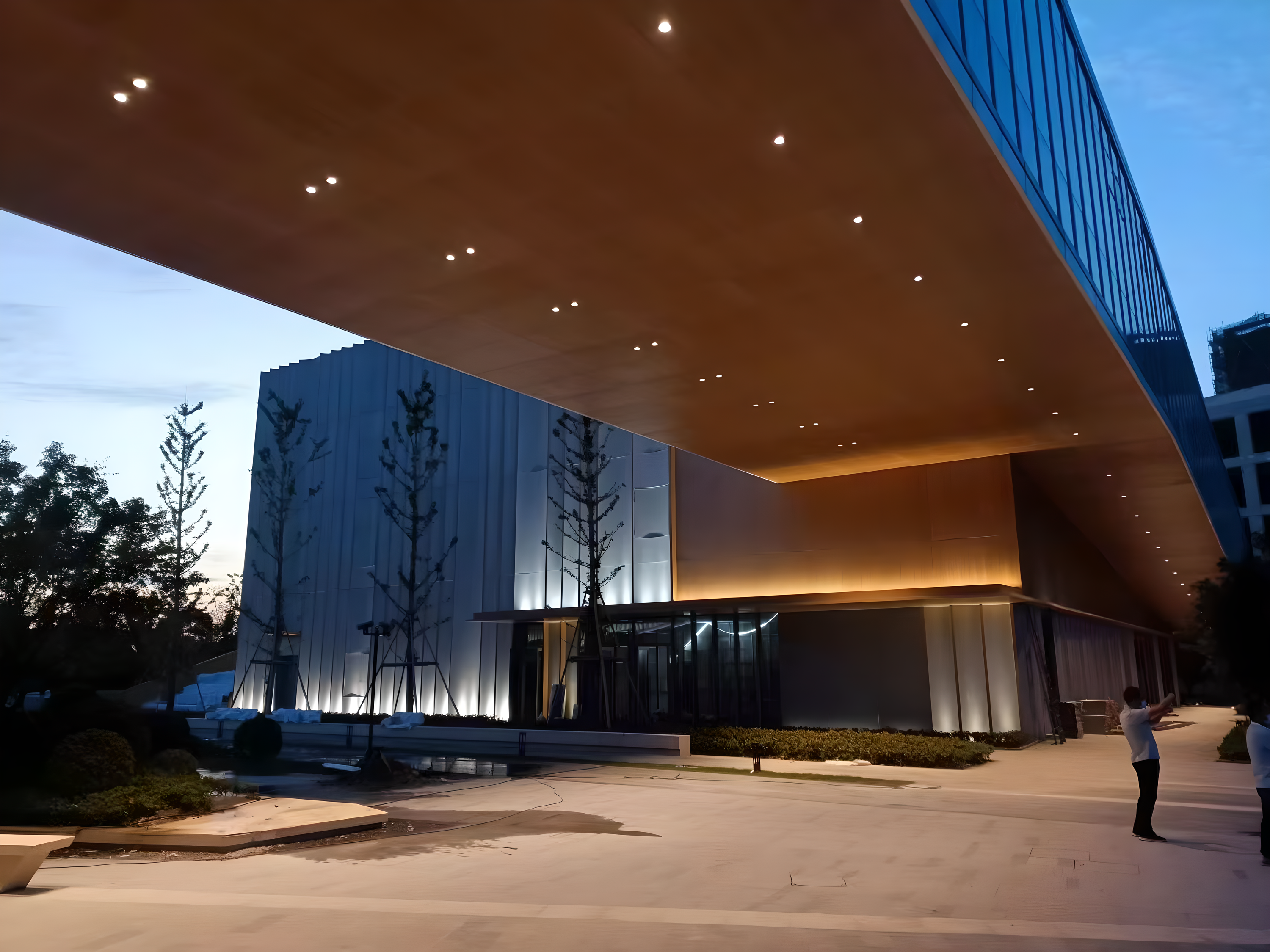 文化中心内院以极简的功能光营造结构光环境,不扰不惊,安静守望!
