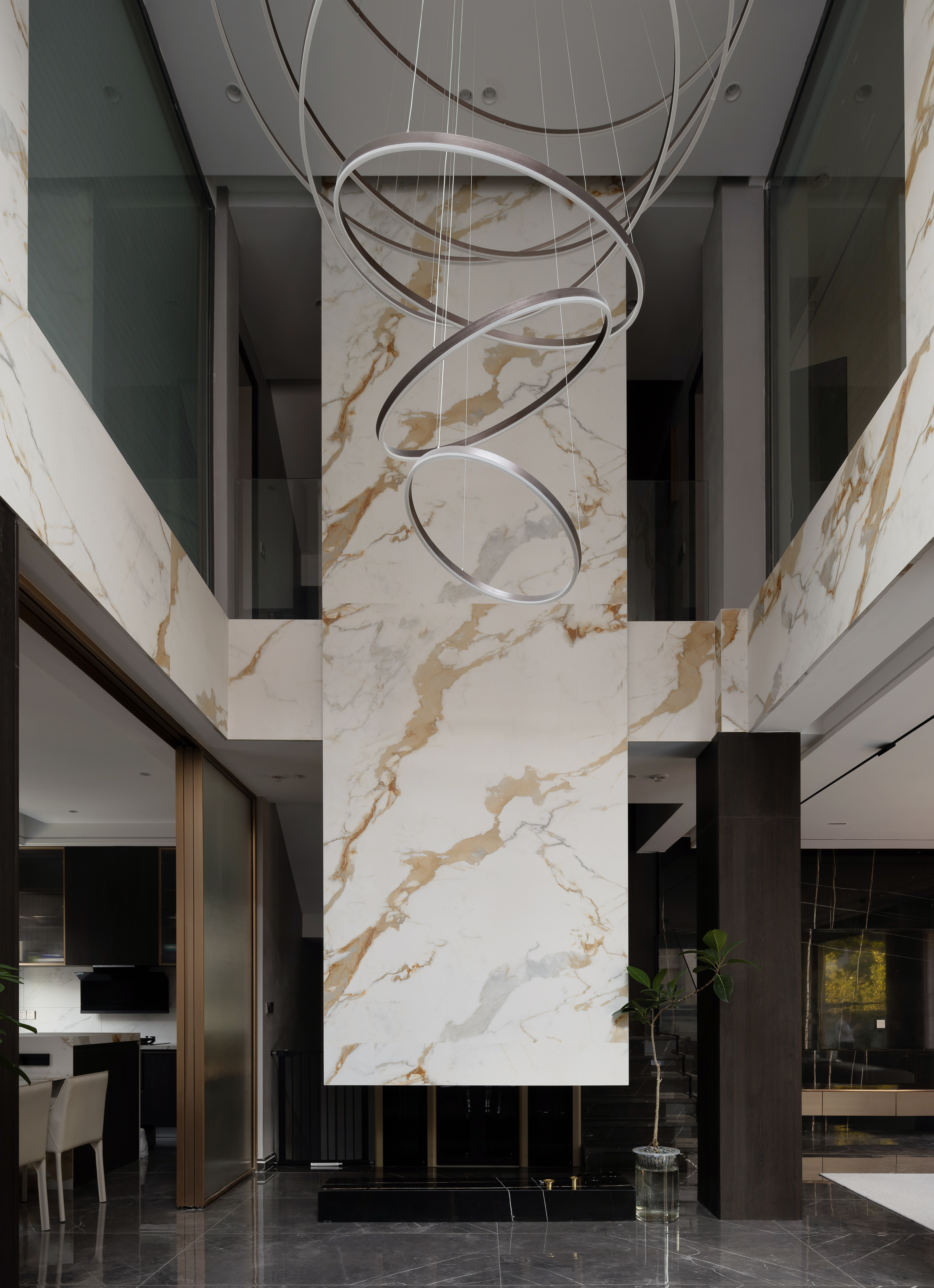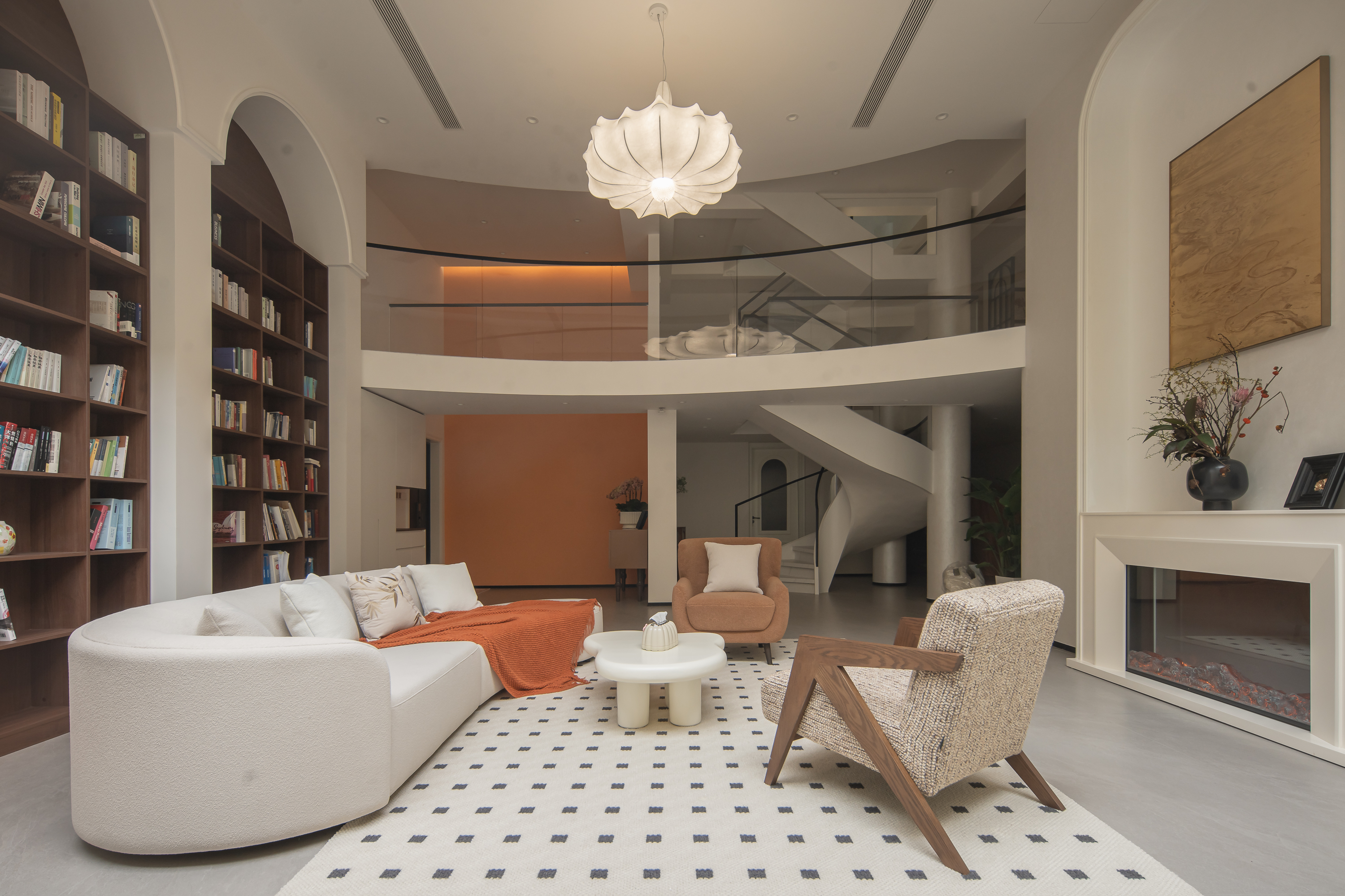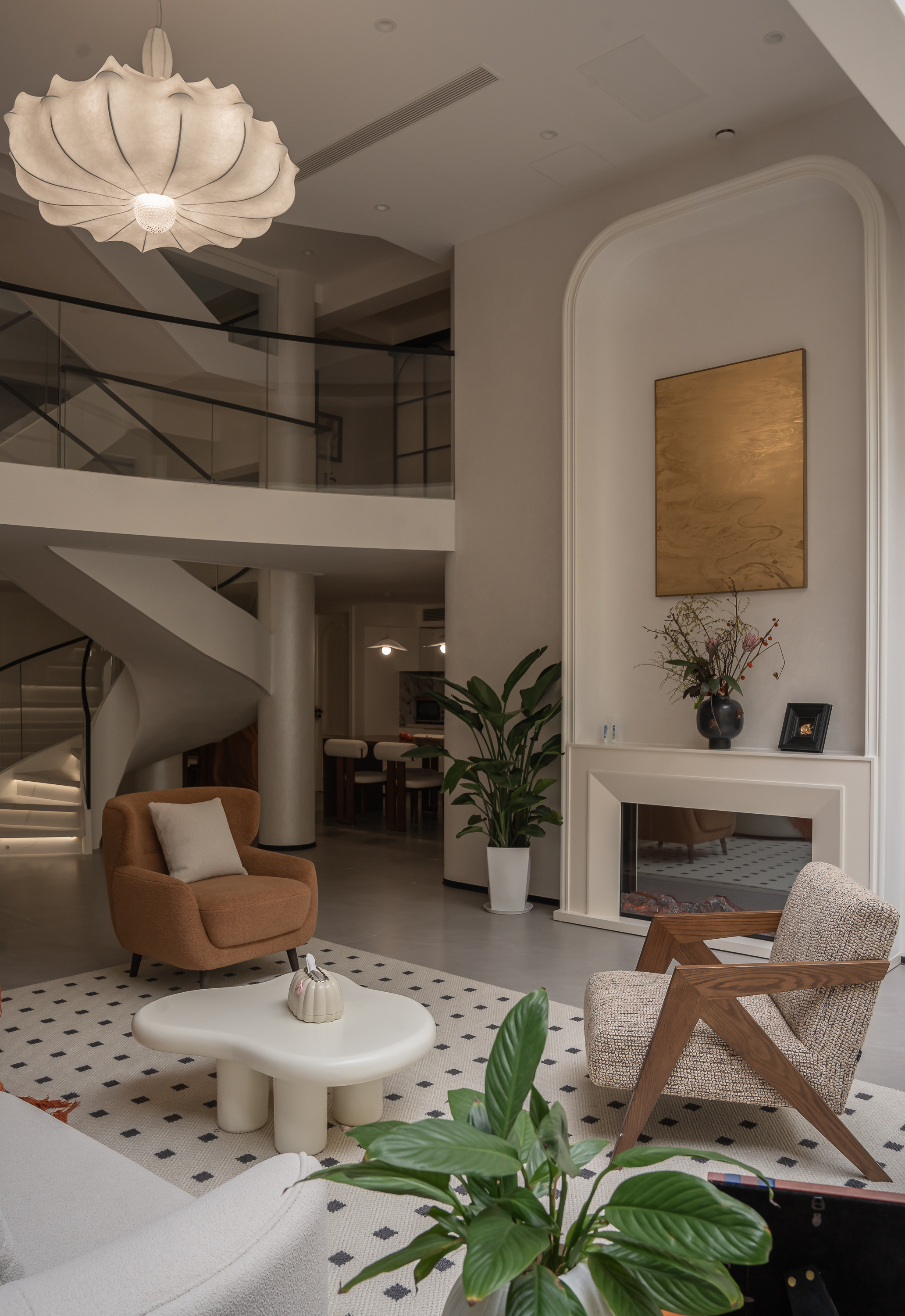 空间布局:功能布局上,设计师大胆设计,采用松散式布局和大量留白,营造出了一种自由自在的气息。特别是在地下室的布局设计上,让光线做设计,尽可能的将自然阳光引入空间,实现了建筑空间与阳光的温暖重构,以充沛的阳光包围空间,完美地呈现出一种艺术、自然、多元、温度的生活概念。